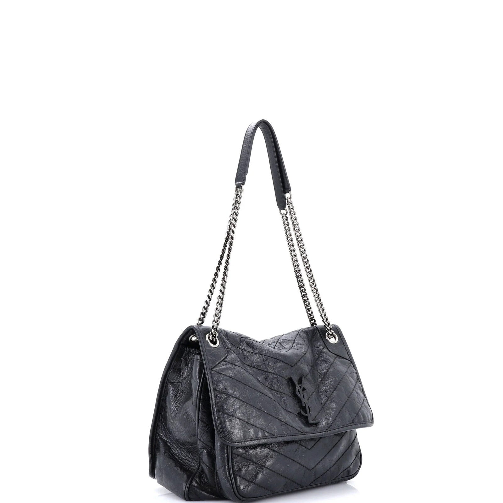 Saint Laurent Niki Chain Flap Bag Matelasse Chevron Leather Large