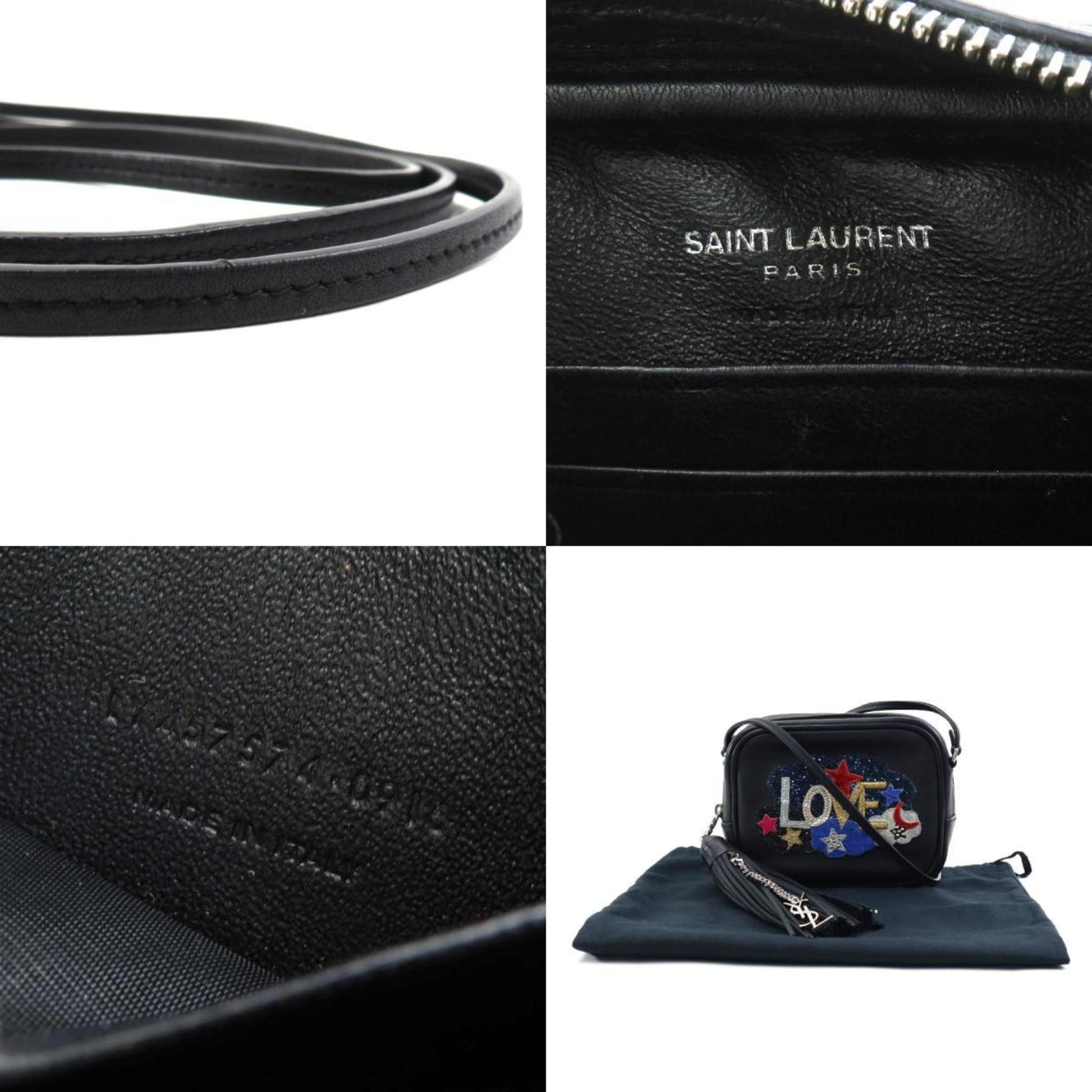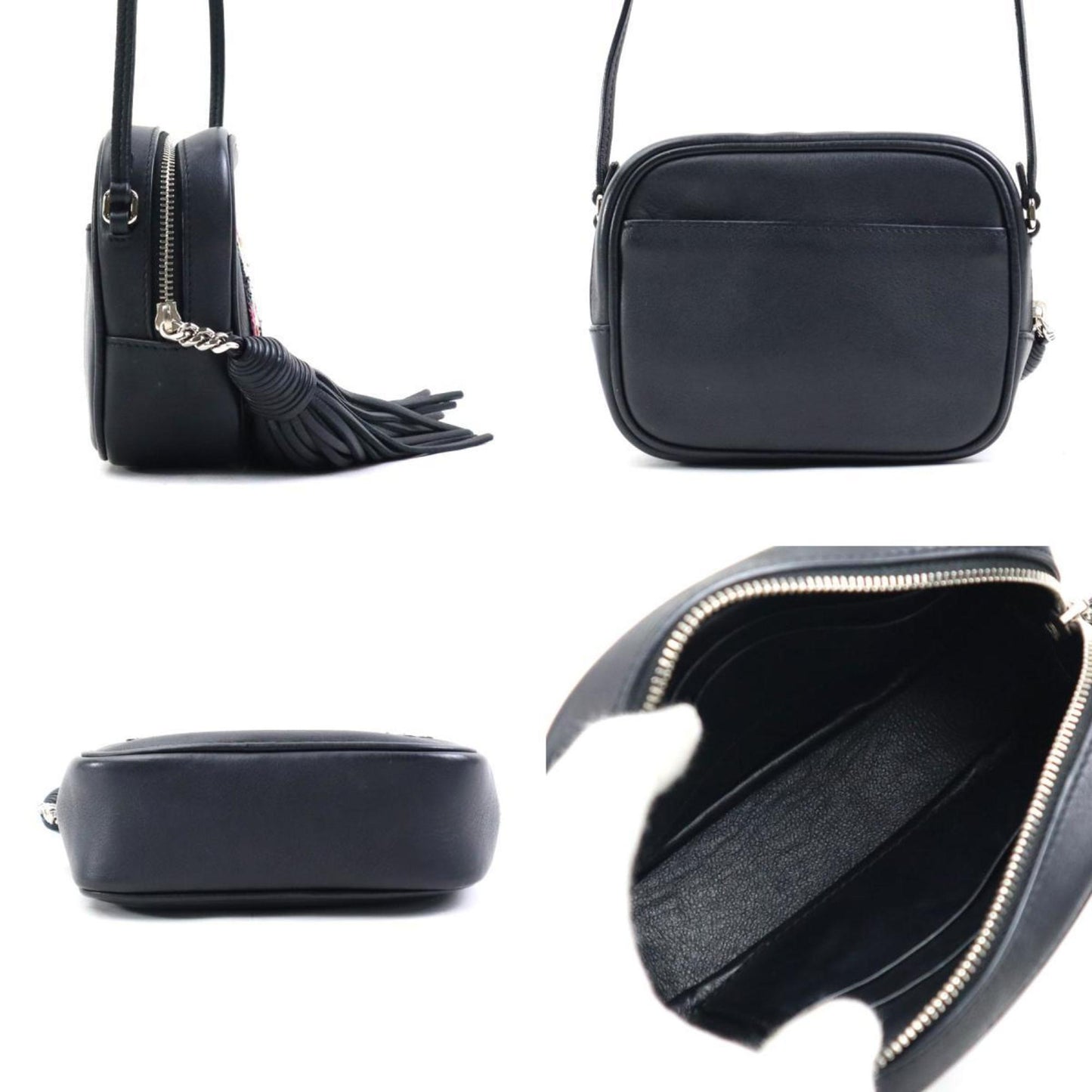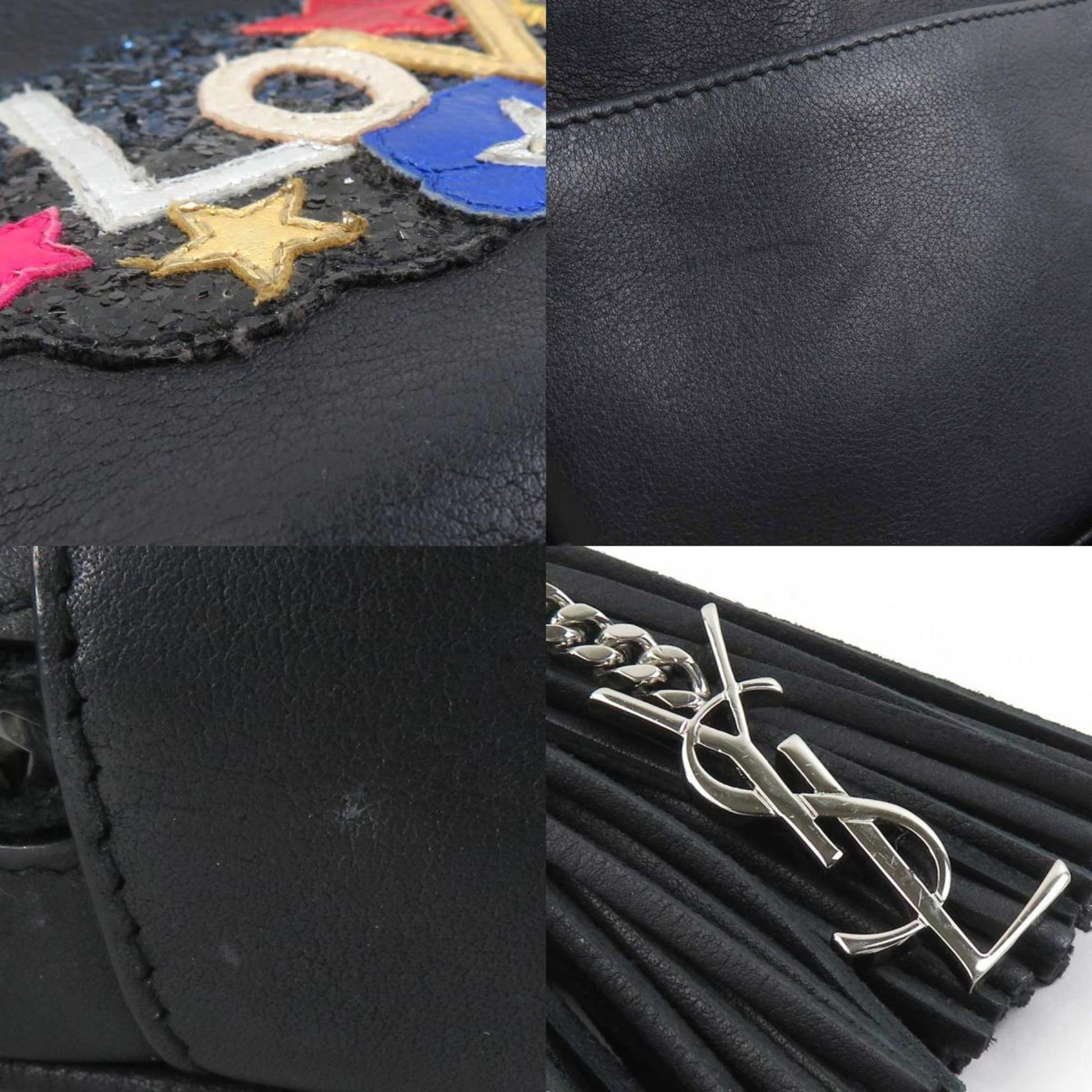 Saint Laurent Shoulder Bag Leather Black Multicolor Silver