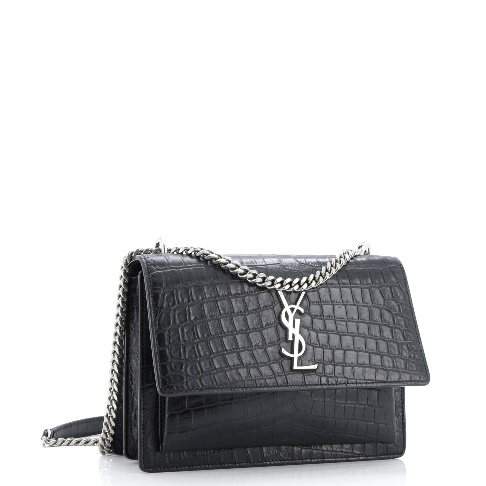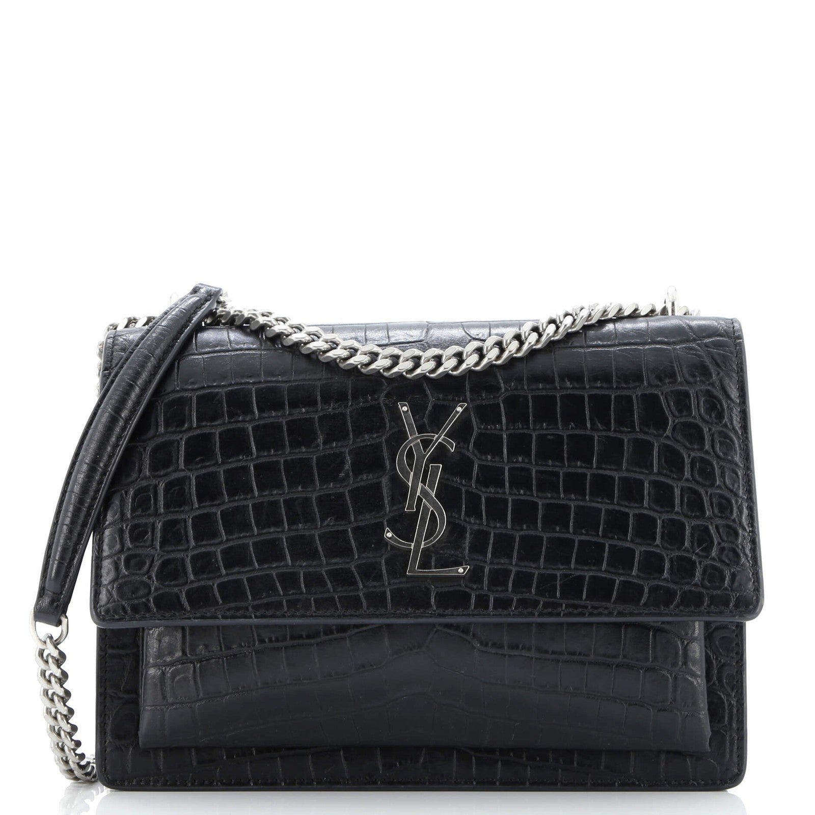 Saint Laurent Sunset Crossbody Bag Crocodile Embossed Leather Medium