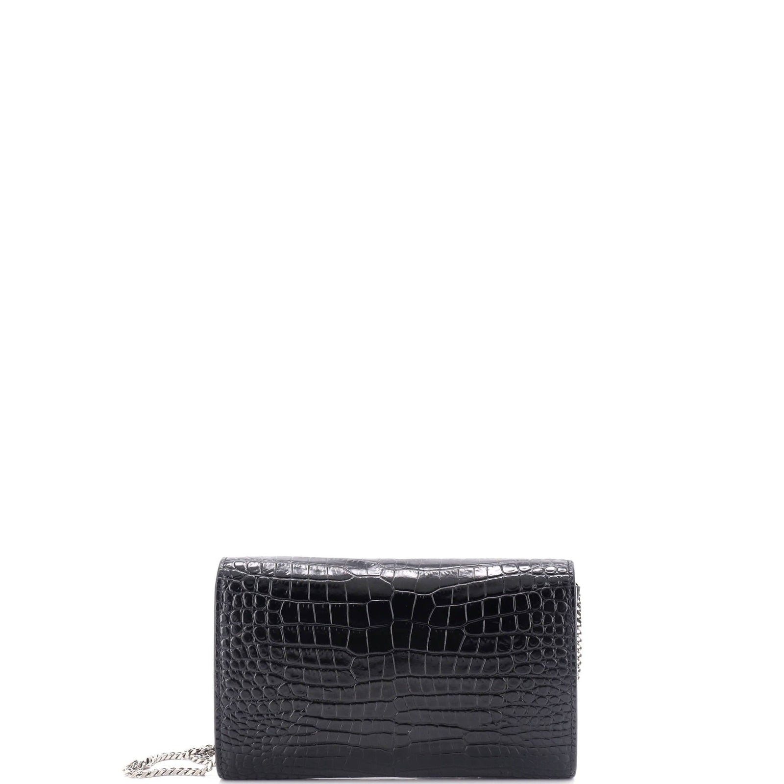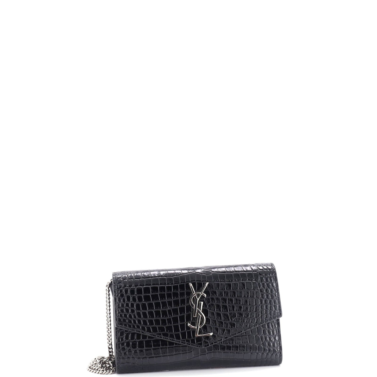 Saint Laurent Uptown Chain Wallet Crocodile Embossed Leather