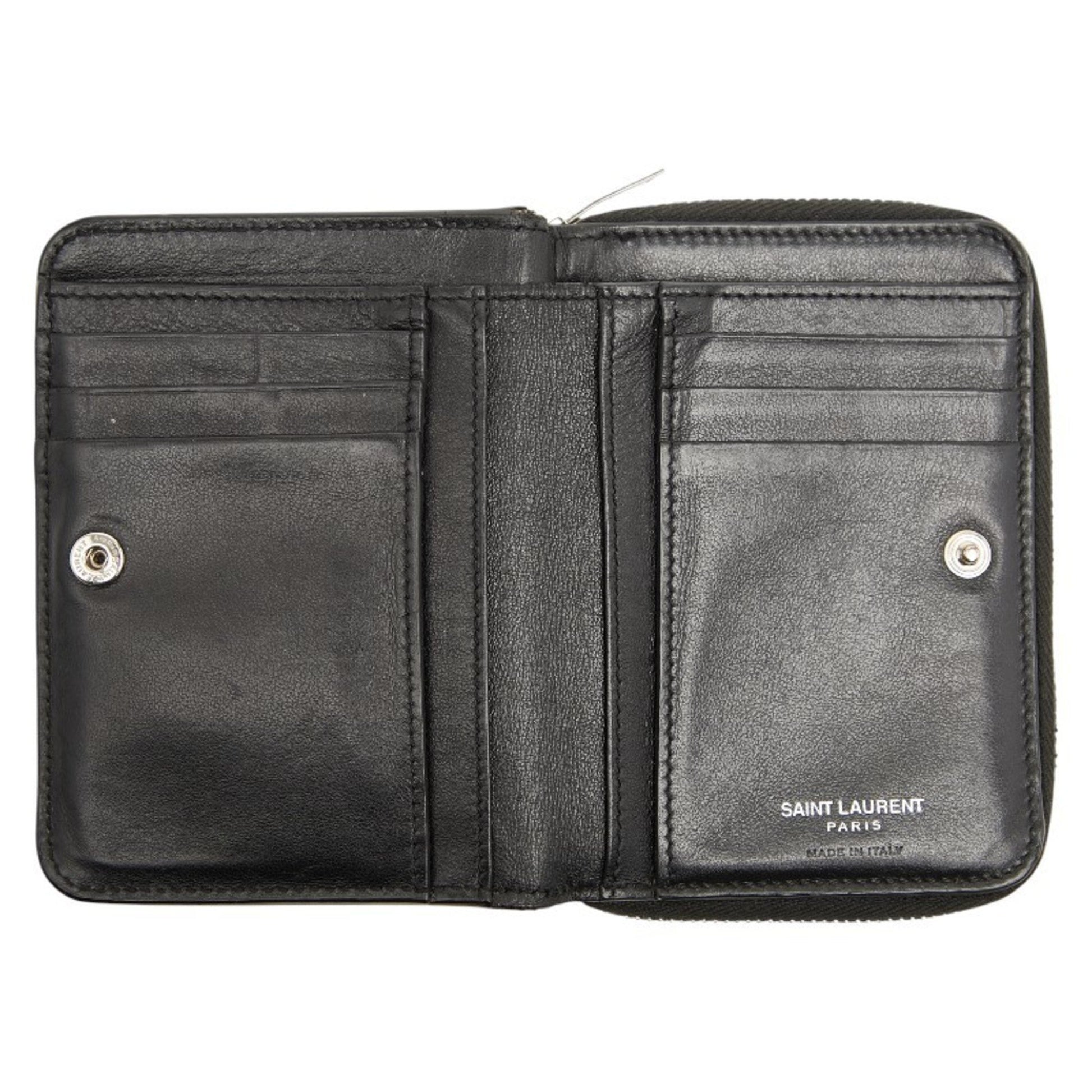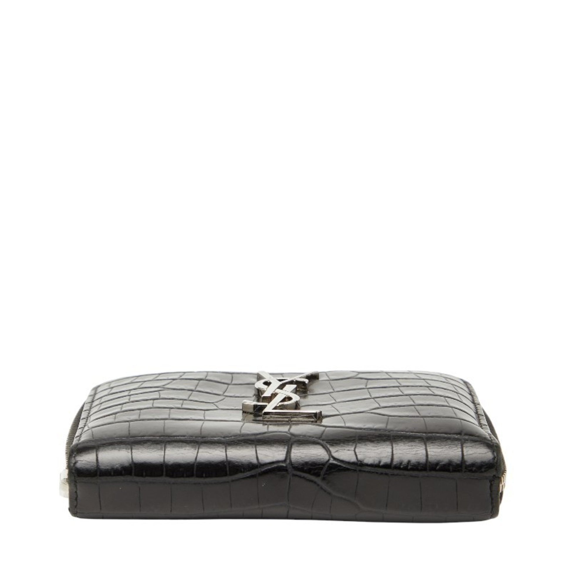 Saint Laurent Ysl Logo Crocodile Embossed Round Zipper Bifold Wallet 403964 Black Leather