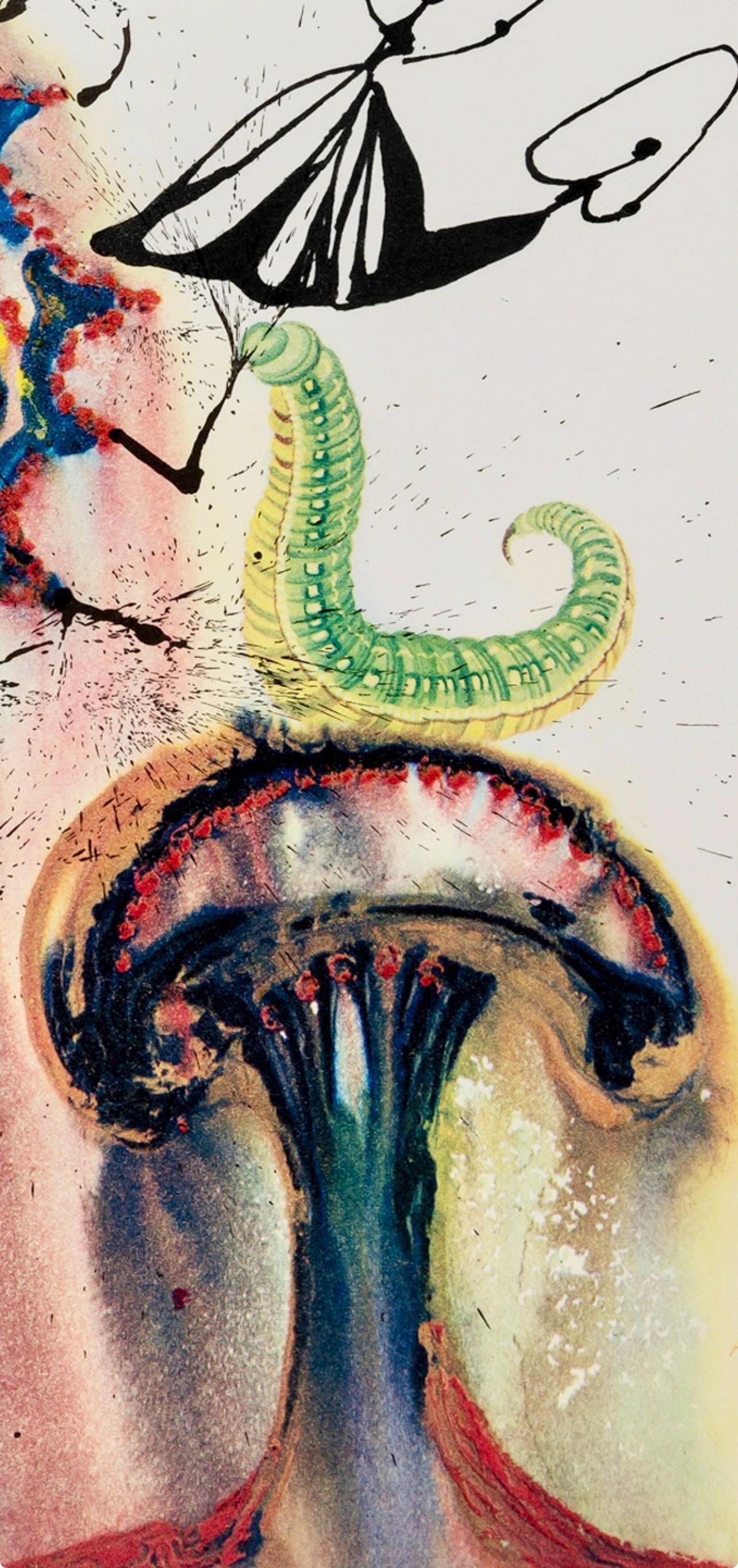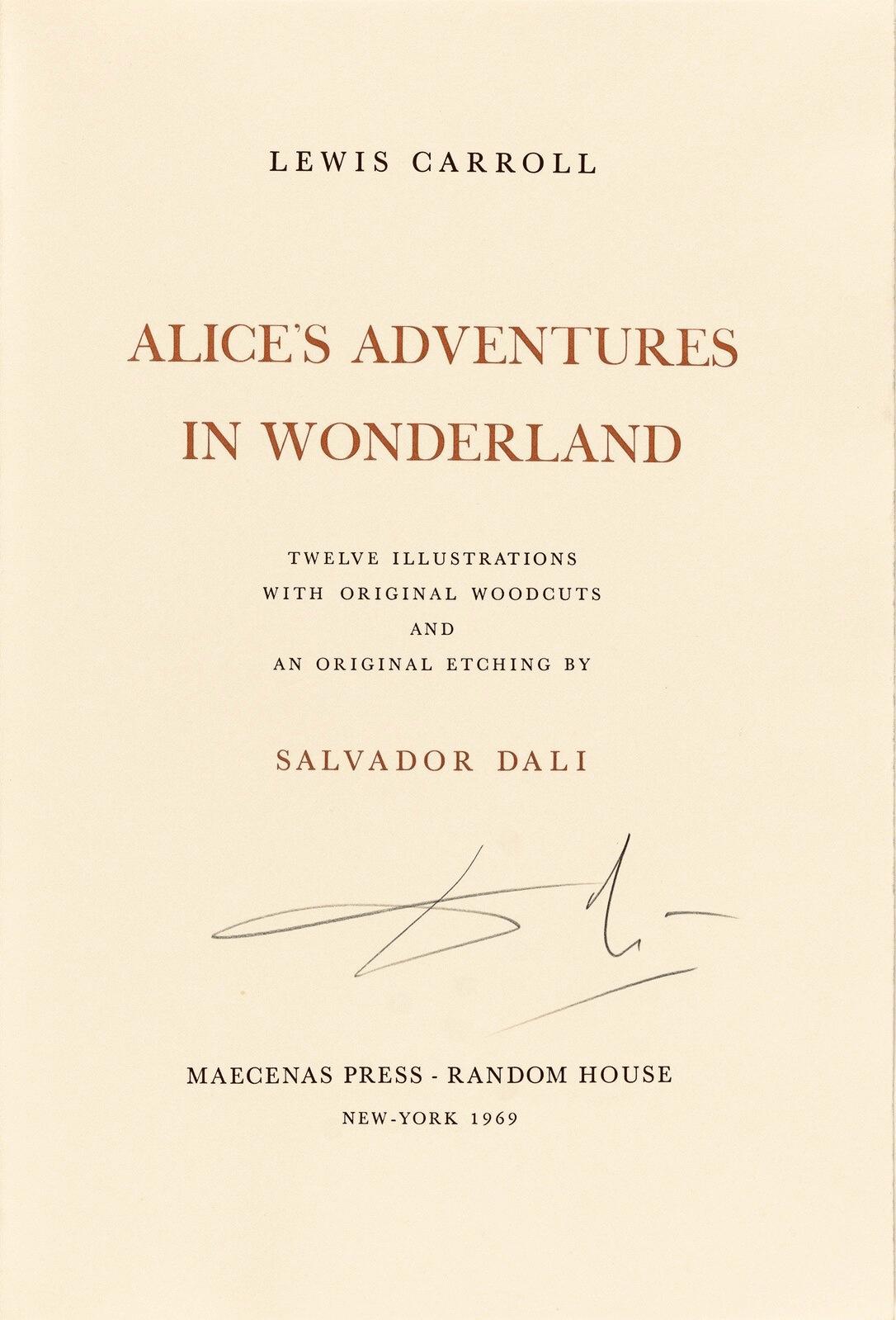 Hliogravure on Papeterie de Mandeure vlin paper. Paper size: 22.625 x 17 inches. Excellent condition. Inscription: Signed in the plate and unnumbered, as issued. Notes: From the folio, Alice's Adventures in Wonderland; twelve illustrations with original woodcuts and an original etching by Salvador Dal, 1969 (Field 69-5, A-M; Michler/Lsinger 321-33). Published by Maecenas Press, a division of Random House, New York; printed by Ateliers Rigal, Paris. Excerpted from the folio, For this limited edition of Alice's Adventures in Wonderland, the etching and remarques were printed by Ateliers Rigal; the twelve illustrations were printed by M. Nourisson; the typography was set at the press of Ateliers Rigal; portfolios by Cartonnages Adine. Printed in France in 1969. MMD portfolios, numbered I to MMD, were printed on Mandeure paper. Each portfolio is signed on the frontispiece by the artist. Each portfolio contains XII illustrations with an original remarque on each of these illustrations. I original colored etching signed in the plate is opposite the frontispiece. A few portfolios marked H.C. were printed for the publisher and his collaborators. CC portfolios, numbered I to CC, were printed on Rives paper. Each portfolio is signed on the frontispiece by the artist. Each portfolio contains XII illustrations with an original remarque on each of these illustrations. I original colored etching signed in pencil by the artist is opposite the frontispiece. A double suite, printed on Japon Nacre, of the XII illustrations with the original remarque and the original colored etching is included in a separate portfolio for this 'Deluxe Edition'. A few portfolios marked H.C. were printed for the publisher and his collaborators. A few portfolios on Japon Nacre are the property of the artist.