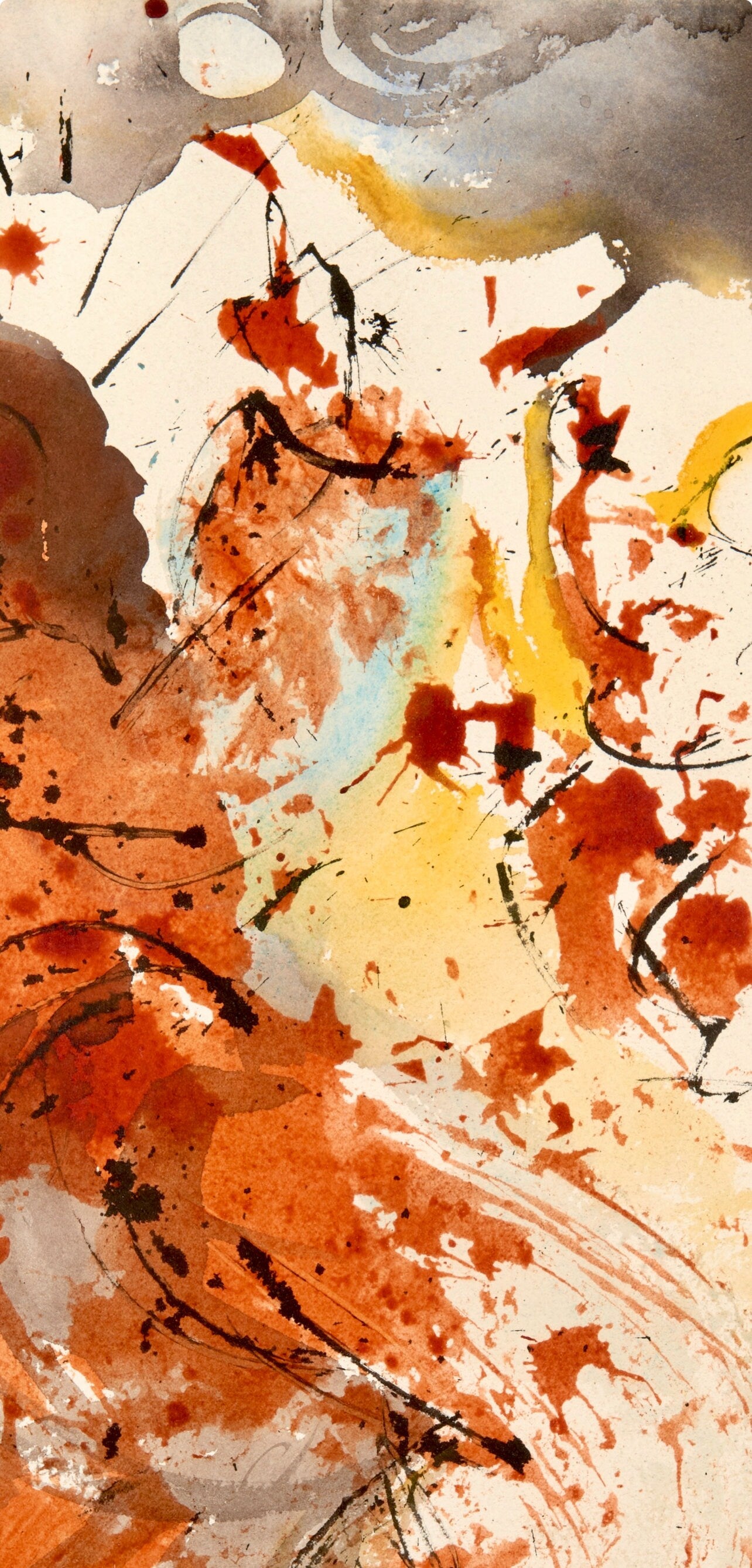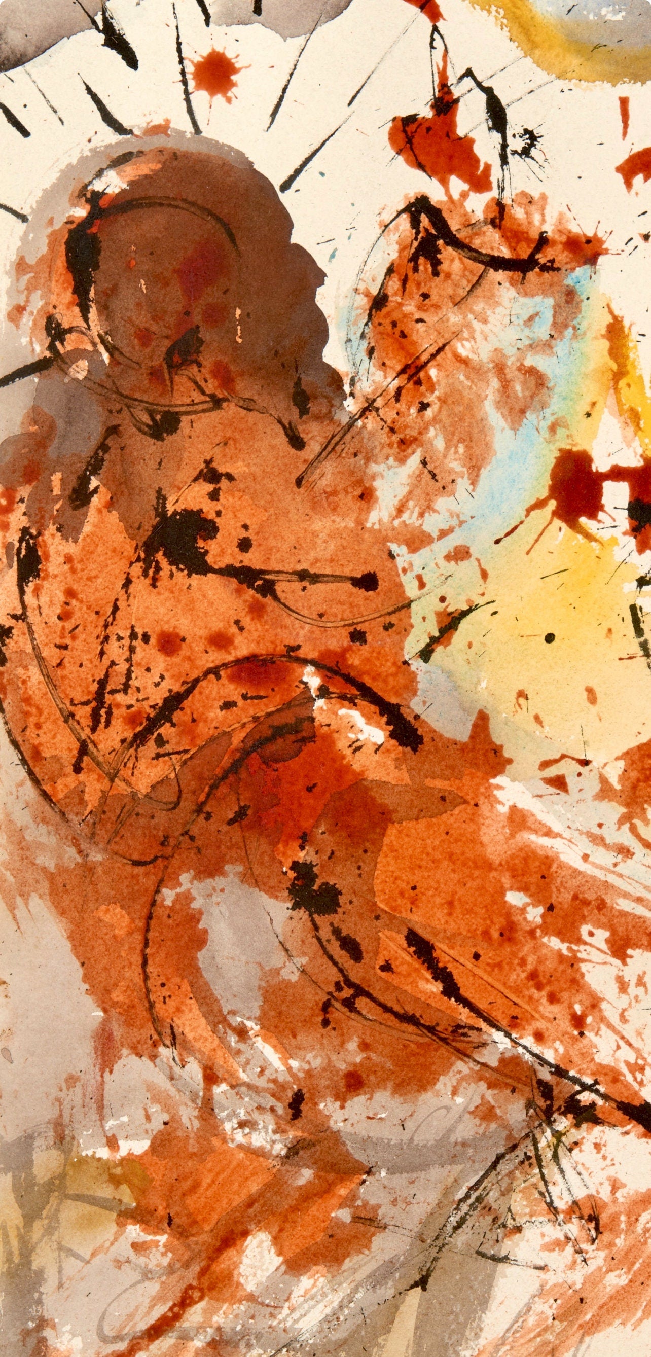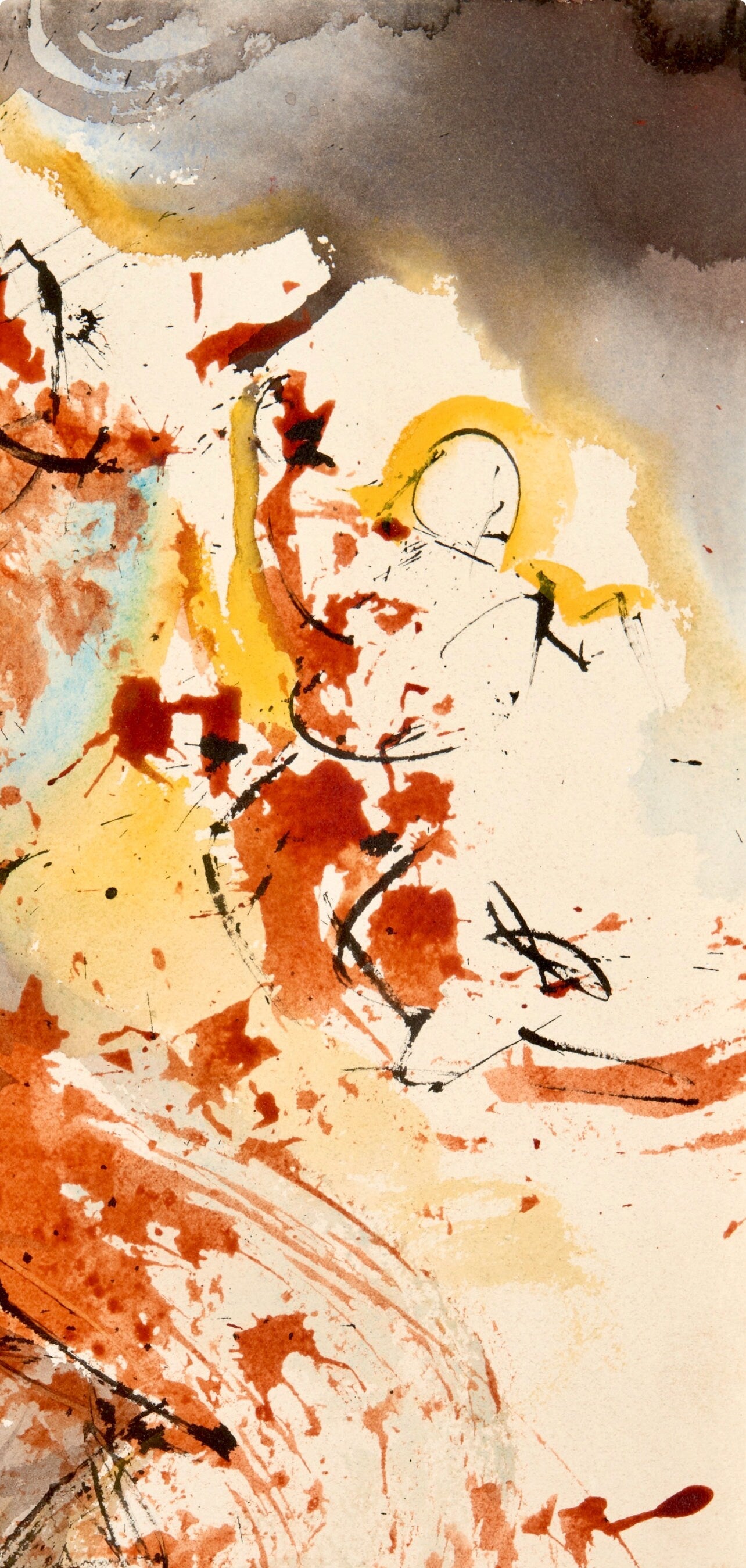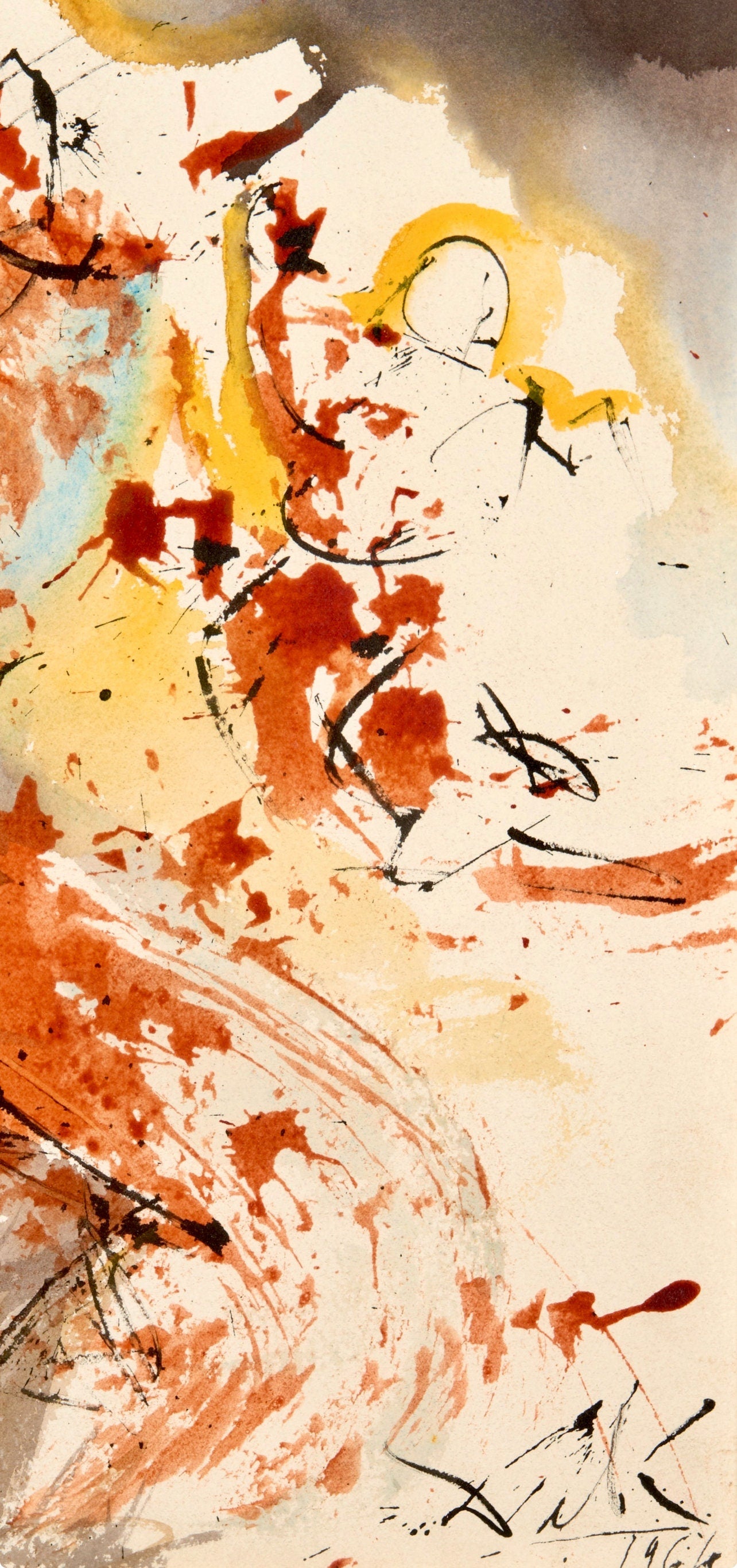 Lithograph in colors on Fabriano hand-made, rag, cream laid paper. Paper Size: 19.375 x 14.375 inches. Excellent condition. Inscription: Unsigned and unnumbered, as issued. Catalogue Raisonne Reference: Michler/Lpsinger 1600; Field 69-3. Notes: From the volume, Biblia Sacra, 1967. Published by Rizzoli-Mediolani, Milan, and Giuseppe Albaretto, Port Lligat; printed by Graphic Workshop of Rizzoli-Mediolani, Milan, 1967. Excerpted from the volume (translated from Latin), Under the unique and personal direction and supervision of the publisher, this work, divided into five volumes, was entirely and exclusively produced in the Graphic Workshop of Rizzoli-Mediolani under the supervision of Peter Raggi and assisted by Peter Volont and Iohanne Charles Penna, was brought to effect. The form of letters, derived from certain cradles of Aldi Manutius, was drawn up and shot again for this very purpose. The prints of this work were ordered: XCIX examples "ab alveo", each with an original painting by Salvador Dal, on which they were printed on paper made from pure rags "from the canal" by hand, woven with transparent figures, and covered and compacted with a green wash, commonly known as "maro-chinum," decorated with gold ornaments and painted on the back dorso picta. CXCIX examples in a sumptuous "luxury" edition in Roman Numerals, distinguished from I to MCDXCIX, likewise printed on paper made of mere cloth "ab alveo" by hand, woven with transparent figures, and covered with green cloth covered with gold ornaments, painted like a mosaic on the back. MCDXCIX examples, beautiful "luxus" edition, Arabic numerals distinguished from I to MCDXCIX, printed on a special colored paper and woven with transparent figures, covered with leather ca first skin color exibente, with golden ornaments.
