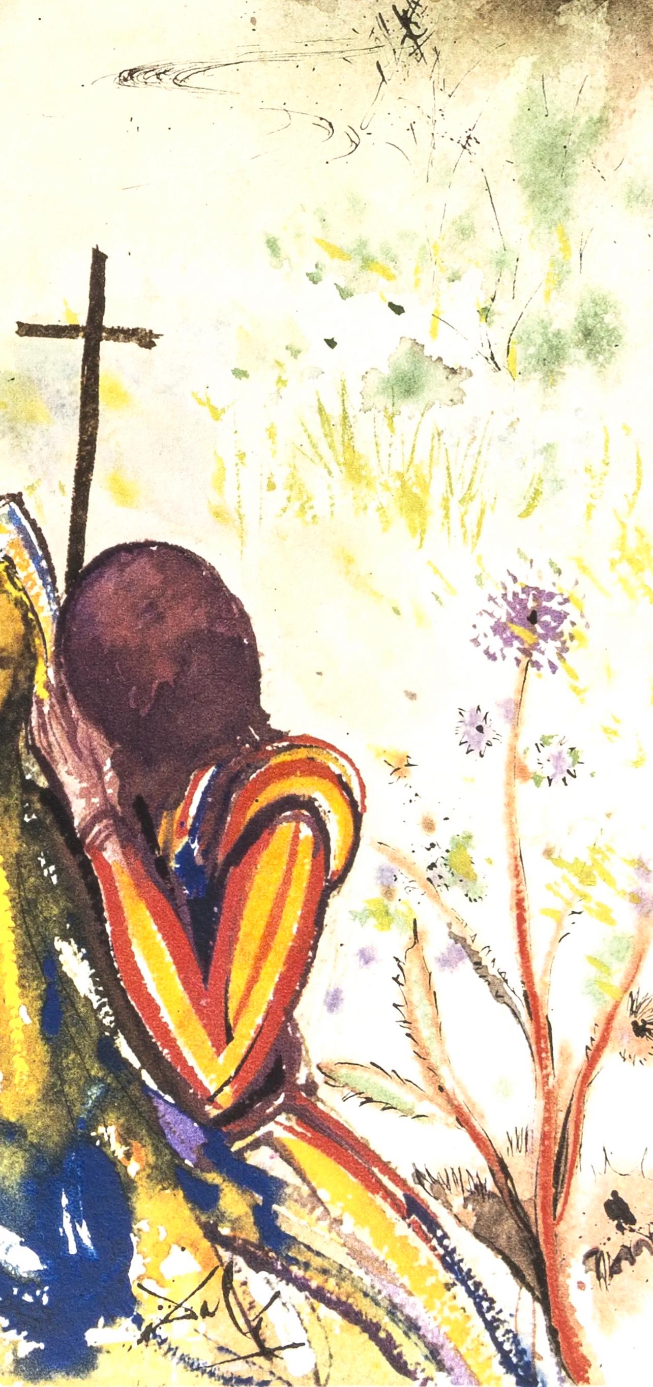 Lithograph, silkscreen in colors on vlin vergata paper. Paper size: 16.5 x 12.625 inches. Excellent condition. Inscription: Signed in the plate and unnumbered, as issued. Catalogue Raisonne Reference: Michler/Lpsinger 1601. Notes: From the Romeo e Giulietta, 1975. Published by Rizzoli-Mediolani, Milan; printed by Graphic Workshop of Rizzoli-Mediolani, Milan, December, 1975. Excerpted from the album (translated from Italian), Of this edition, were drawn: XXXV examples ad personam, printed on handmade paper and artist's signature in filigree, bound in brown marocchino leather, with gold graphics and serigraphy. The title slips are all signed by Salvador Dal; CXLV ad personam examples, imprinted on vergata paper and signature of the artist in filigree, bound in goat leather color testa di moro, with gold and pastel graphics and serigraphy. The title sides are all signed by Salvador Dal. DCCCXIX ad personam, examples, imprinted on vergata paper and signature of the artist in filigree, bound in blood silk, with gold graphics and printing in serigraphy. The title sides are all signed by Salvador Dal. The edition was imprinted in the Officine Grafiche della Rizzoli Editore in Milan, in December of the year 1975.