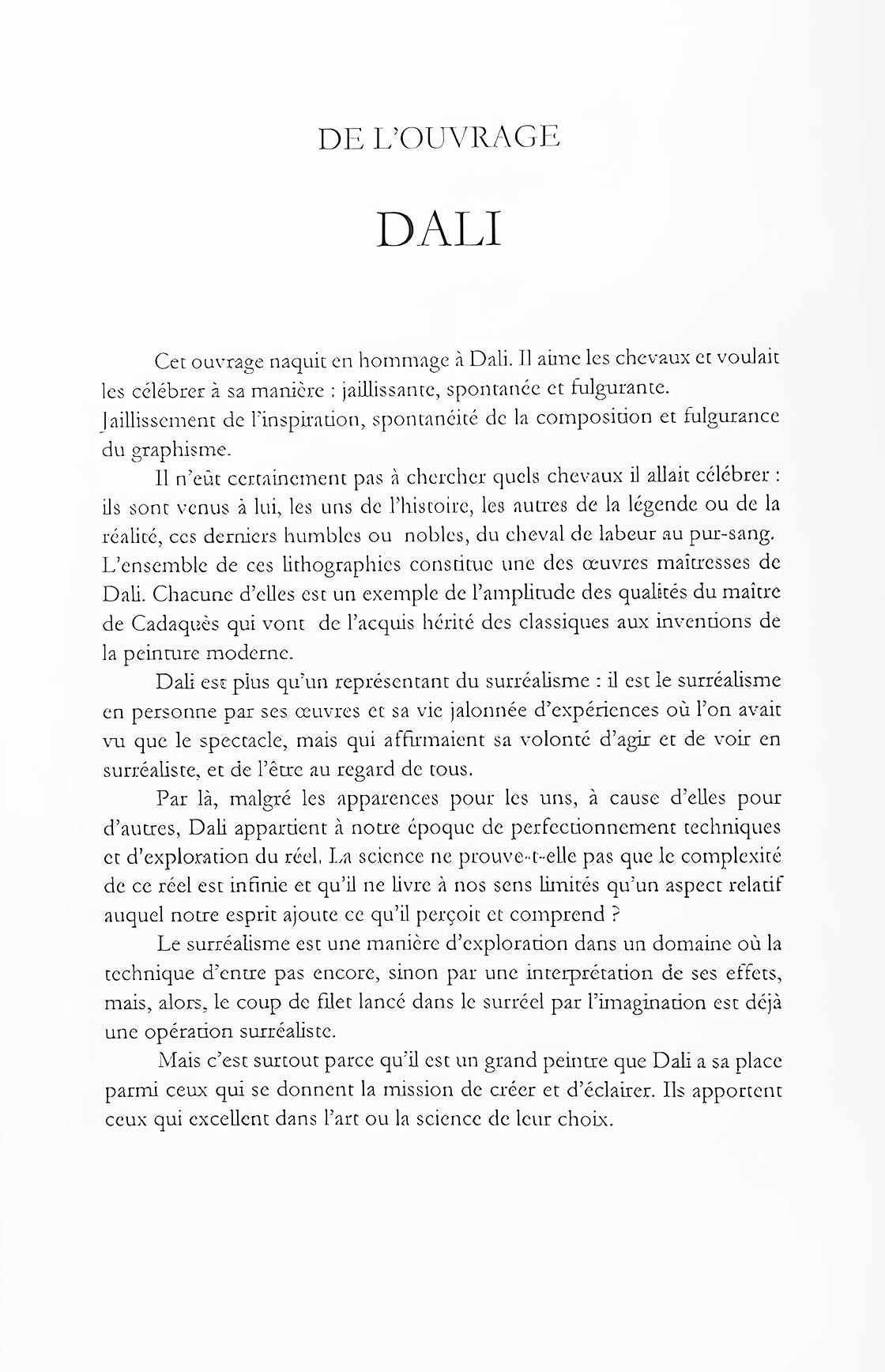 Excerpted from the folio (translated from French), This work was born in tribute to Dali.