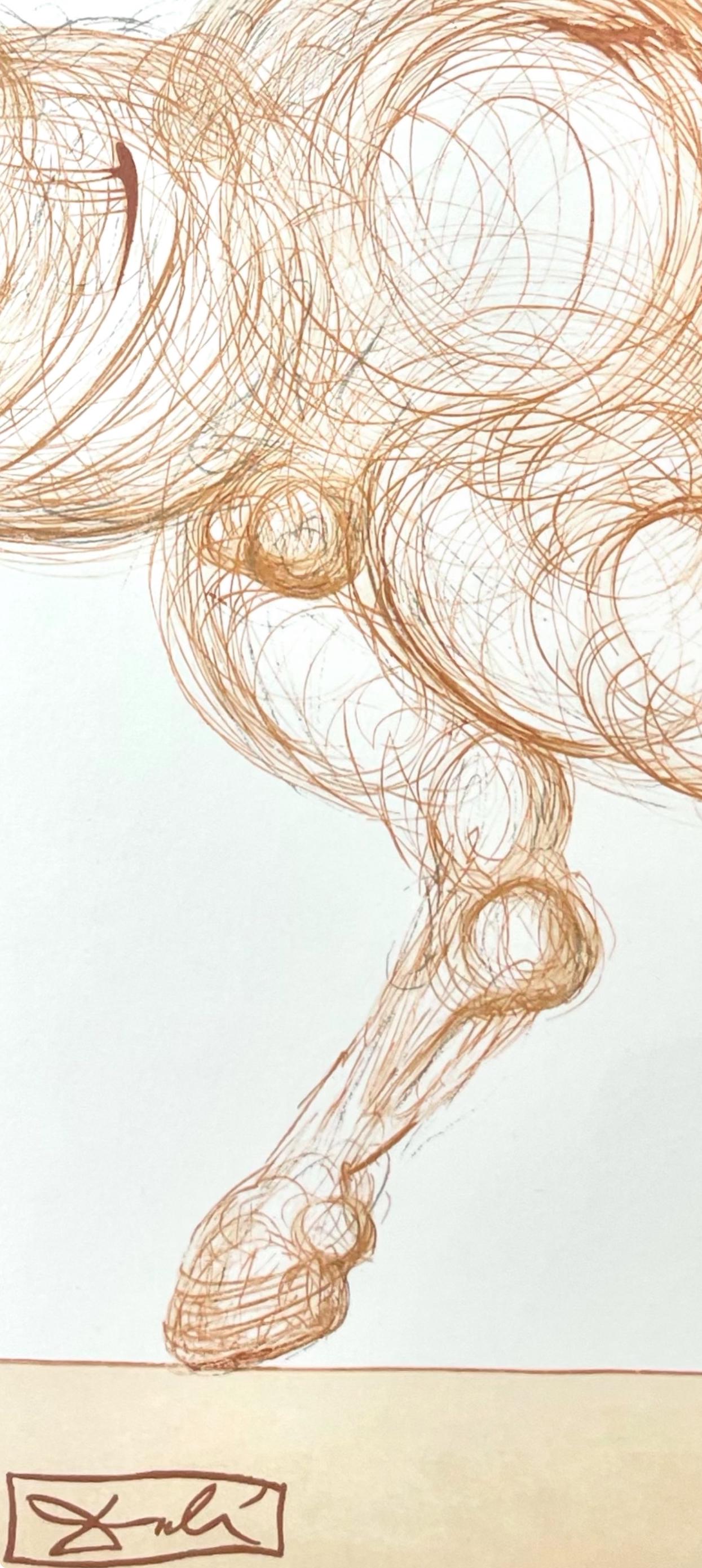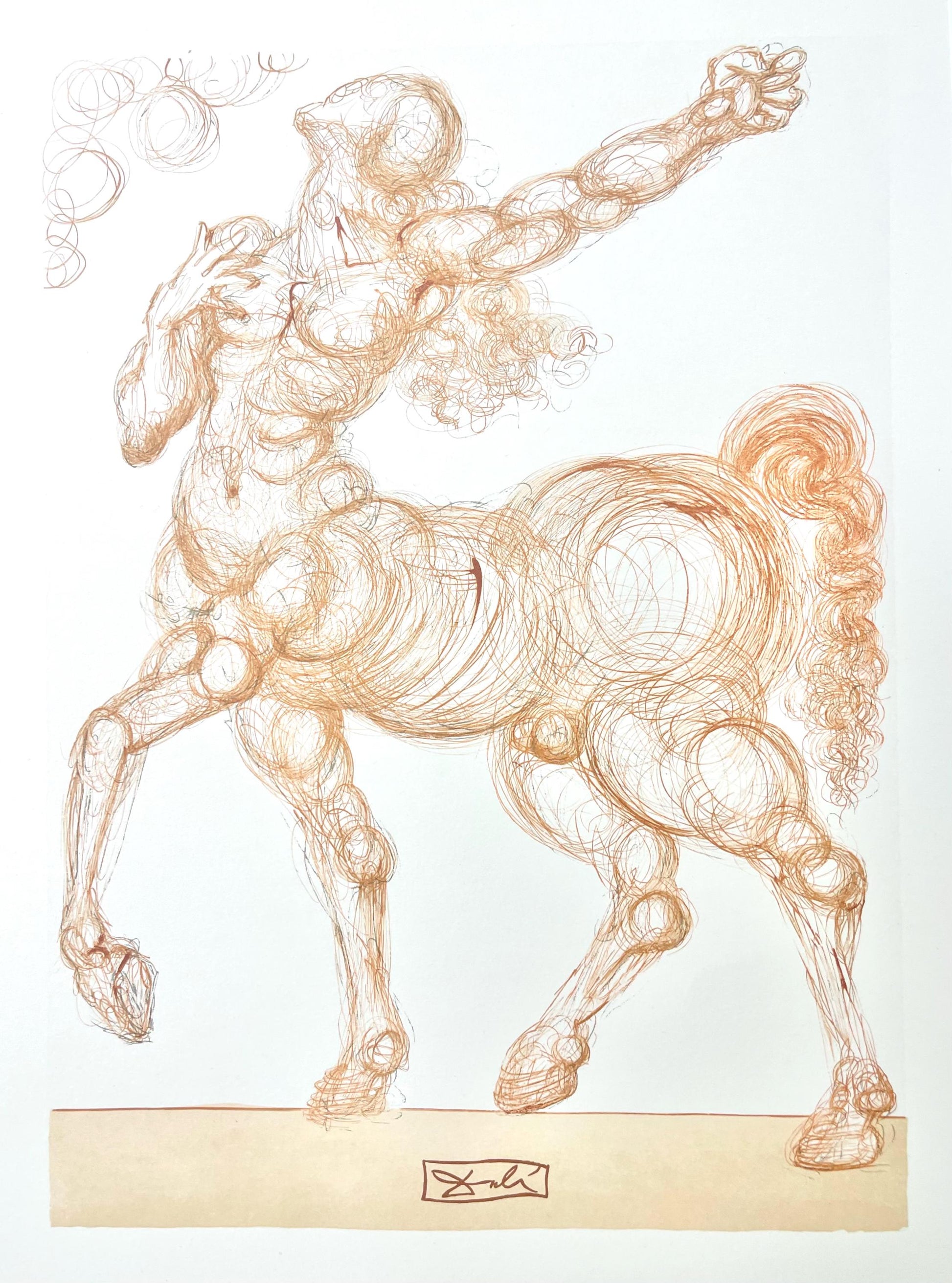 Woodcut in colors on vlin de Rives BFK paper, mounted on vlin dArches support, as issued. Paper size: 13 x 10.375 inches. Excellent condition. Inscription: Signed in the block, and unnumbered, as issued. Catalogue raisonn reference: Michler & Lpsinger 1039-1138; Field 189-200. Notes: From the folio, Die Gttliche Komdie, 1974. Published by Art-Crations-Bibliophile, Geneva, under the direction of Jawdat Naffouj, Landstuhl; printed by Ateliers Jacquet et Taricco, Paris, 1974. Excerpted from the folio (translated from German), The current edition of Salvador Dali's illustrations for Dante's, Gttliche Komdie was published for the German-speaking countries and shot in M examples, limited.
