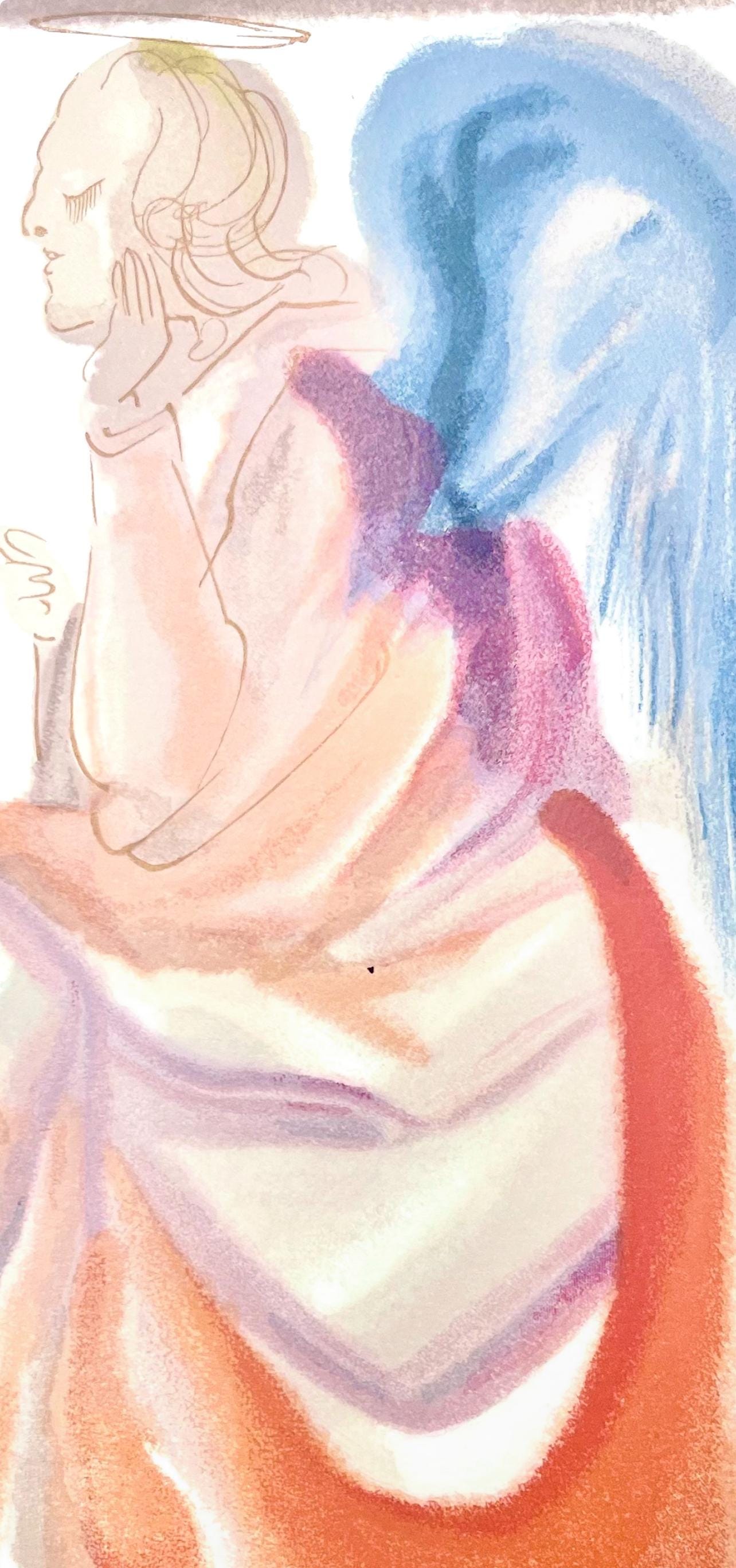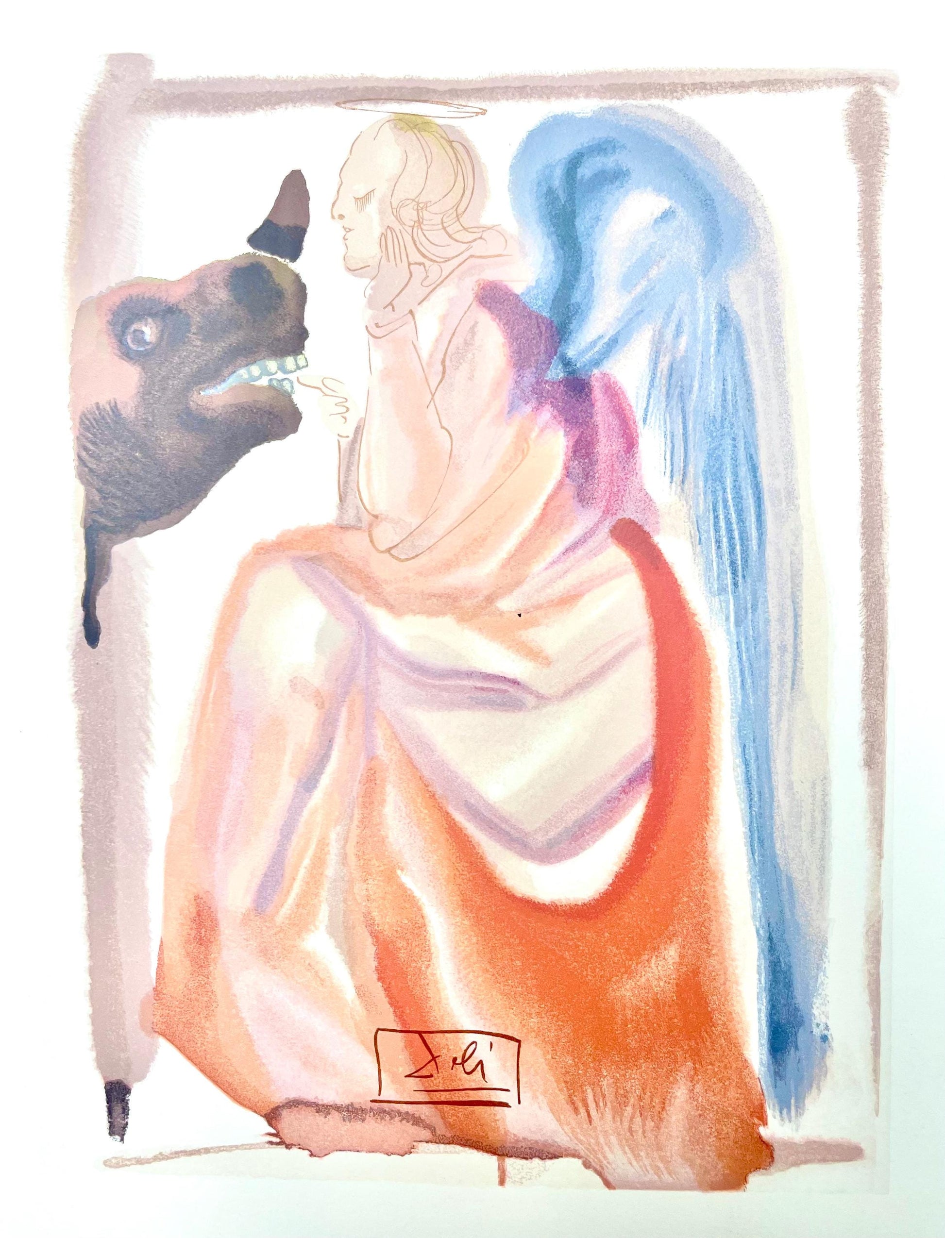 Woodcut in colors on vlin de Rives BFK paper, mounted on vlin dArches support, as issued. Paper size: 13 x 10.375 inches. Excellent condition. Inscription: Signed in the block, and unnumbered, as issued. Catalogue raisonn reference: Michler & Lpsinger 1039-1138; Field 189-200. Notes: From the folio, Die Gttliche Komdie, 1974. Published by Art-Crations-Bibliophile, Geneva, under the direction of Jawdat Naffouj, Landstuhl; printed by Ateliers Jacquet et Taricco, Paris, 1974. Excerpted from the folio (translated from German), The current edition of Salvador Dali's illustrations for Dante's, Gttliche Komdie was published for the German-speaking countries and shot in M examples, limited.