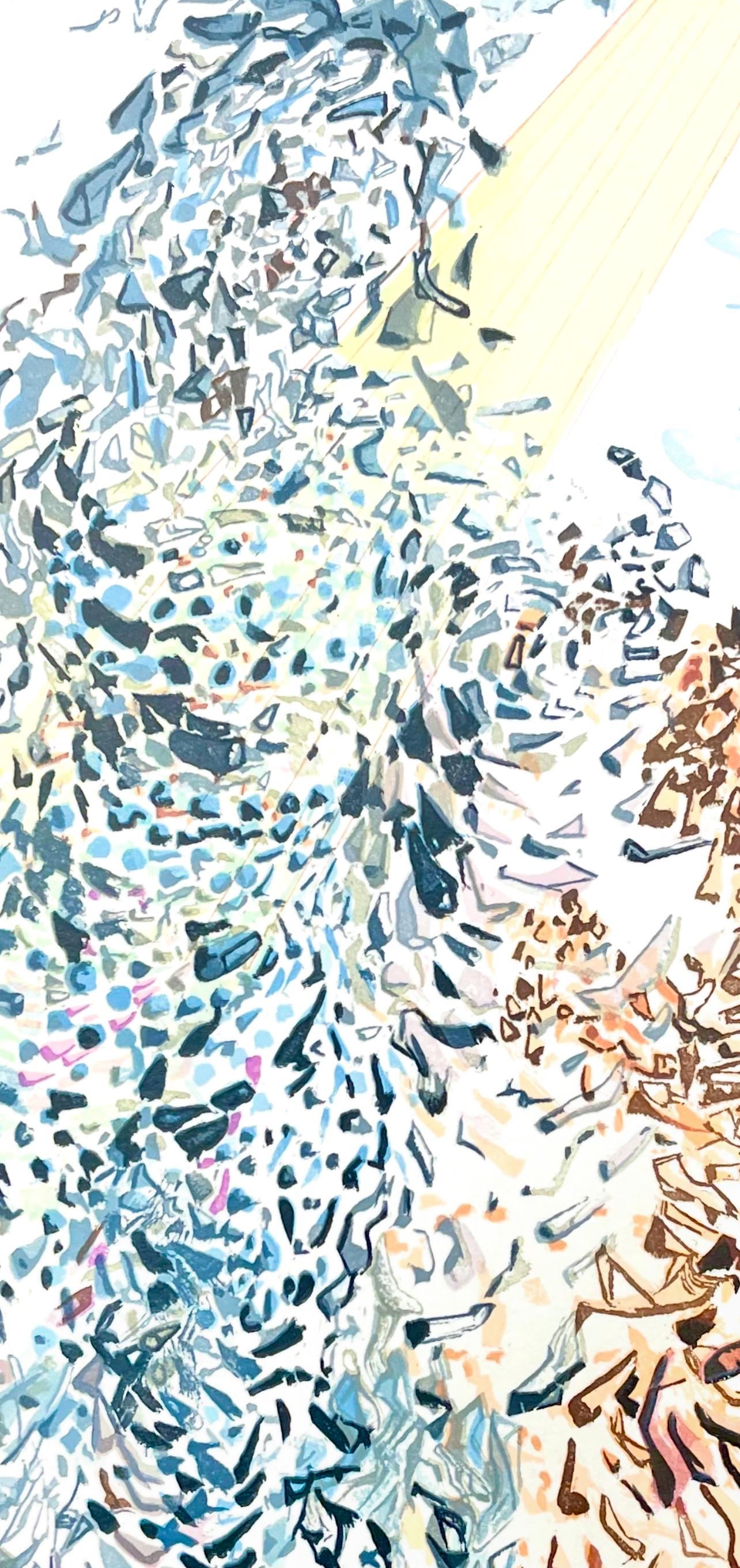 Woodcut in colors on vlin de Rives BFK paper, mounted on vlin dArches support, as issued. Paper size: 13 x 10.375 inches. Excellent condition. Inscription: Signed in the block, and unnumbered, as issued. Catalogue raisonn reference: Michler & Lpsinger 1039-1138; Field 189-200. Notes: From the folio, Die Gttliche Komdie, 1974. Published by Art-Crations-Bibliophile, Geneva, under the direction of Jawdat Naffouj, Landstuhl; printed by Ateliers Jacquet et Taricco, Paris, 1974. Excerpted from the folio (translated from German), The current edition of Salvador Dali's illustrations for Dante's, Gttliche Komdie was published for the German-speaking countries and shot in M examples, limited.