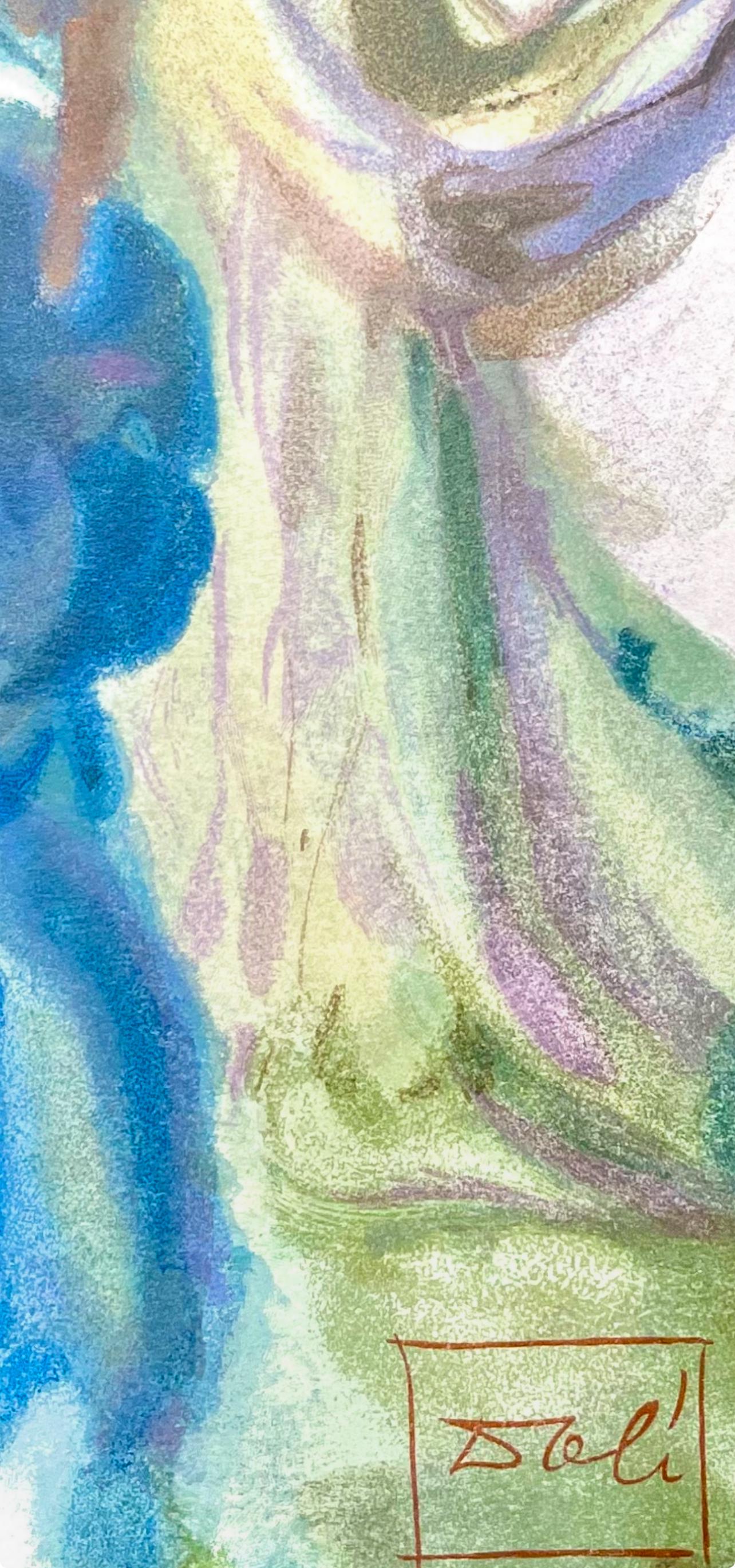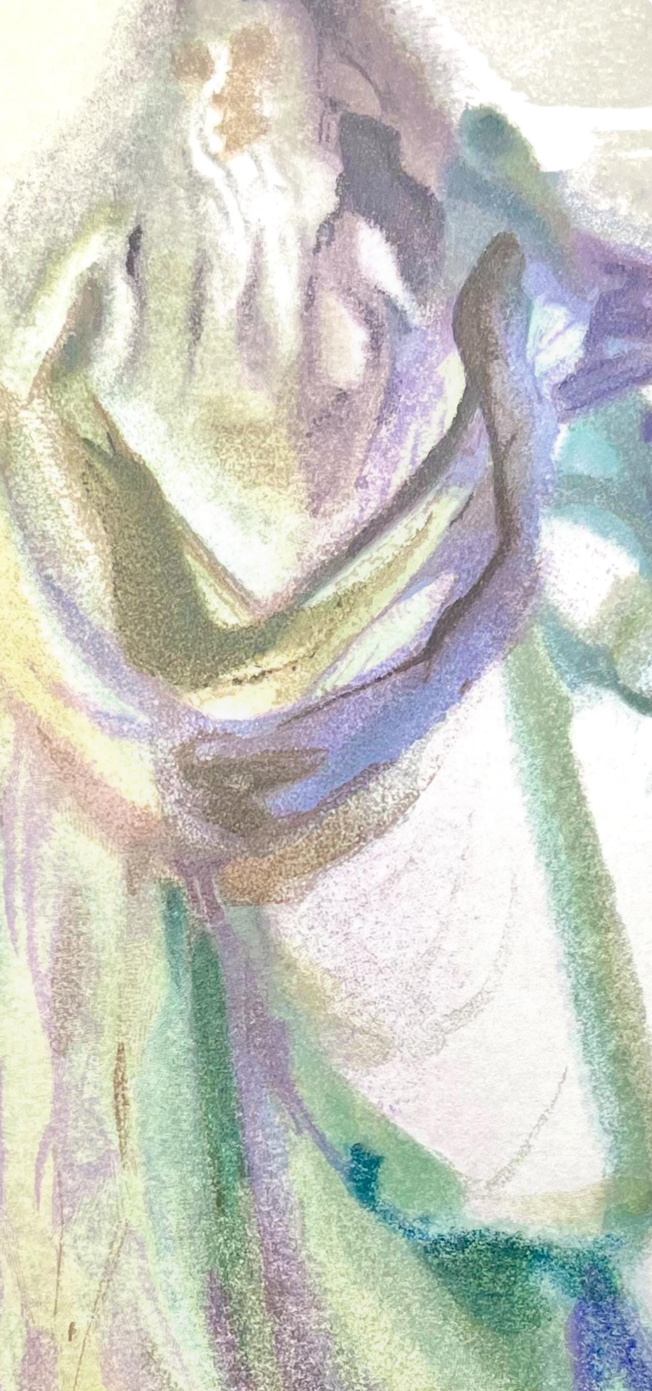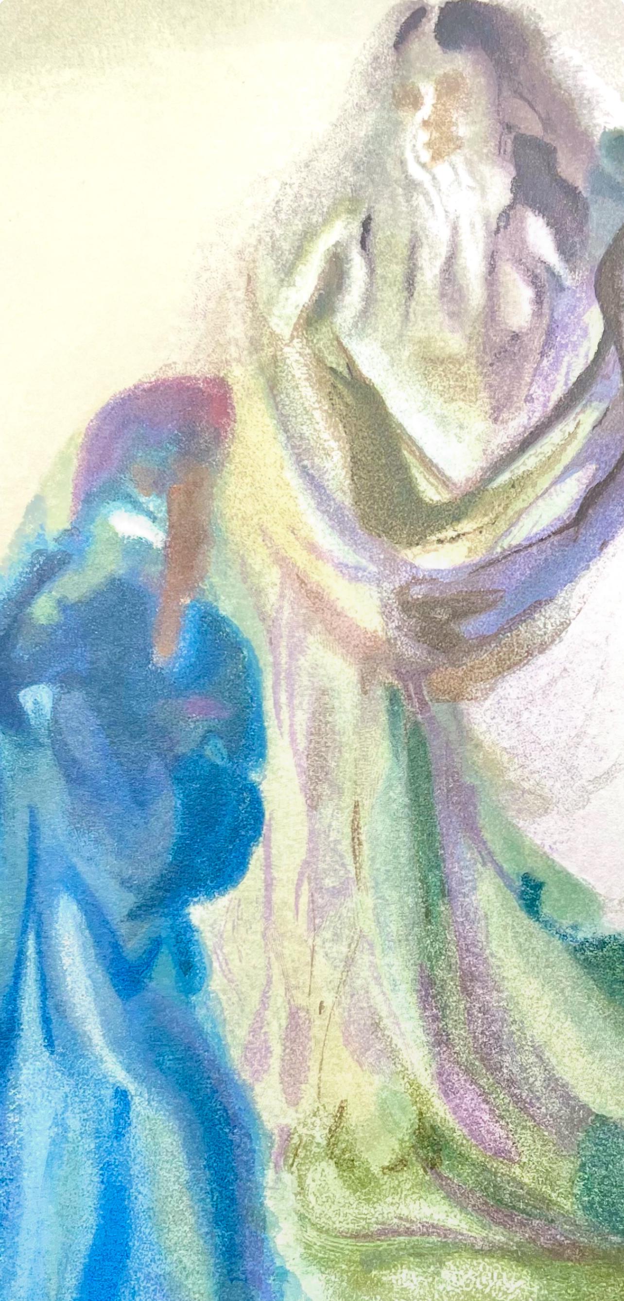 Woodcut in colors on vlin de Rives BFK paper, mounted on vlin dArches support, as issued. Paper size: 13 x 10.375 inches. Excellent condition. Inscription: Signed in the block, and unnumbered, as issued. Catalogue raisonn reference: Michler & Lpsinger 1039-1138; Field 189-200. Notes: From the folio, Die Gttliche Komdie, 1974. Published by Art-Crations-Bibliophile, Geneva, under the direction of Jawdat Naffouj, Landstuhl; printed by Ateliers Jacquet et Taricco, Paris, 1974. Excerpted from the folio (translated from German), The current edition of Salvador Dali's illustrations for Dante's, Gttliche Komdie was published for the German-speaking countries and shot in M examples, limited.