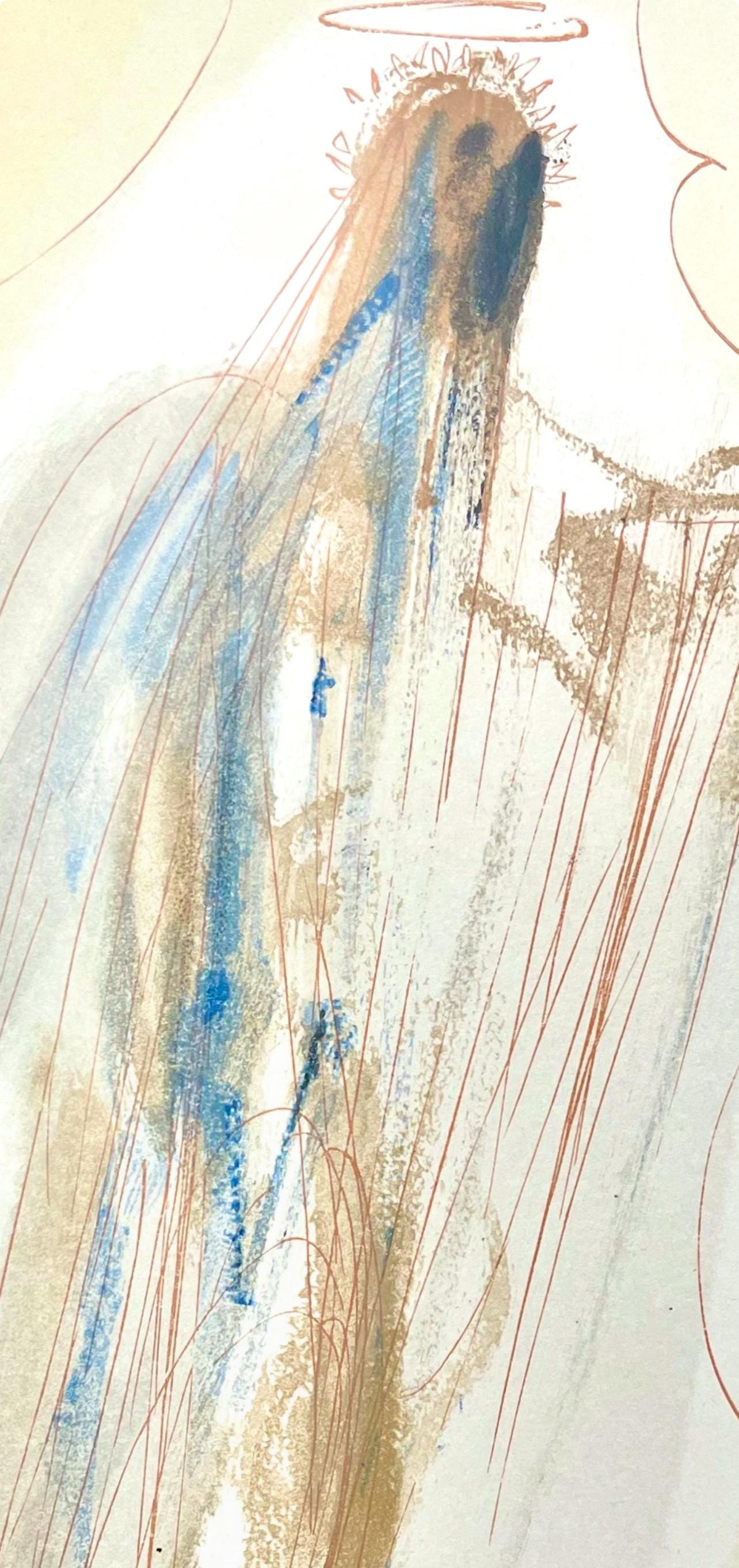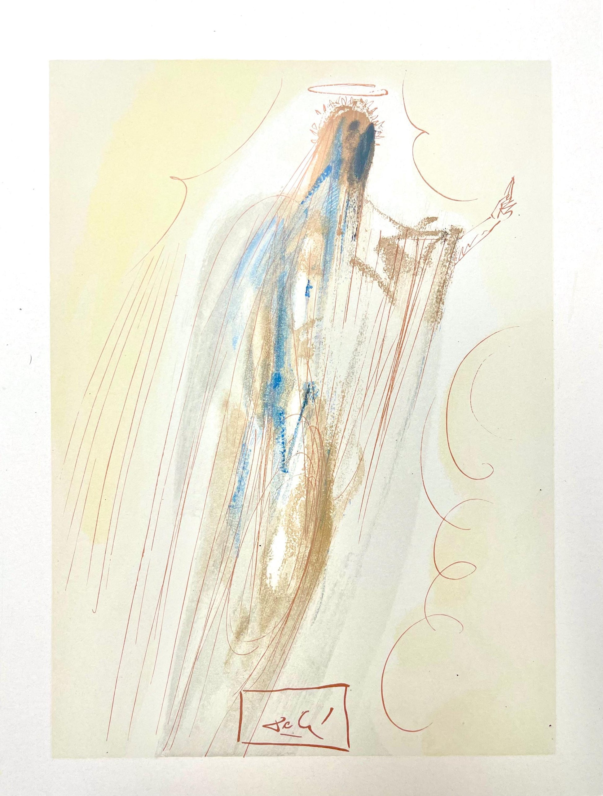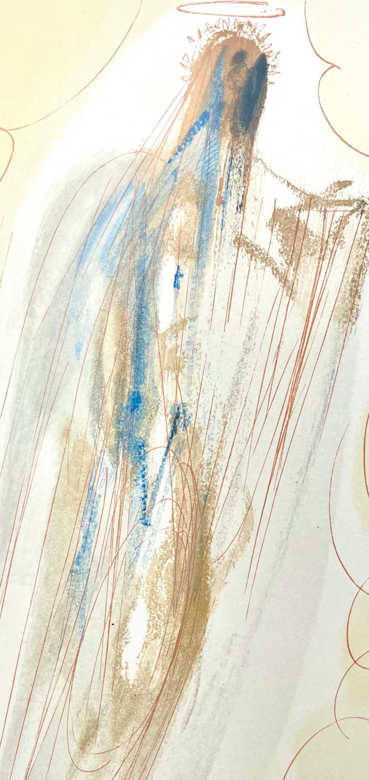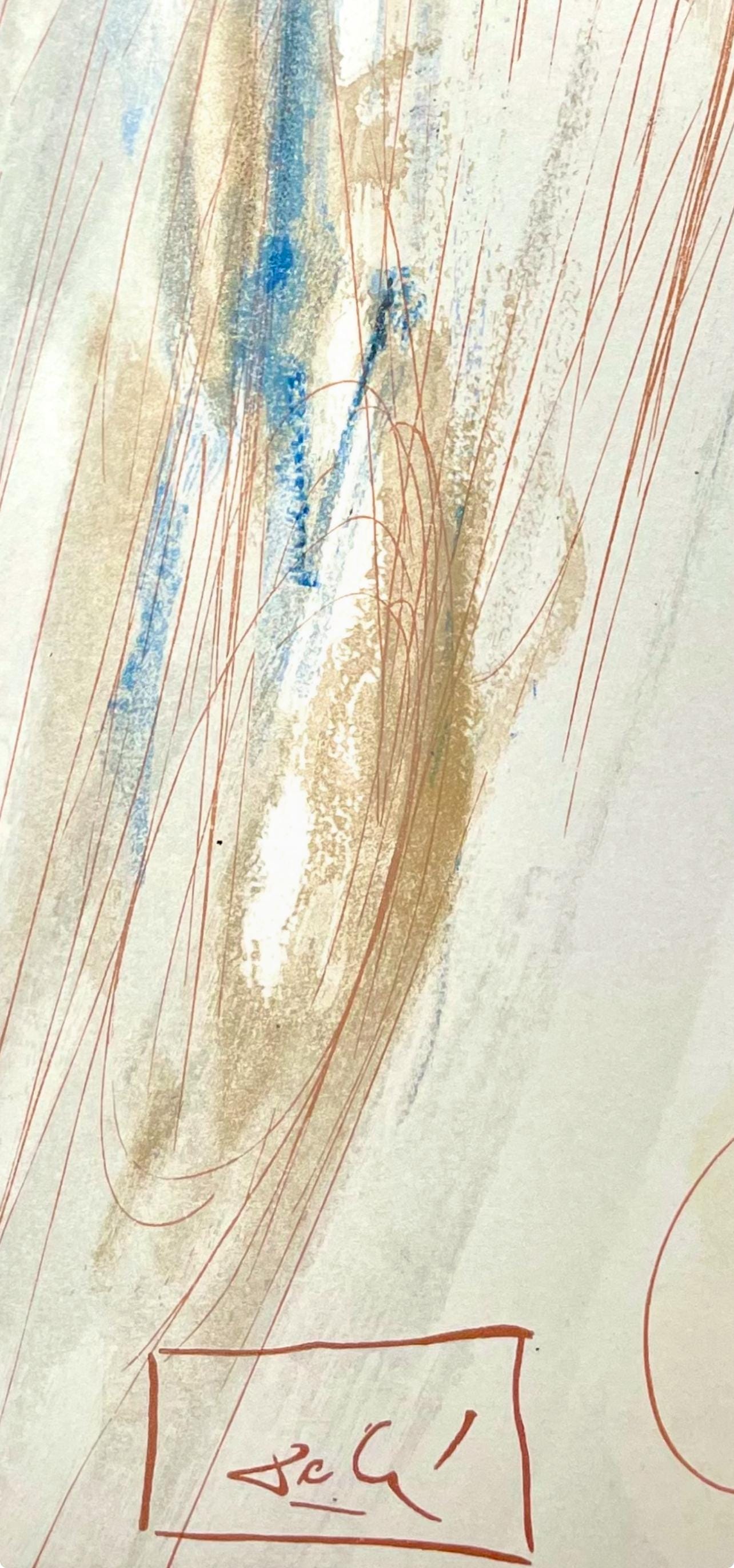 Woodcut in colors on vlin de Rives BFK paper, mounted on vlin dArches support, as issued. Paper size: 13 x 10.375 inches. Excellent condition. Inscription: Signed in the block, and unnumbered, as issued. Catalogue raisonn reference: Michler & Lpsinger 1039-1138; Field 189-200. Notes: From the folio, Die Gttliche Komdie, 1974. Published by Art-Crations-Bibliophile, Geneva, under the direction of Jawdat Naffouj, Landstuhl; printed by Ateliers Jacquet et Taricco, Paris, 1974. Excerpted from the folio (translated from German), The current edition of Salvador Dali's illustrations for Dante's, Gttliche Komdie was published for the German-speaking countries and shot in M examples, limited.
