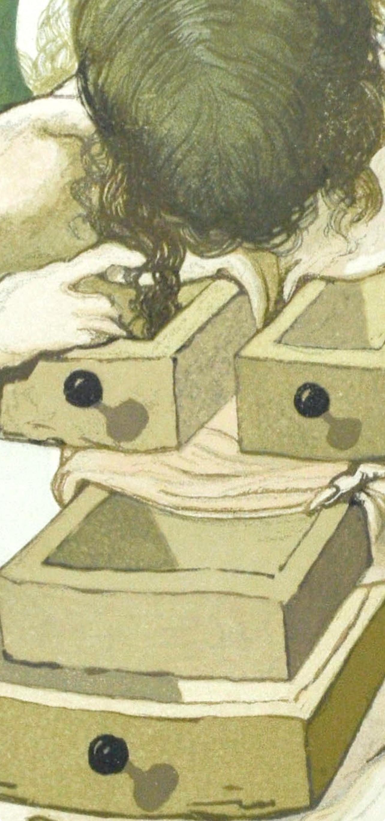 Woodcut in colors on vlin pur chiffon de Rives paper.