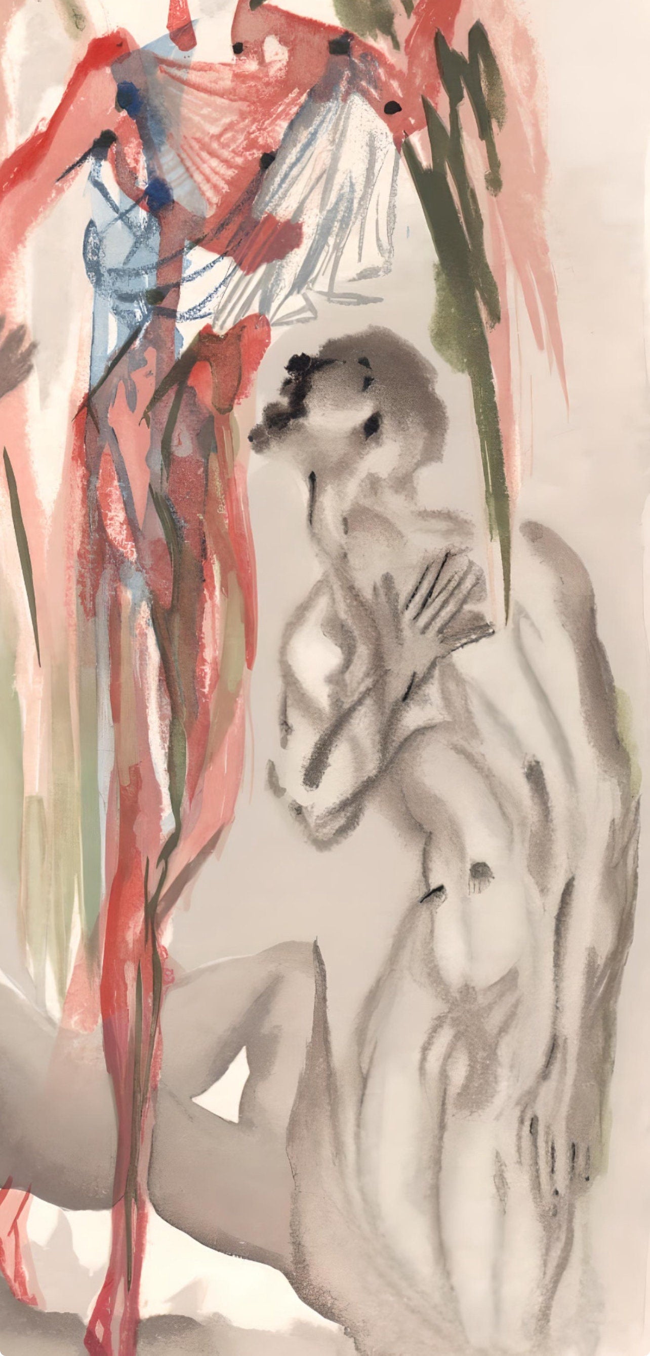 Woodcut in colors on vlin pur chiffon de Rives paper. Paper Size: 13 x 10.25 inches. Excellent condition. Inscription: Unsigned and unnumbered, as issued. Catalogue Raisonne Reference: Michler/Lpsinger 1039-1138; Field 189-200. Notes: From the folio, La Divine Comdie, 1963. Published by ditions d'Art Les Heures Claires, Paris; rendered by Raymond Jacquet, Paris; printed by l'imprimerie M. Jacquet, Paris, November 23, 1963. This French-language edition of "La Divine Comdie" by Dante Alighieri in the translation by Julien Brizeux was entirely made in Paris. It required fifty-five months of patient and assiduous work. Started in April 1959, it was completed on November 23, 1963. Two ateliers have attached their name to this monumental work: the printing works Jacquet and Daragnes. The printing of the illustrations was carried out in Nbiolo in the M. Jacquet printing company under the direction of Raymond Jacquet assisted by Jean Taricco and Paul Massin. The pressers are Marcel Marsillac, Roger Fontaine, Claude Marsillac, Grard Favien, Francis Merat. The engraving of the three thousand five hundred woods necessary for the exceptional reconstruction of Salvador Dali's hundred watercolors is the work of Raymond Jacquet with the collaboration of Jean Taricco. The text composed by hand in Meridian Body Twenty by Madeleine Jacquet was drawn by l'imprimerie Daragnes.