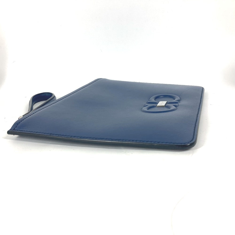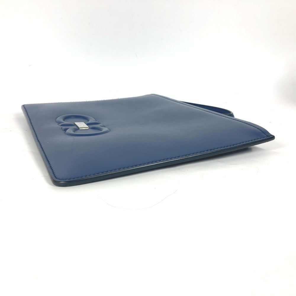 Salvatore Ferragamo Clutch Bag Leather Blue Gancini Mens