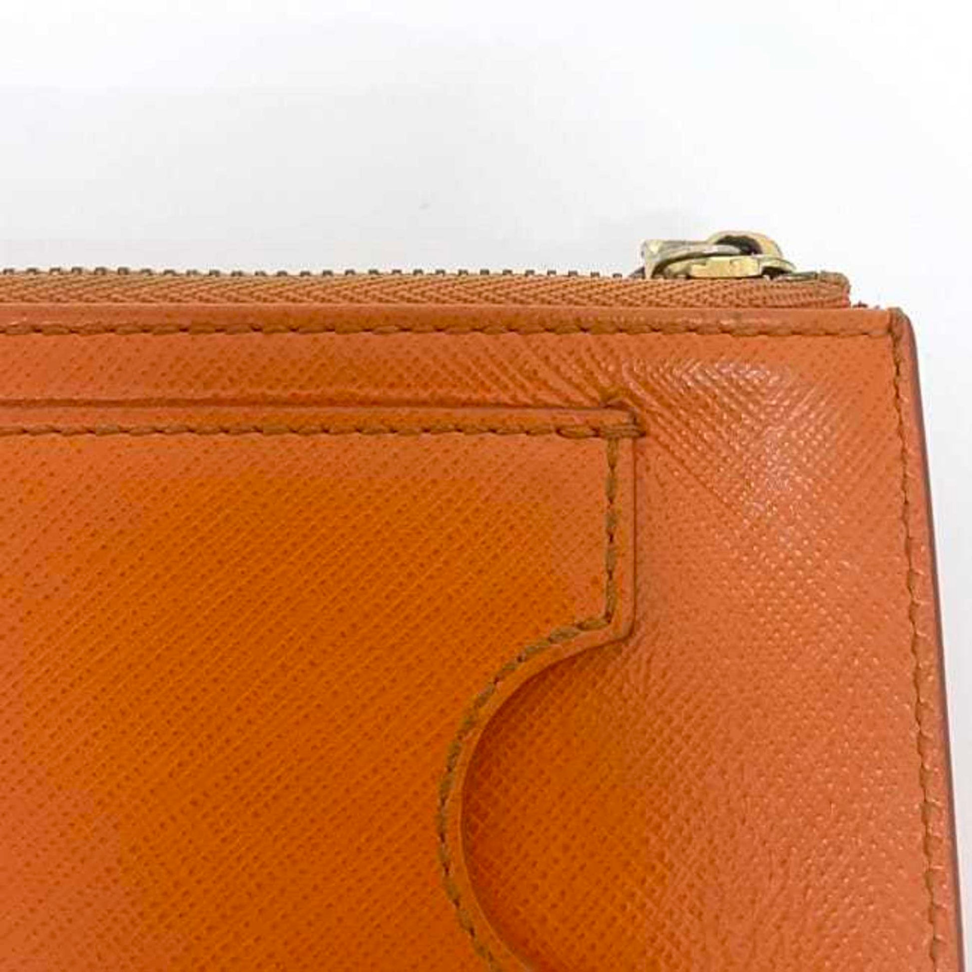 Salvatore Ferragamo Coin Case Ec-23091 Orange Gancini Leather Gj-22B956