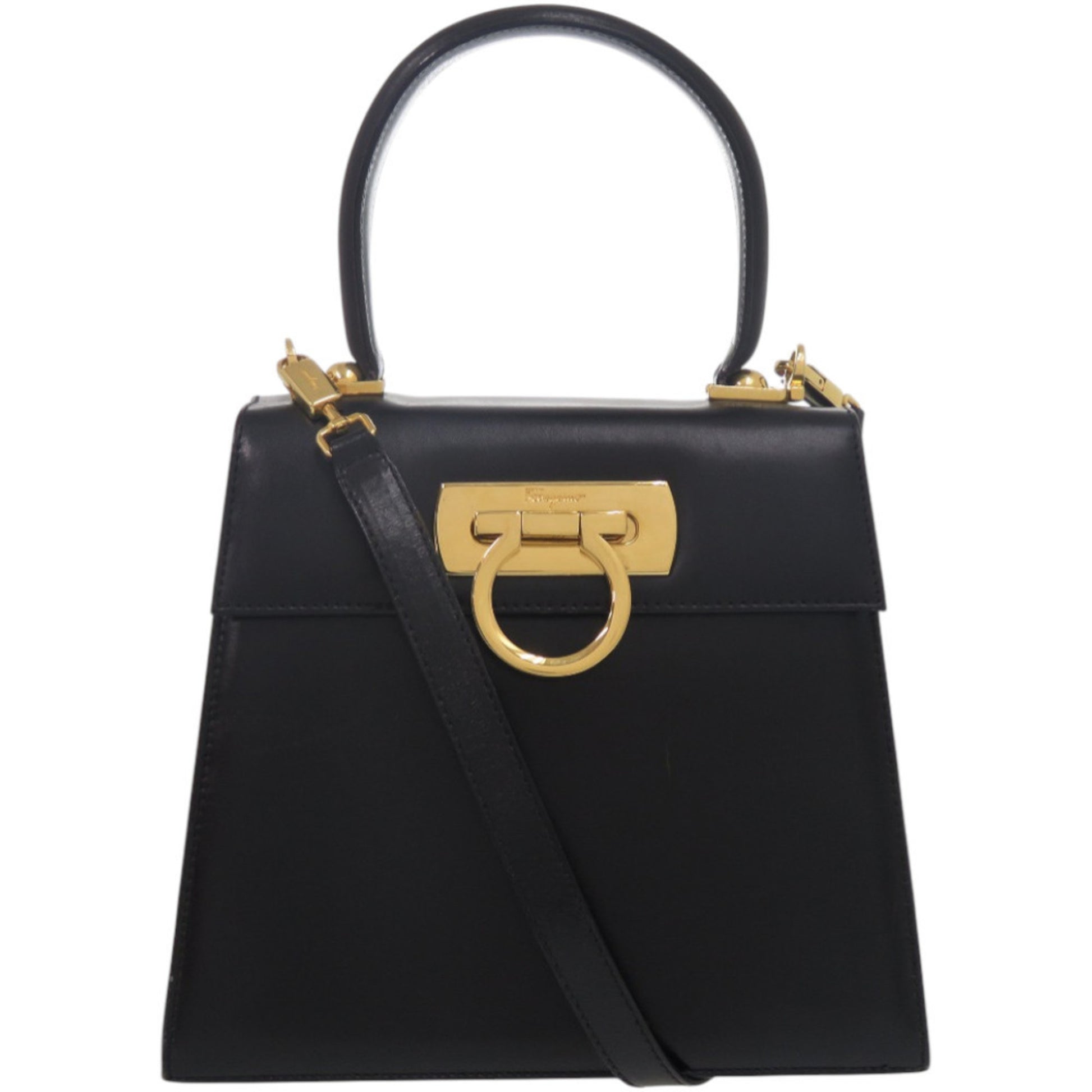 Salvatore Ferragamo Gancini Aq-212193 Leather Black Handbag 0608