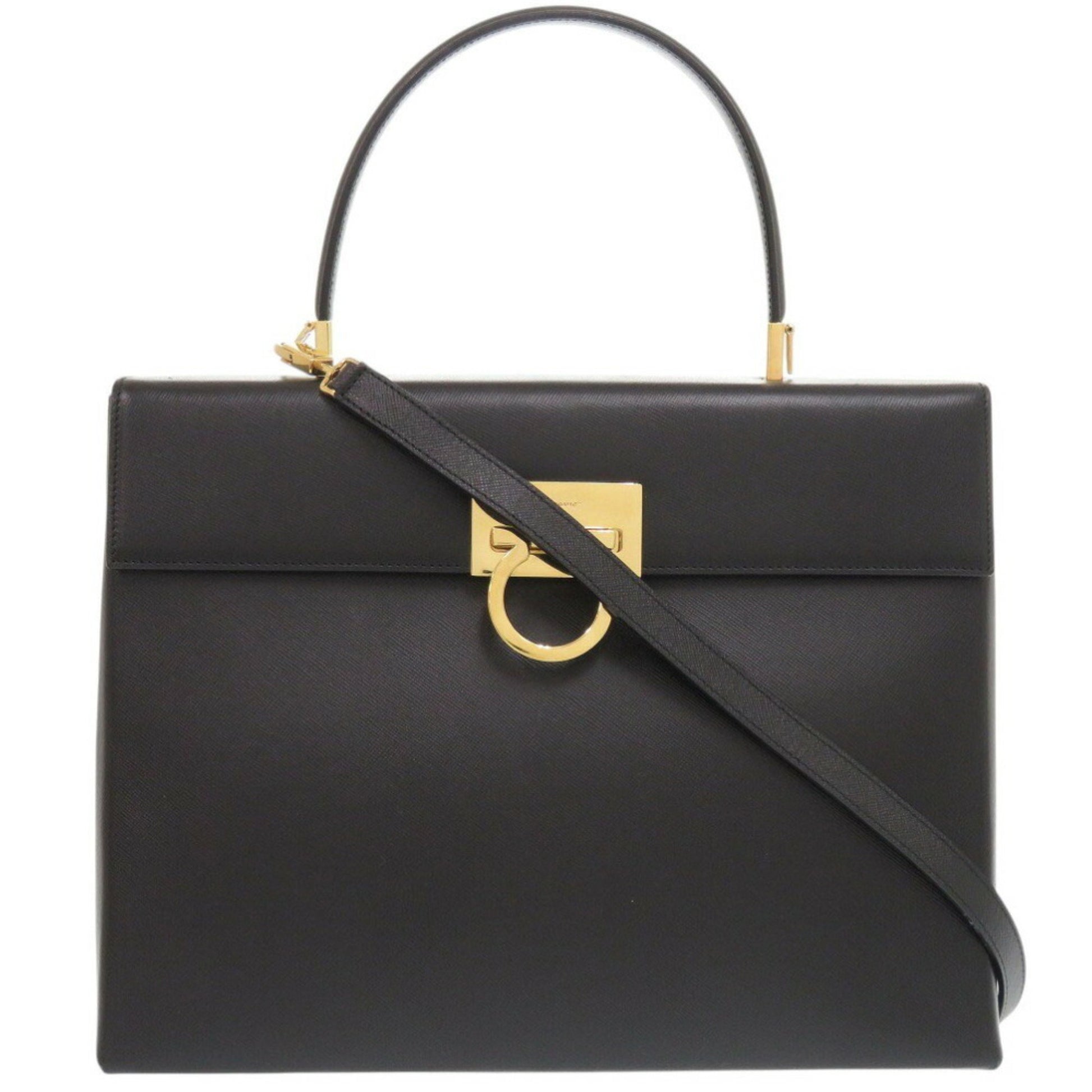 Salvatore Ferragamo Gancini Dy-21 8791 Leather Black Handbag 1410Salvatore