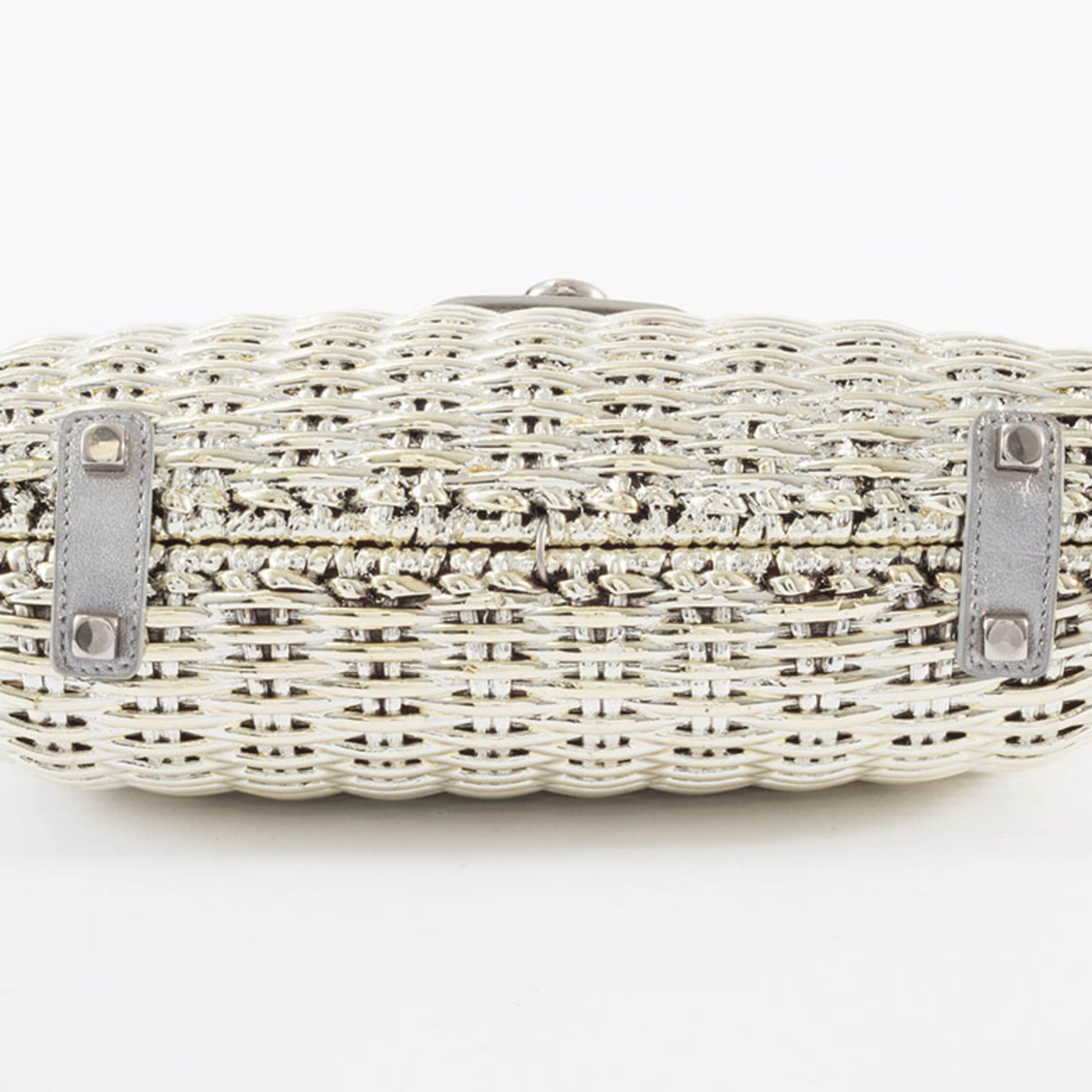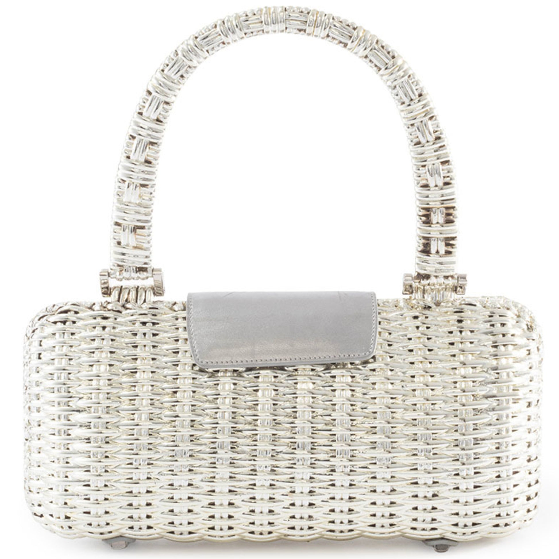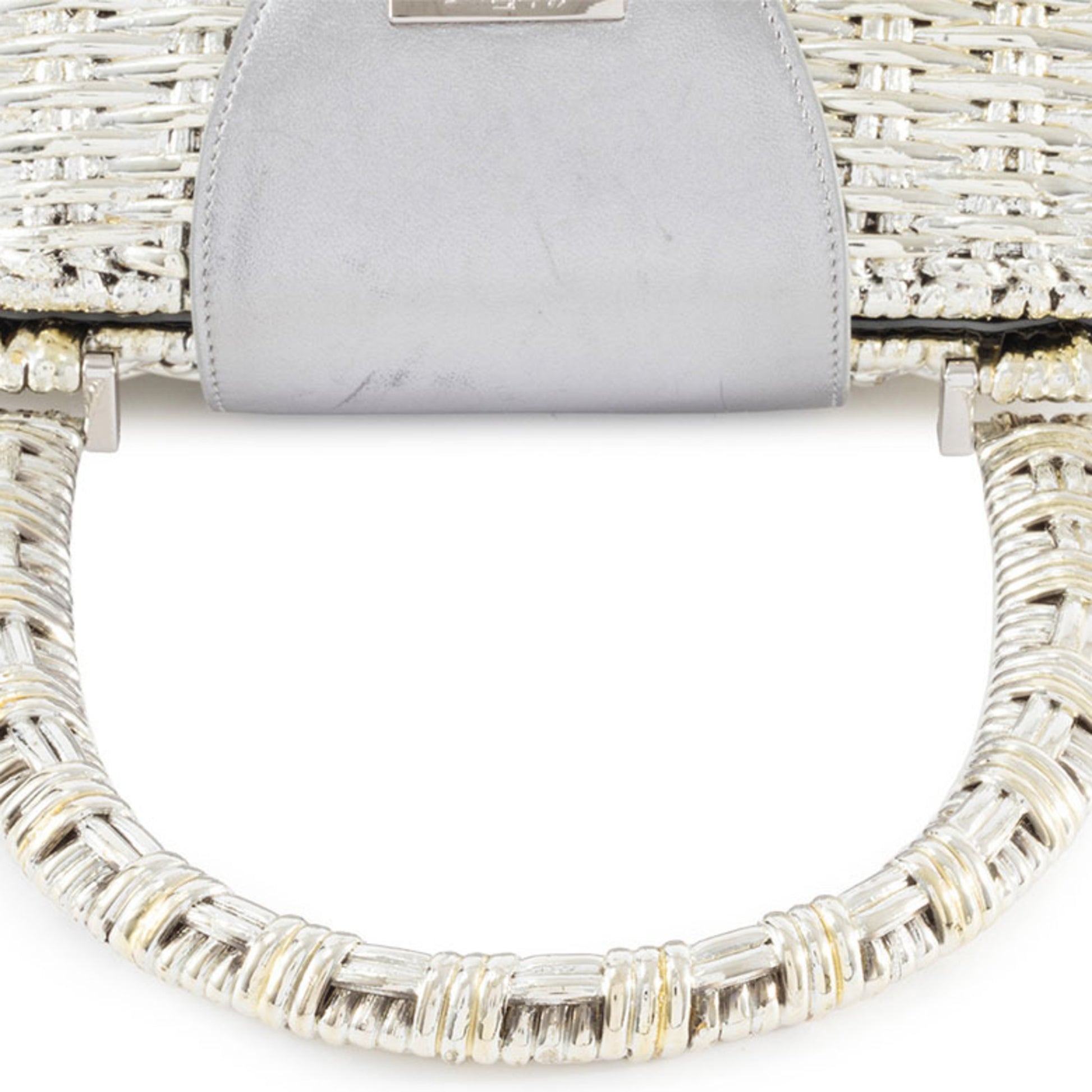 Salvatore Ferragamo Gancini Handbag In Silver Rattan