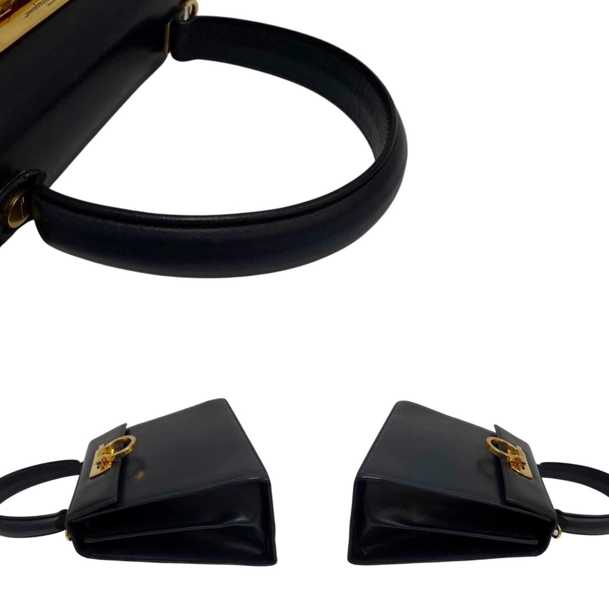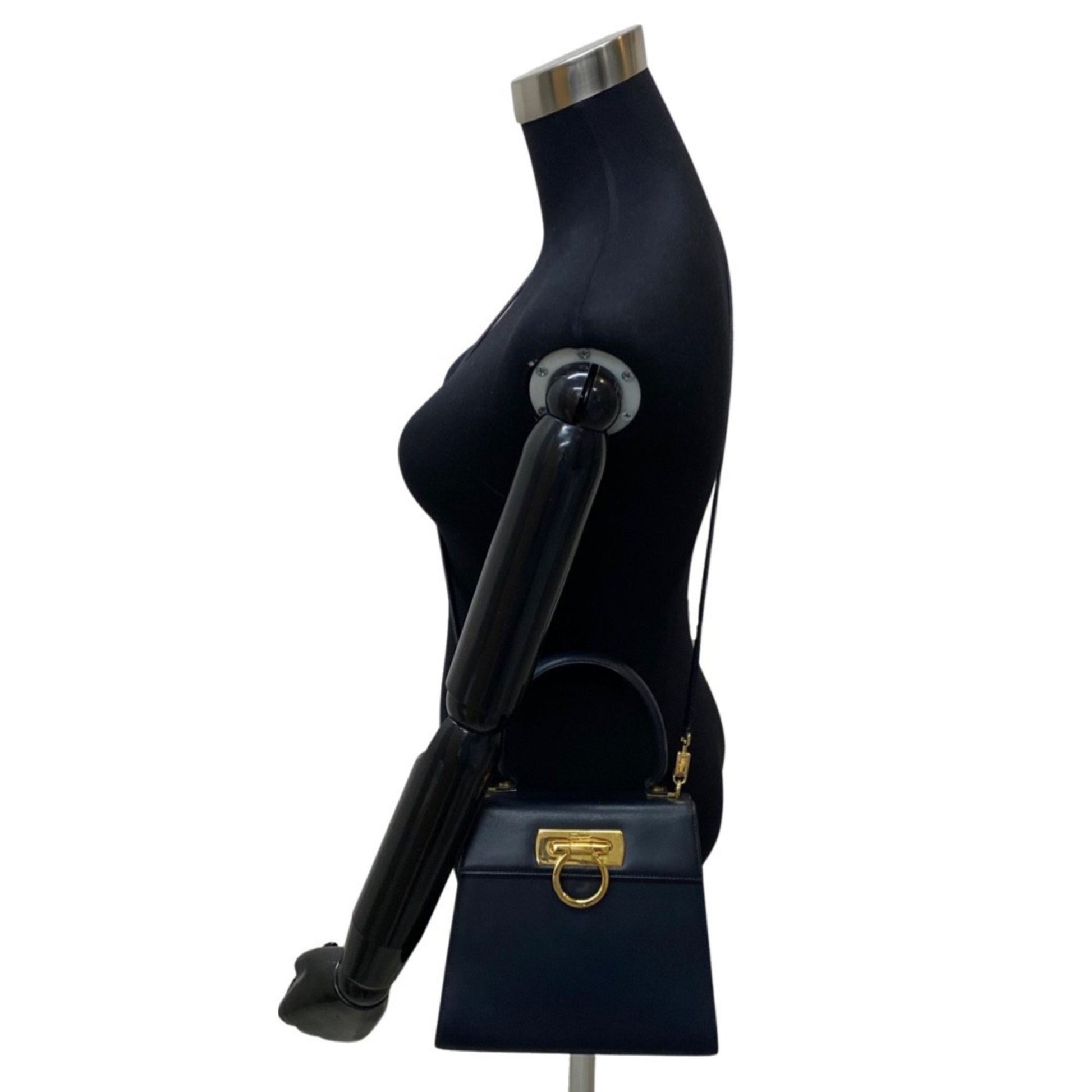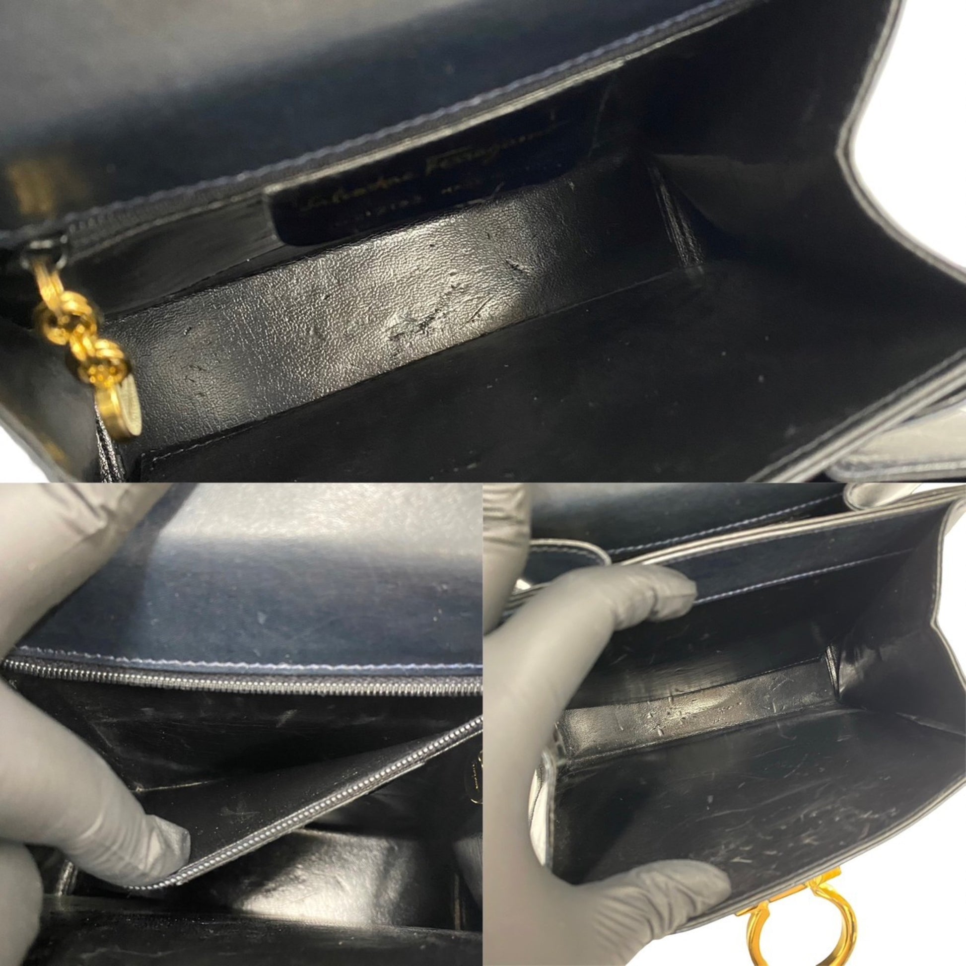 Salvatore Ferragamo Gancini Hardware Leather 2Way Shoulder Bag Handbag Navy