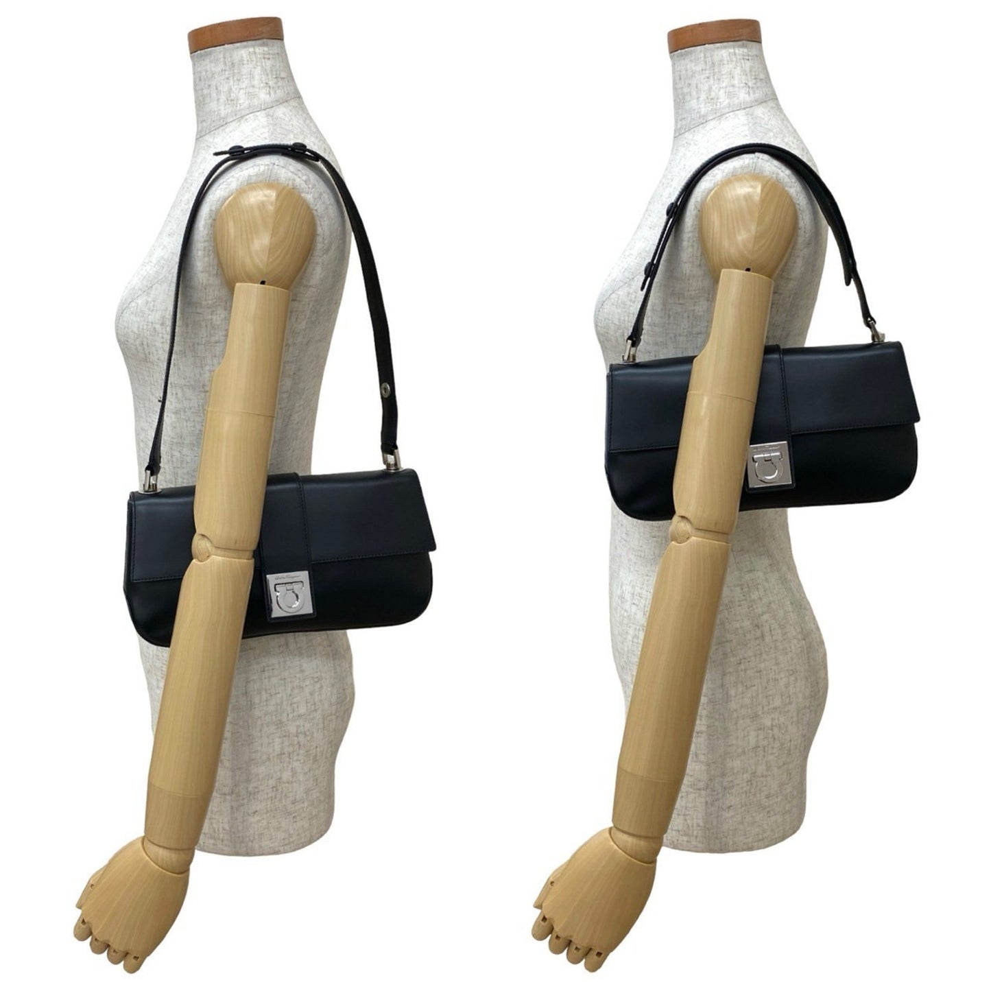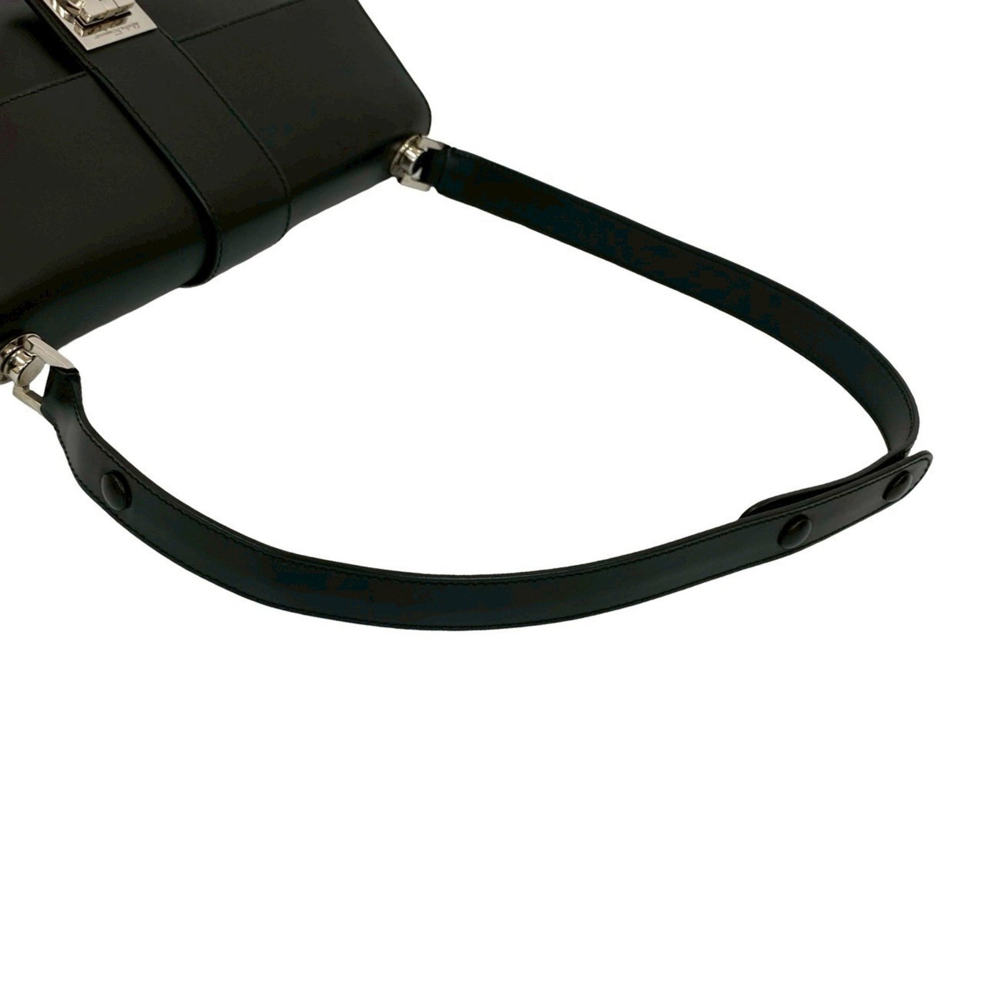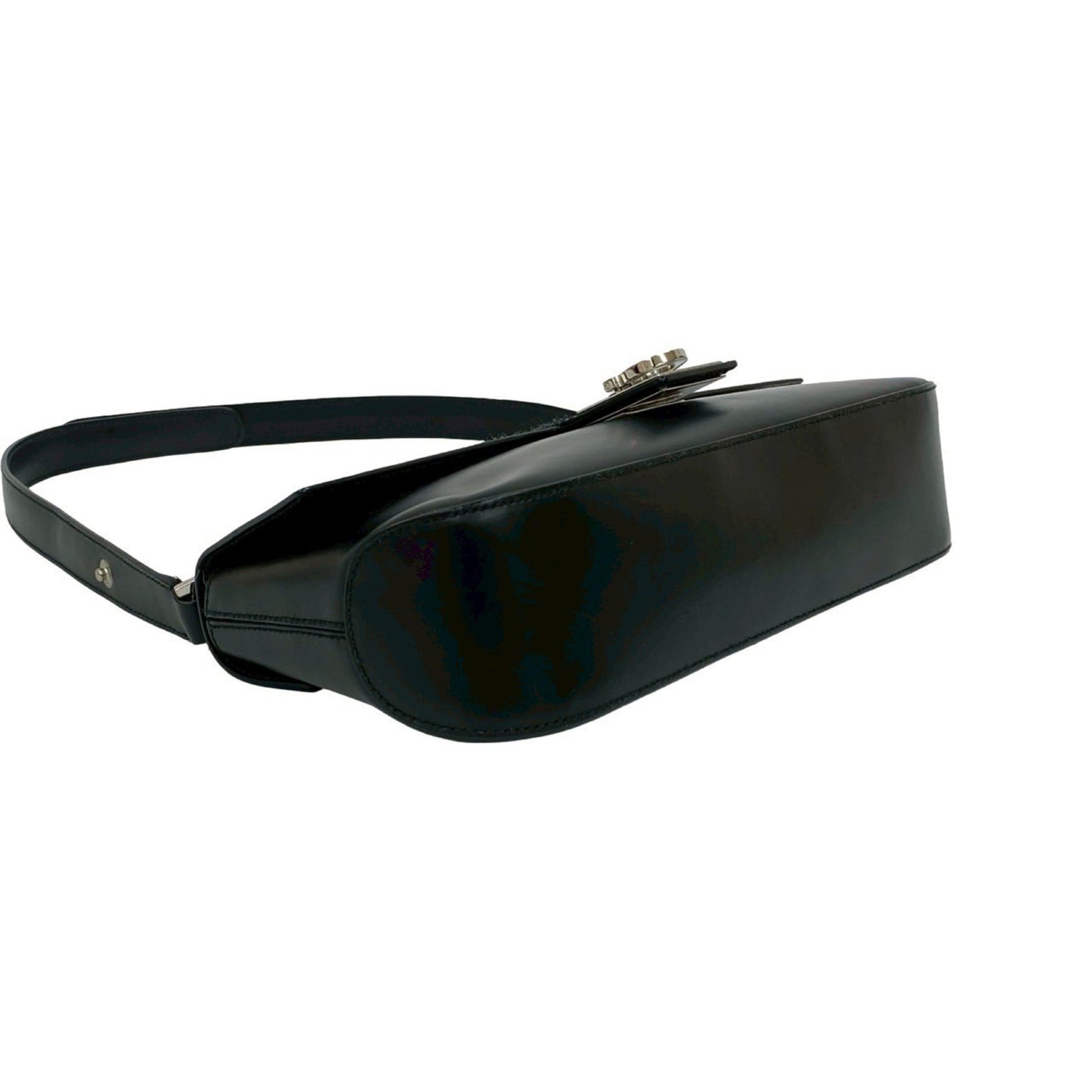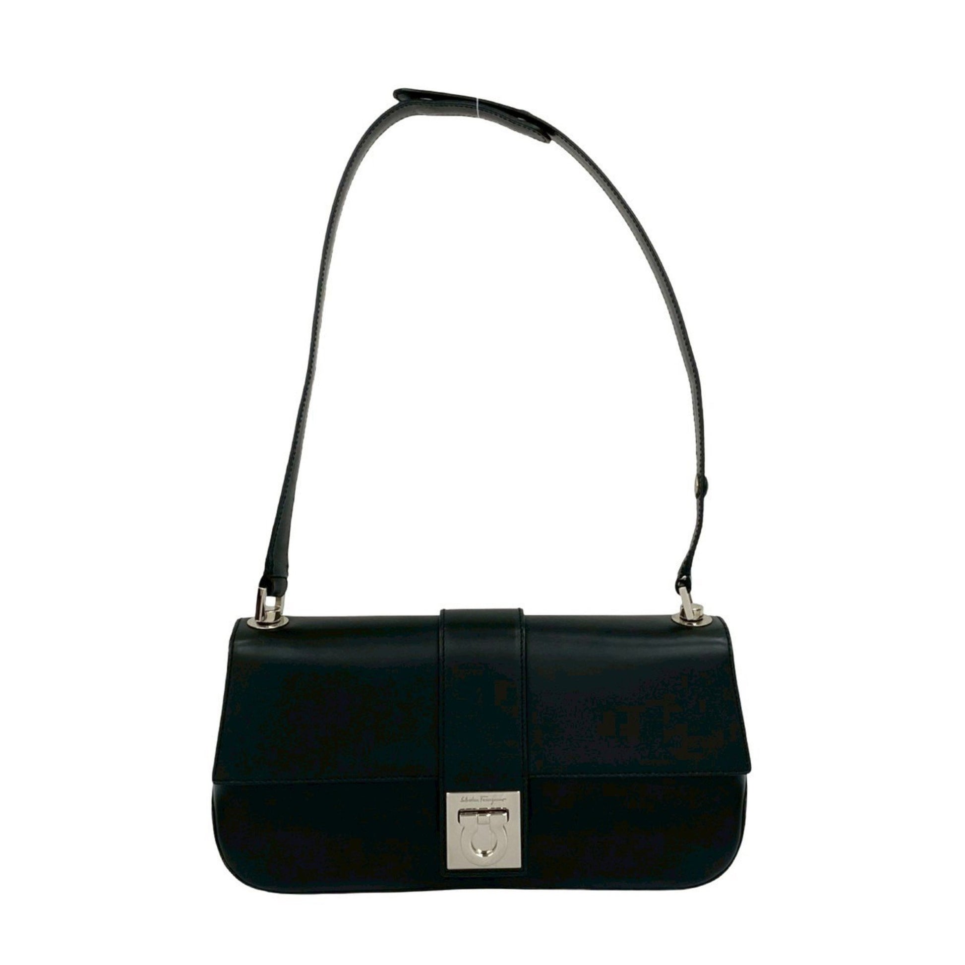 Salvatore Ferragamo Gancini Hardware Leather Semi-Shoulder Bag In Black