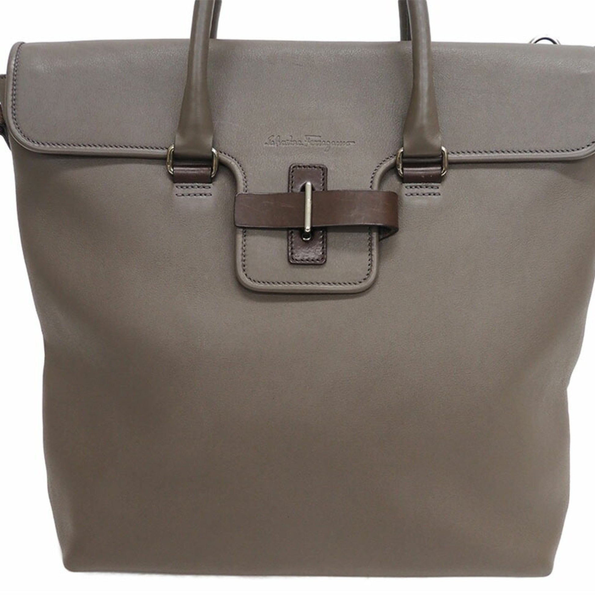 Salvatore Ferragamo Leather Large Tote Bag Greige Belt Flap