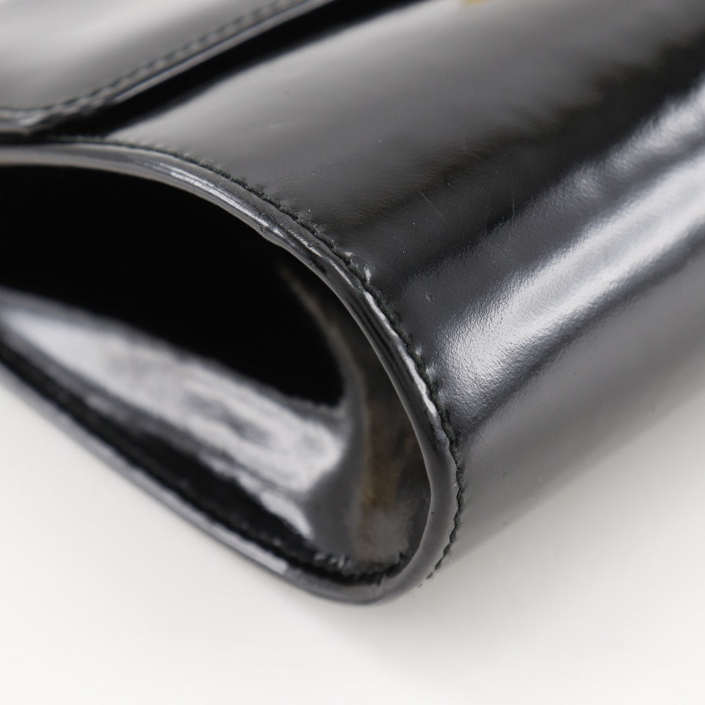 Salvatore Ferragamo Shoulder Bag Aq21-8752 Enamel Black 2-Way Clutch Gancini Chainshoulder Women