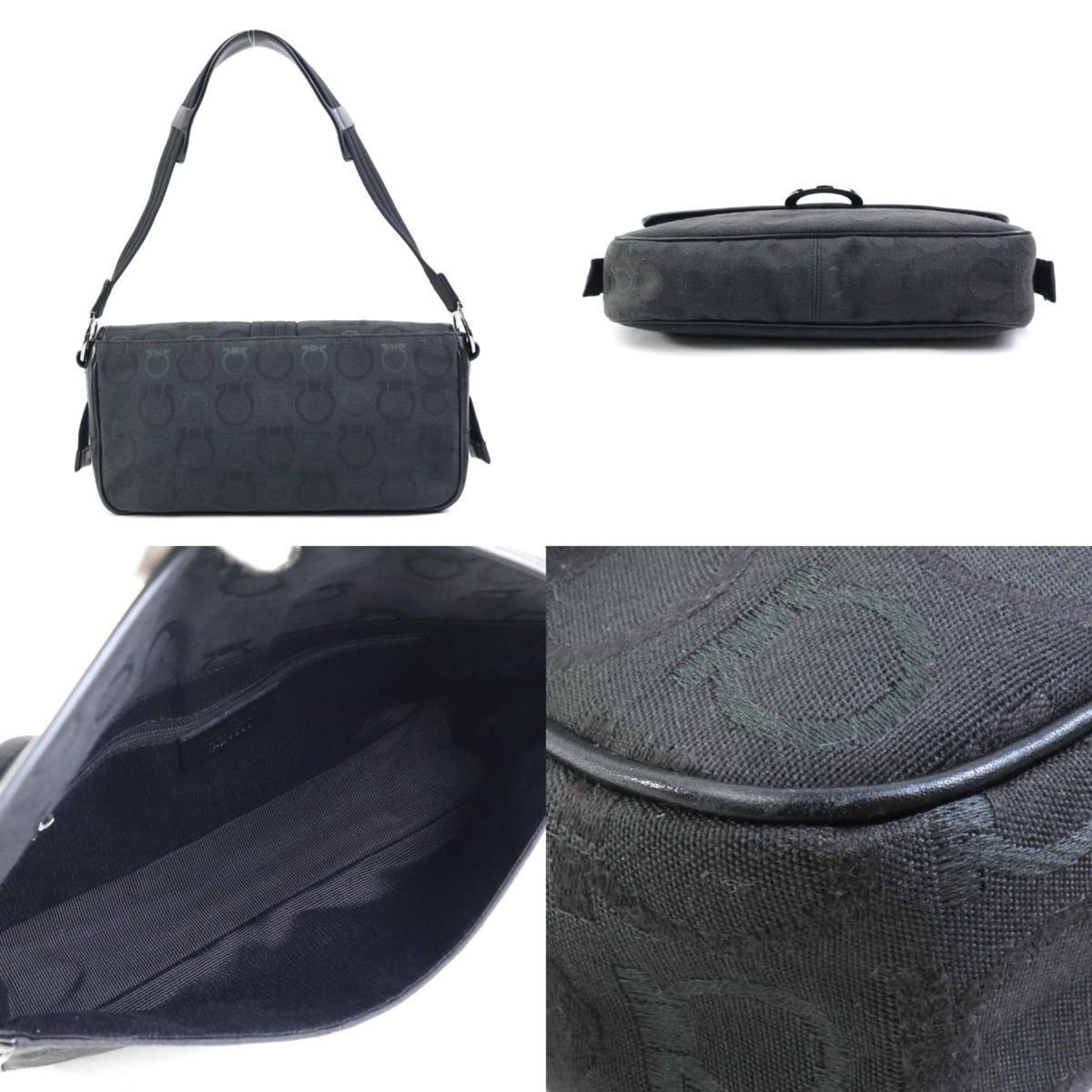Salvatore Ferragamo Shoulder Bag Gancini Canvas Black Silver