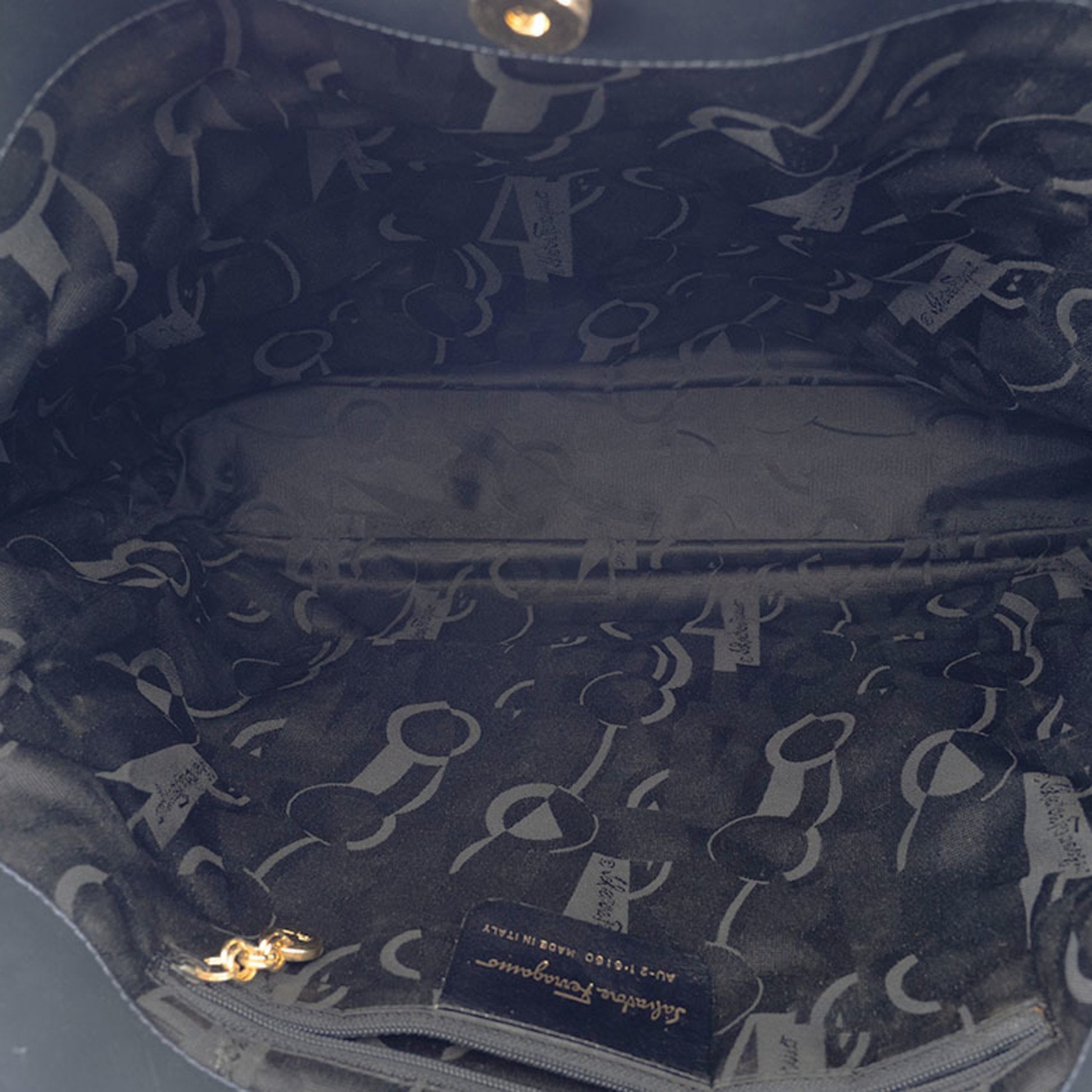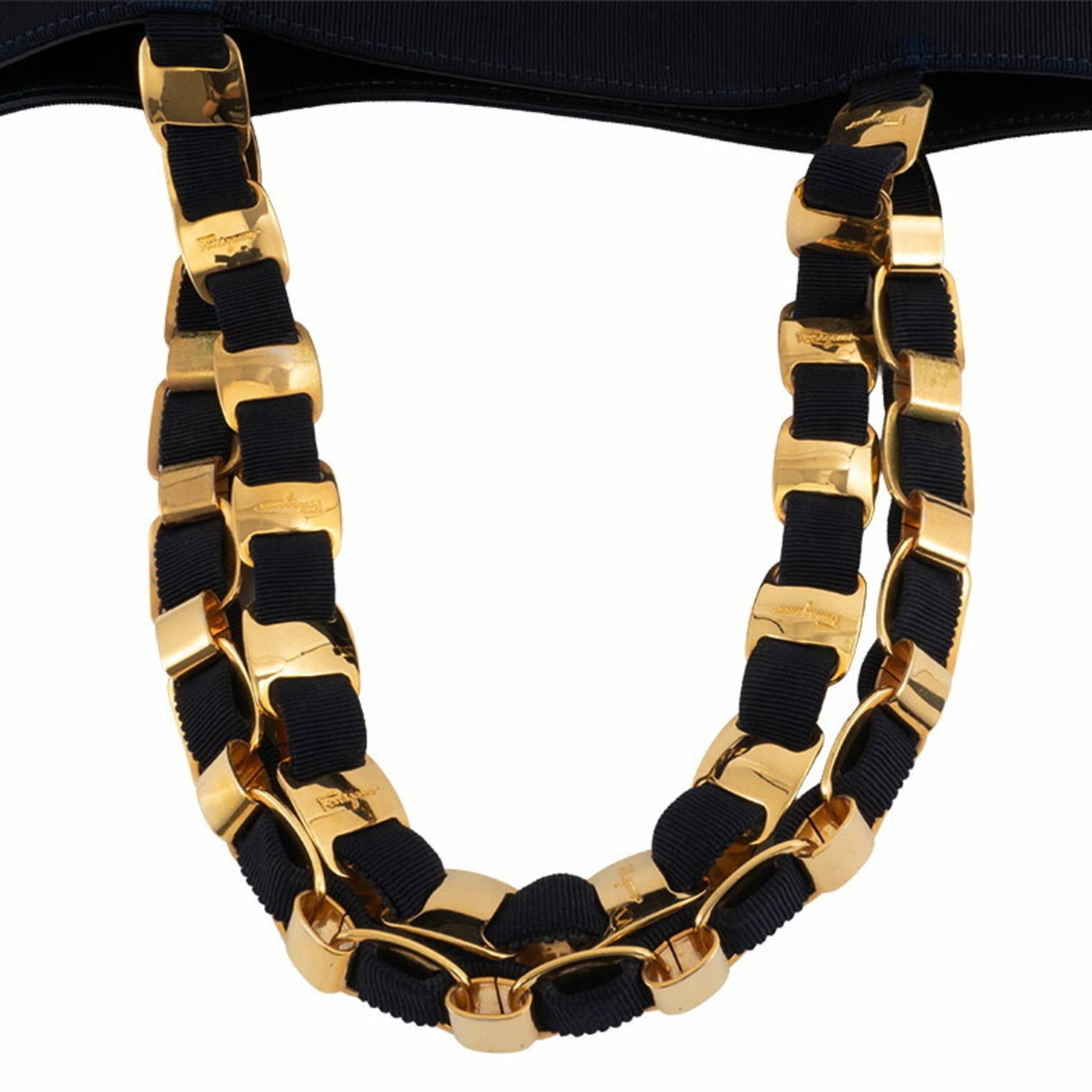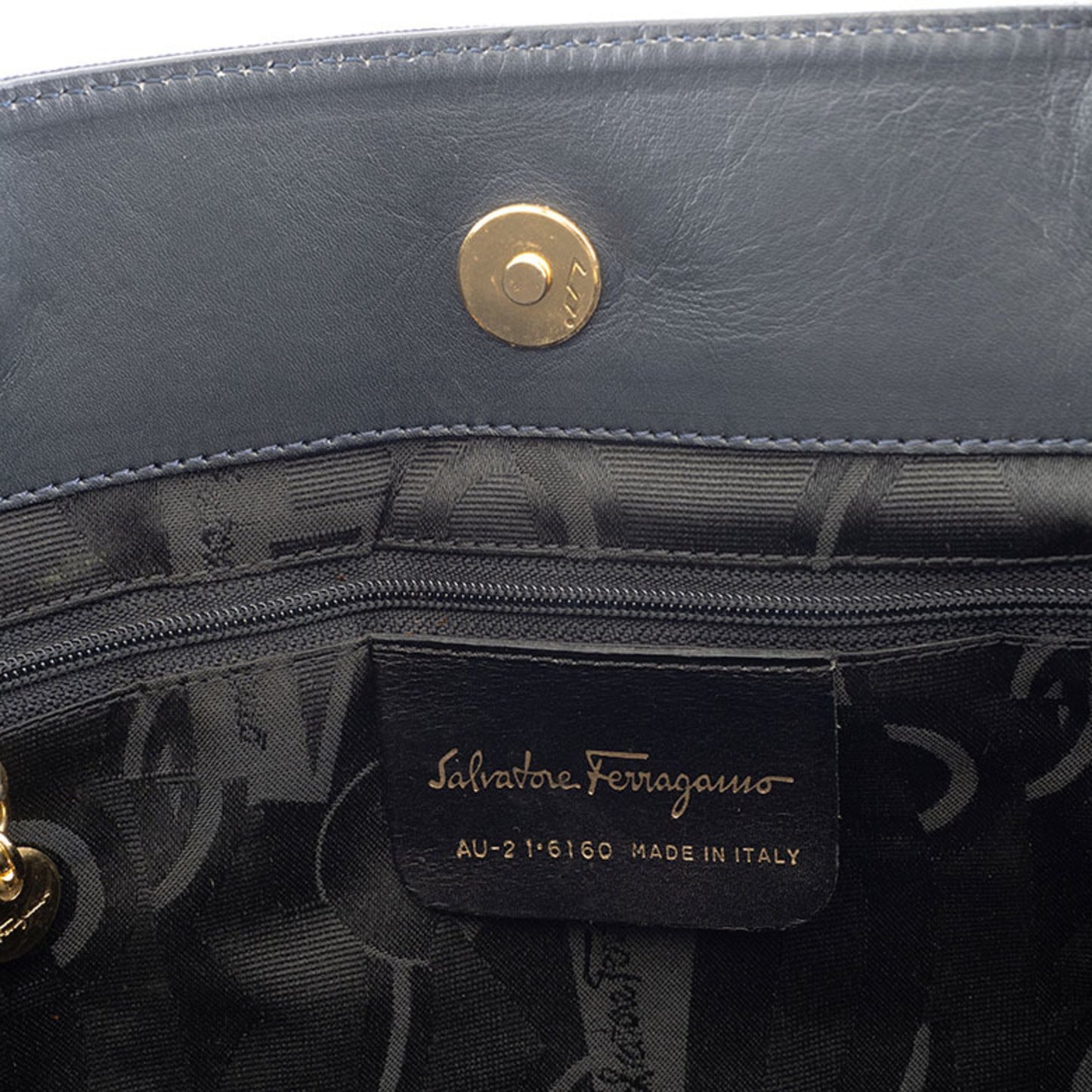 Salvatore Ferragamo Vara Nylon Tote Navy Bag Au-21 6160 Leather