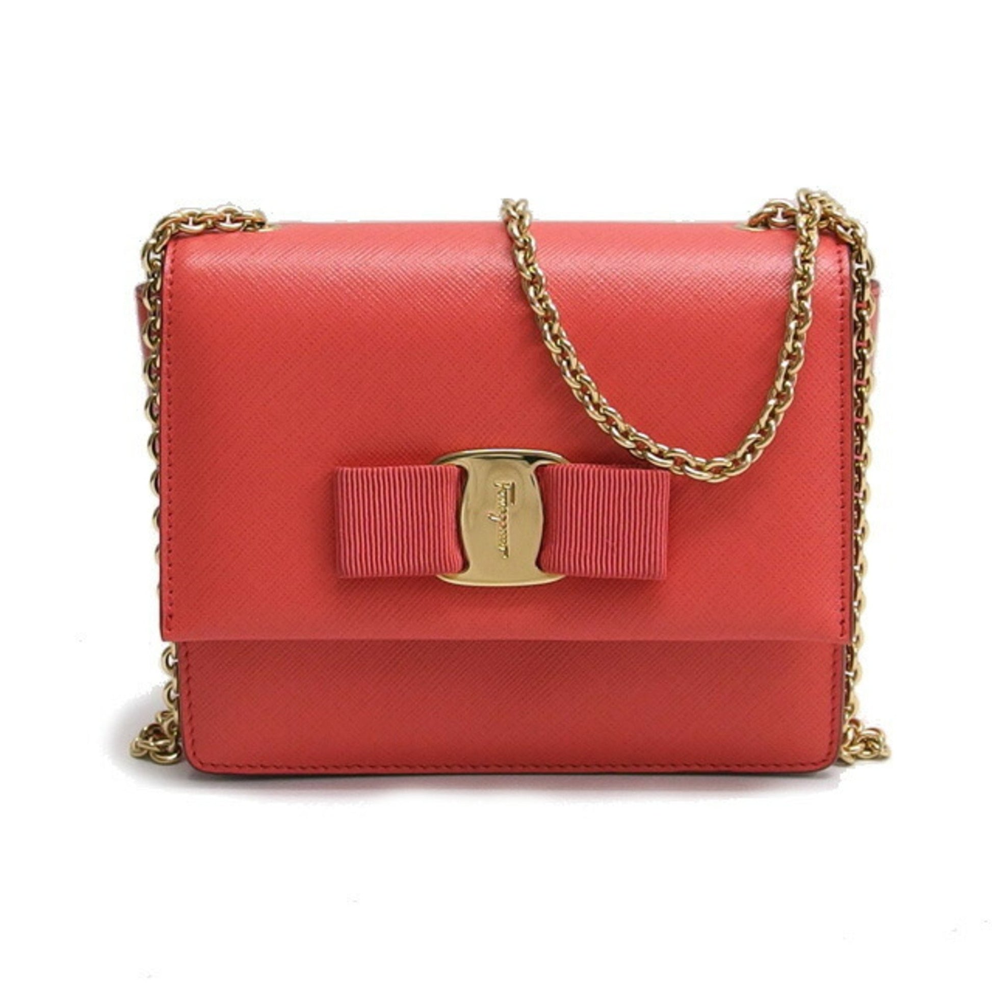 Salvatore Ferragamo Vara Ribbon Chain Shoulder Bag Coral