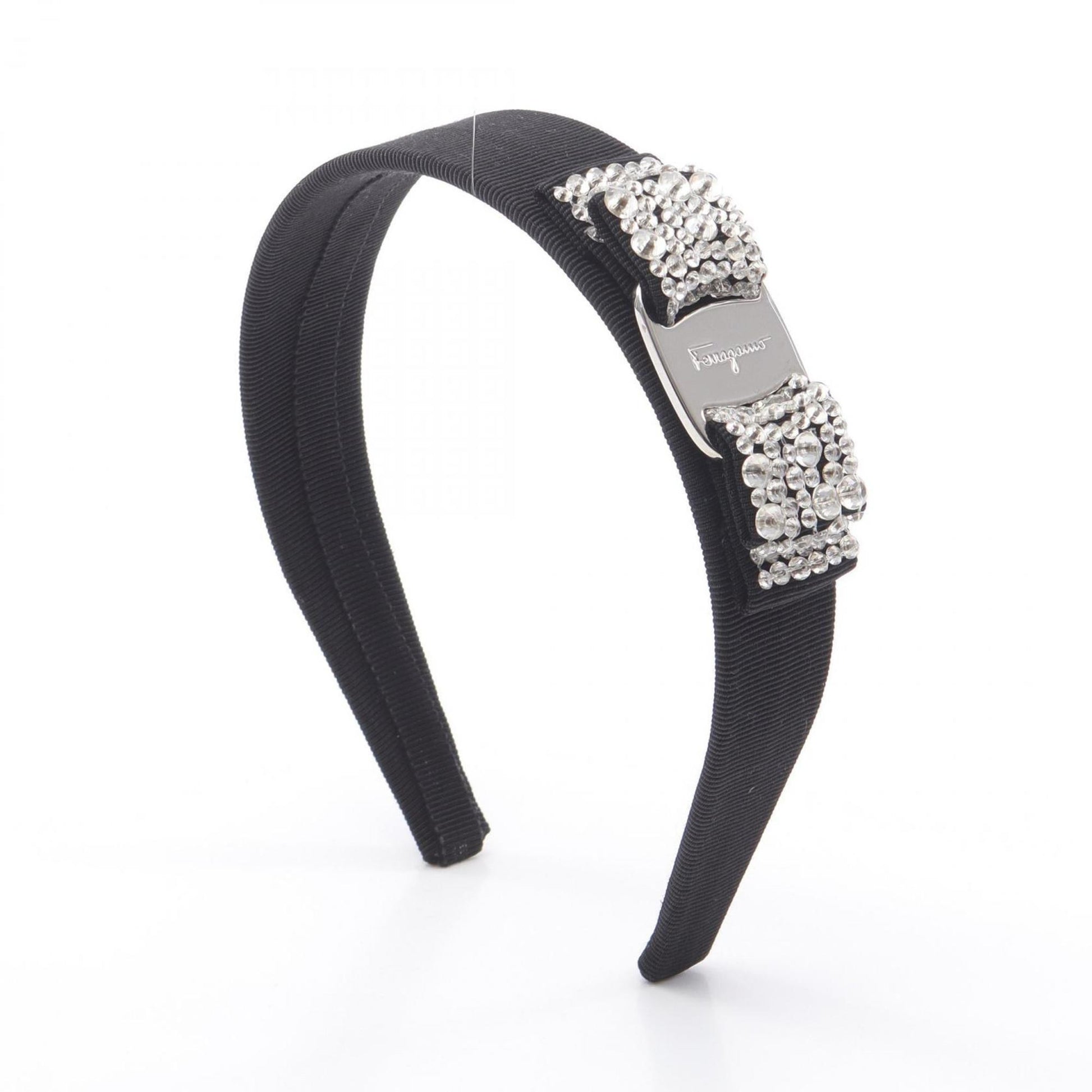 Salvatore Ferragamo Vara Ribbon Gp (Gold Plated) Fabric Rhinestone
