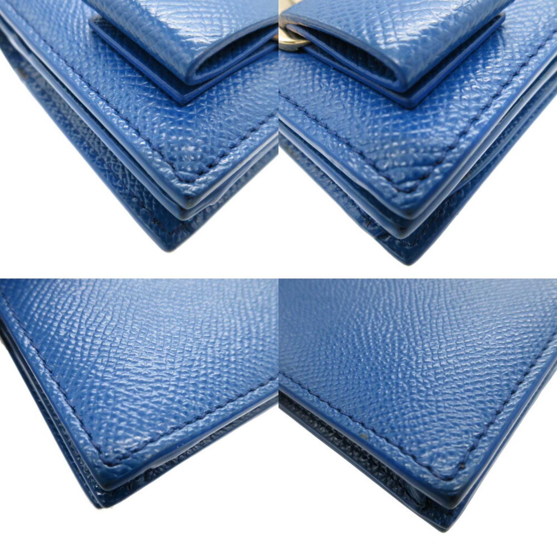 Salvatore Ferragamo Vara Ribbon Leather Blue Bi-Fold Wallet 2123Salvatore