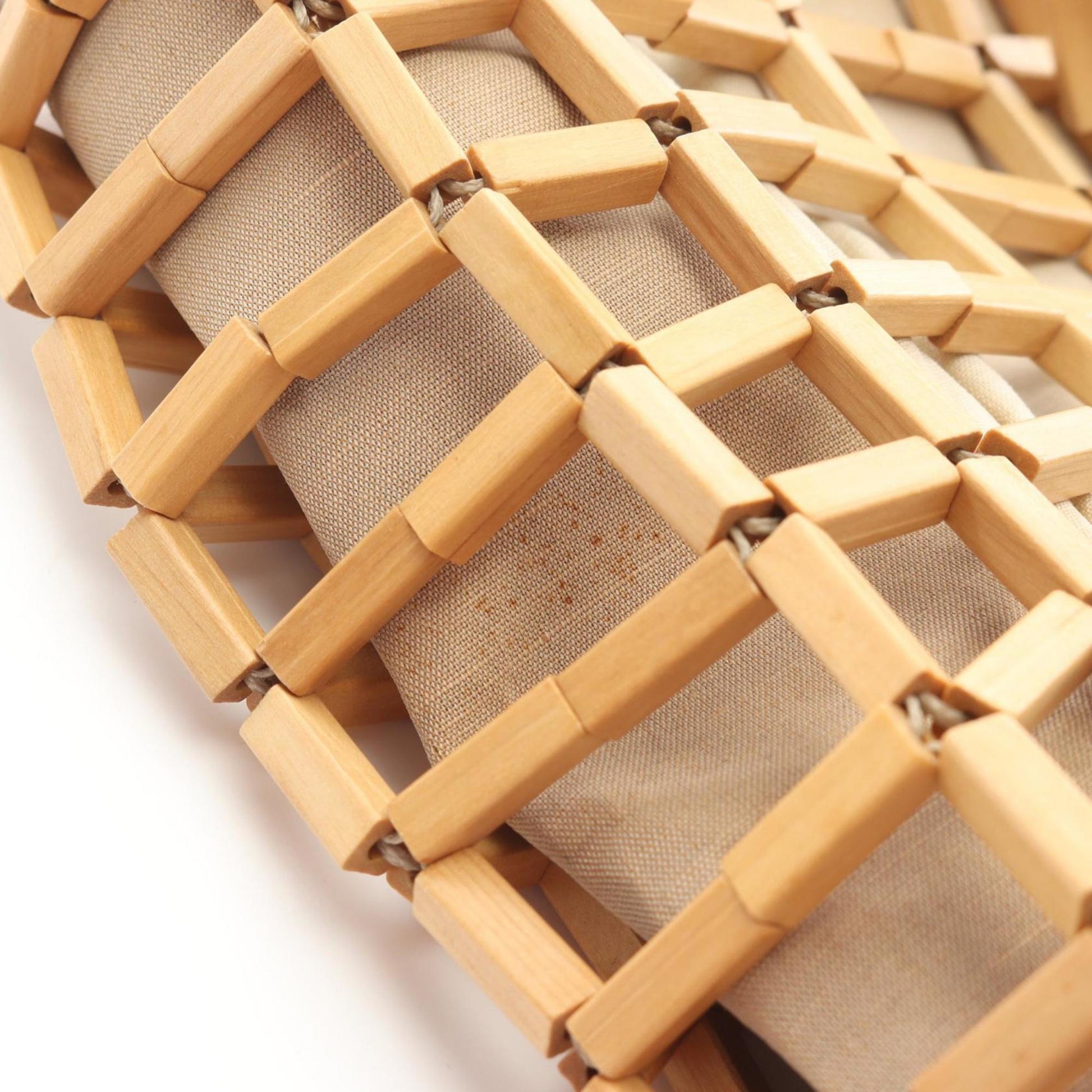 Salvatore Ferragamo Wood Mesh Drawstring Handbag Canvas