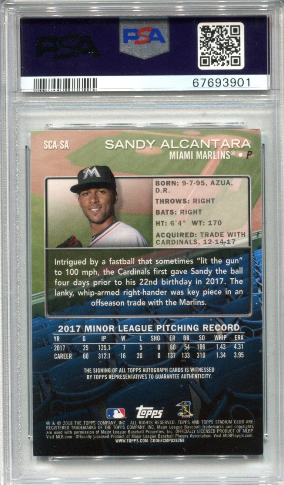Sandy Alcantara 2018 Topps Stadium Club #Scasa (Psa) Auth Auto 10 Card