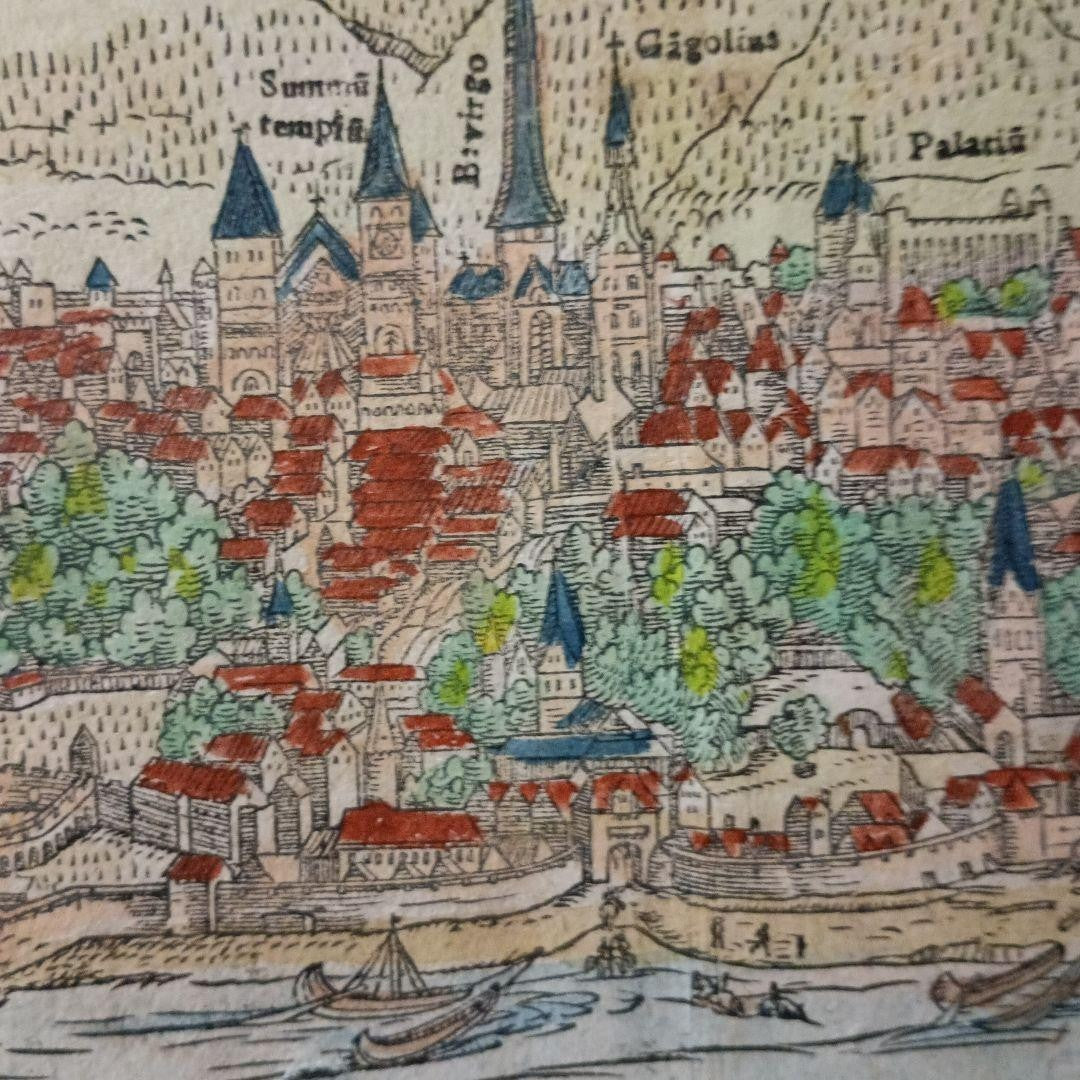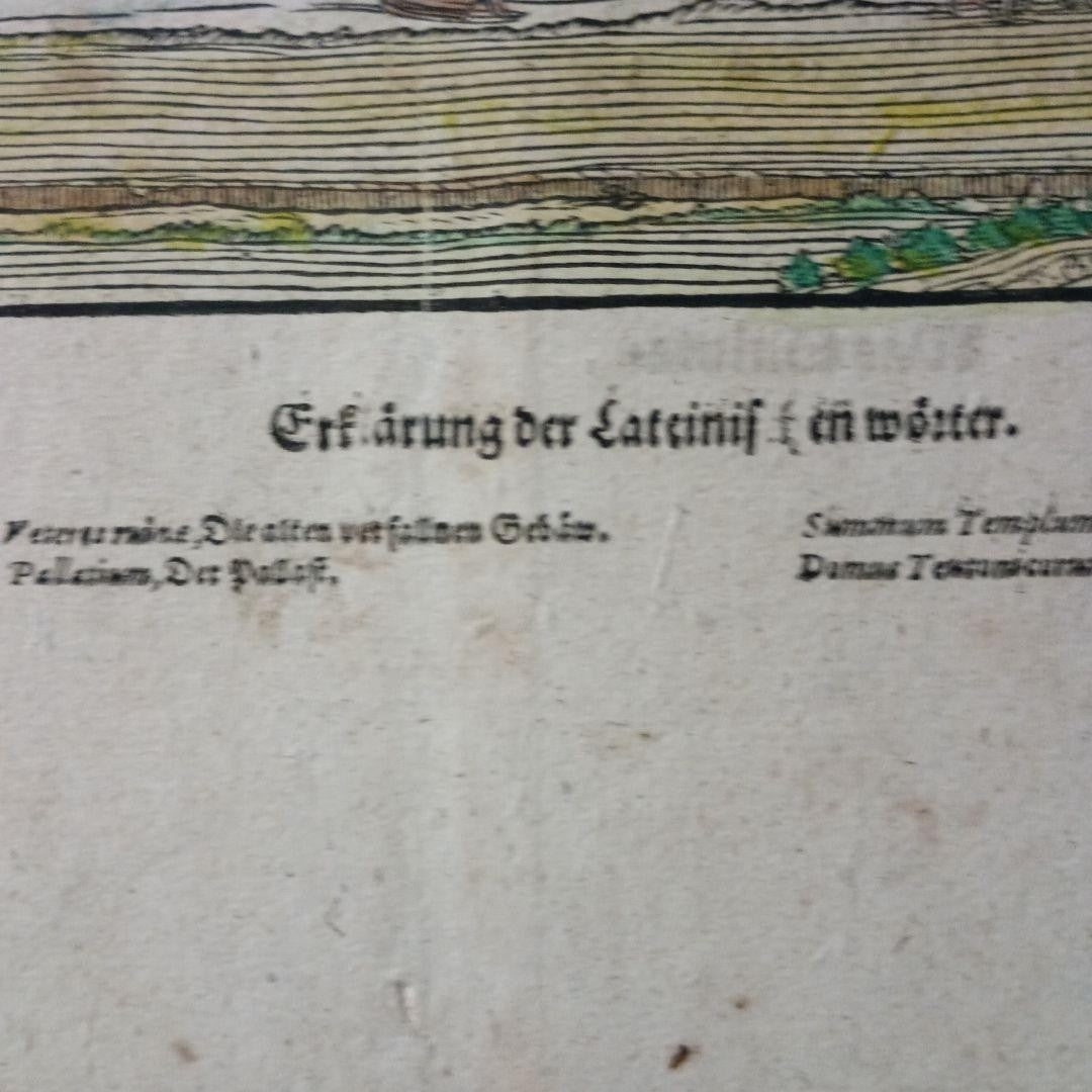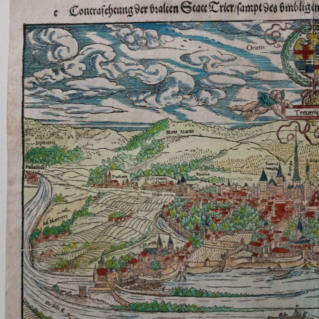 Sebastian Munster Trier Map 1598 Hand-Colored Woodcut Original Cosmographia