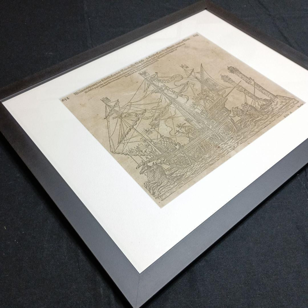 Sebastian Munster Woodcut 1628 Ship Of Emperor Charles V Rare Antique Print