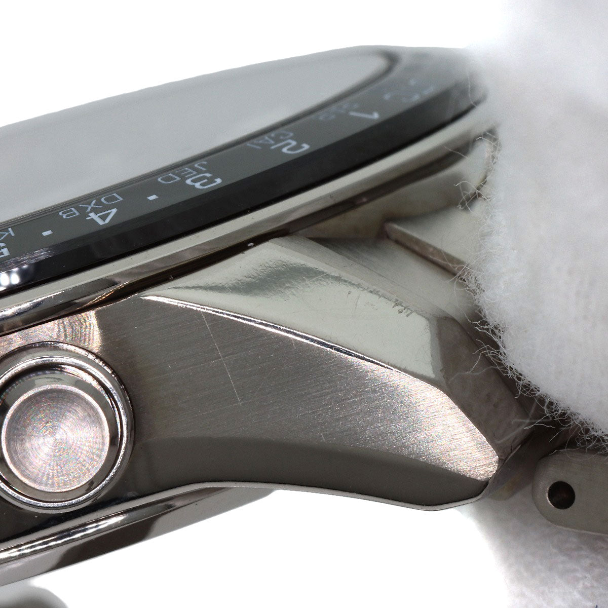 Condition: Condition Areas of damage: Case) Scratches/tarnish/Dent/Minor scratches/Discolors Bezel) Minor scratches/Scratches/Rubbed Band) stretching/Rubbed/Minor scratches/tarnish Crown) Minor scratches Clasp) Rubbed/tarnish/Minor scratches Back cover) Minor scratches Notes There are many scratches on the edges and center of the glass coating.