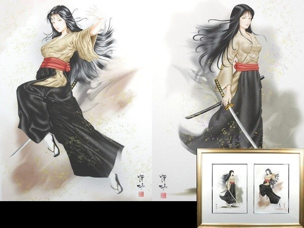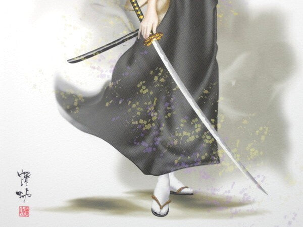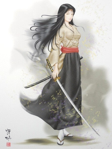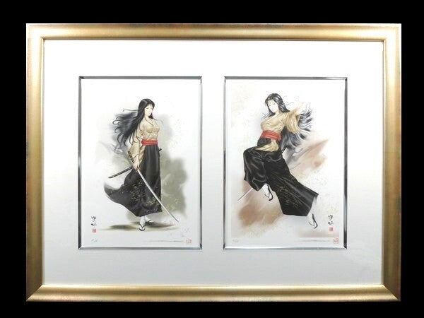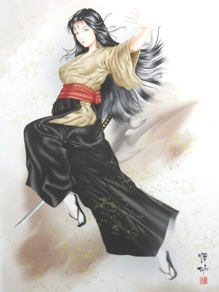 Senko Takahashi "Swordswoman" Signed Original Print Framed Japanese Beauty