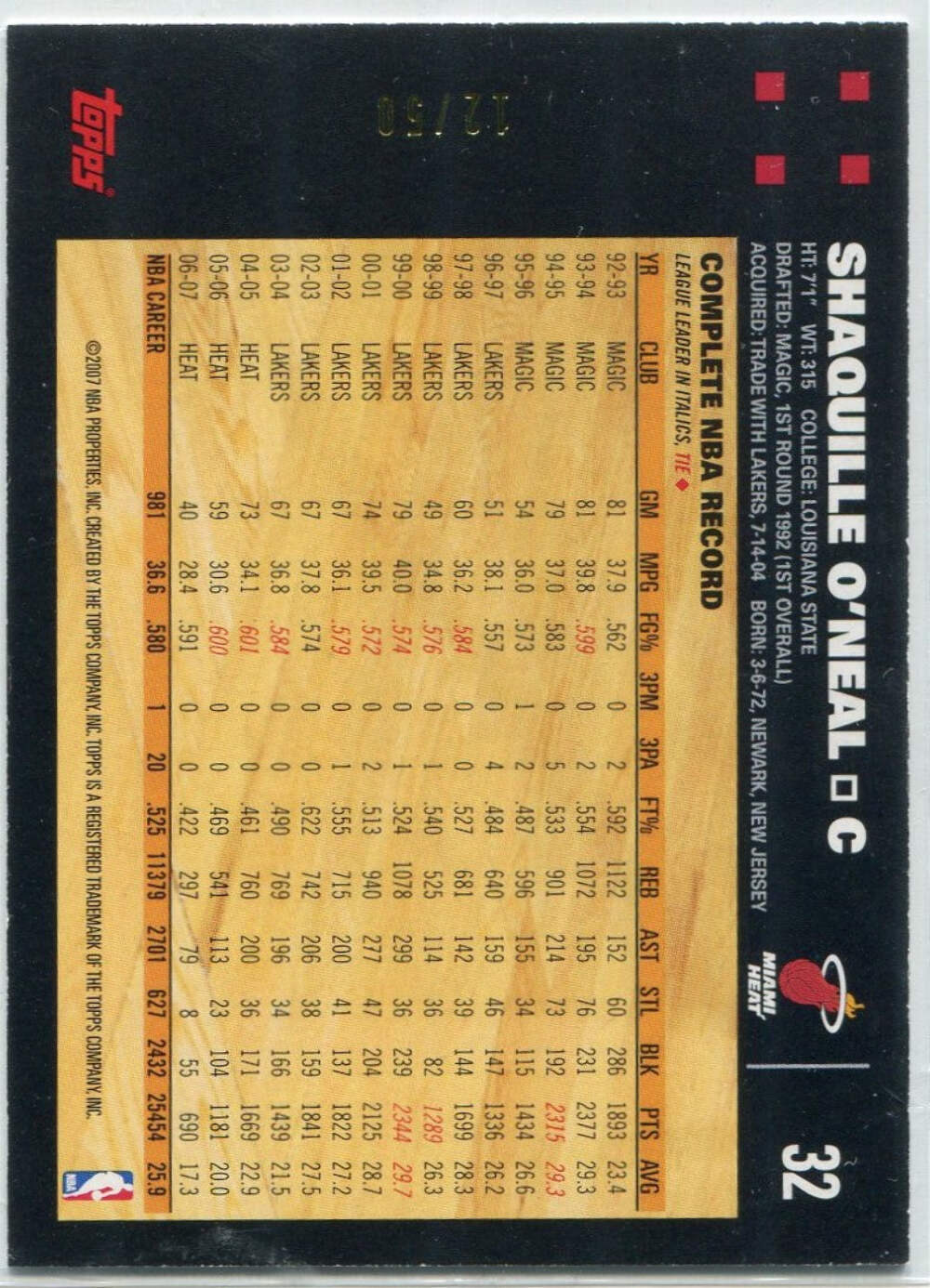 Shaquille O'Neal 2007 - 2008 Topps 50Th Anniversary Copper Parallel Card #32 12/