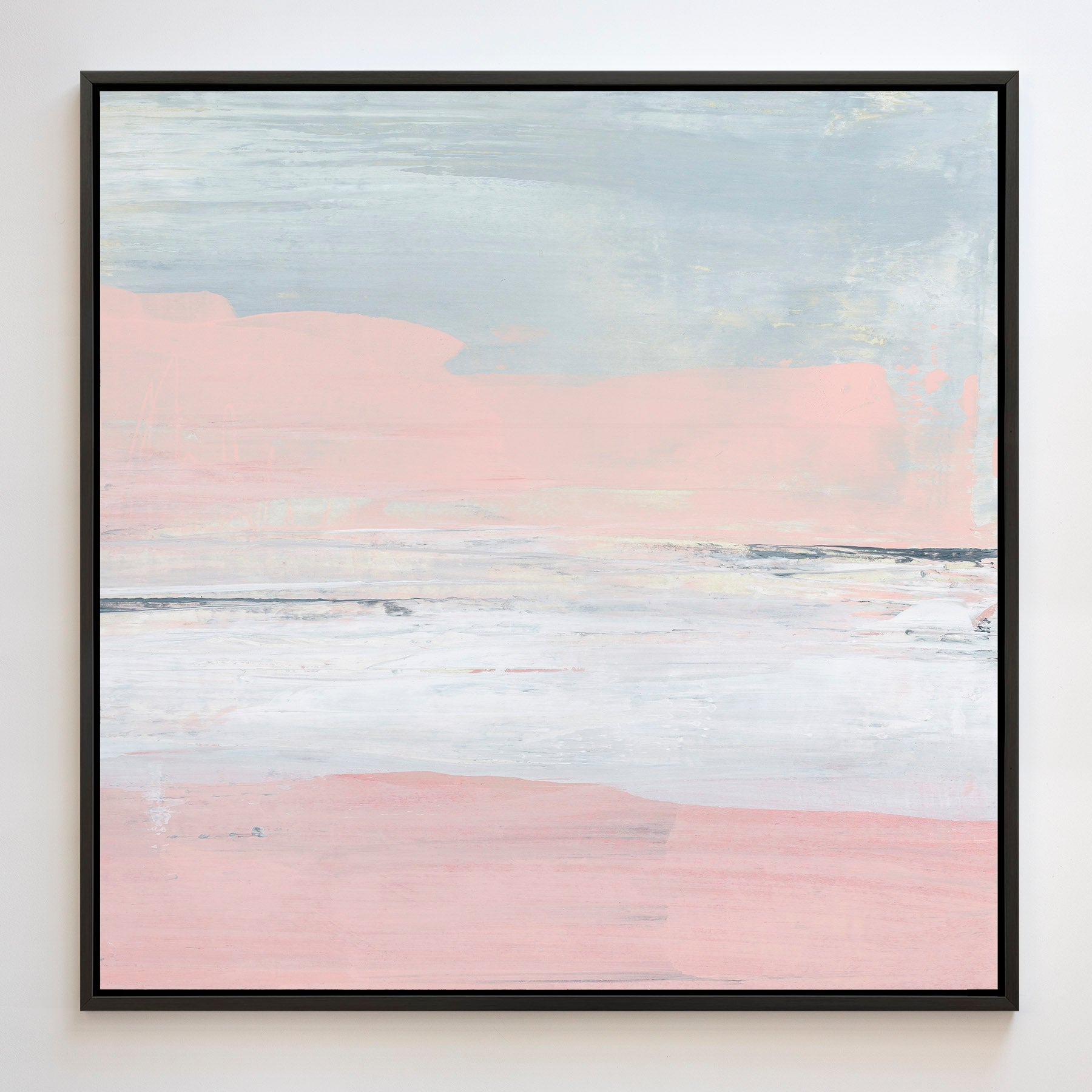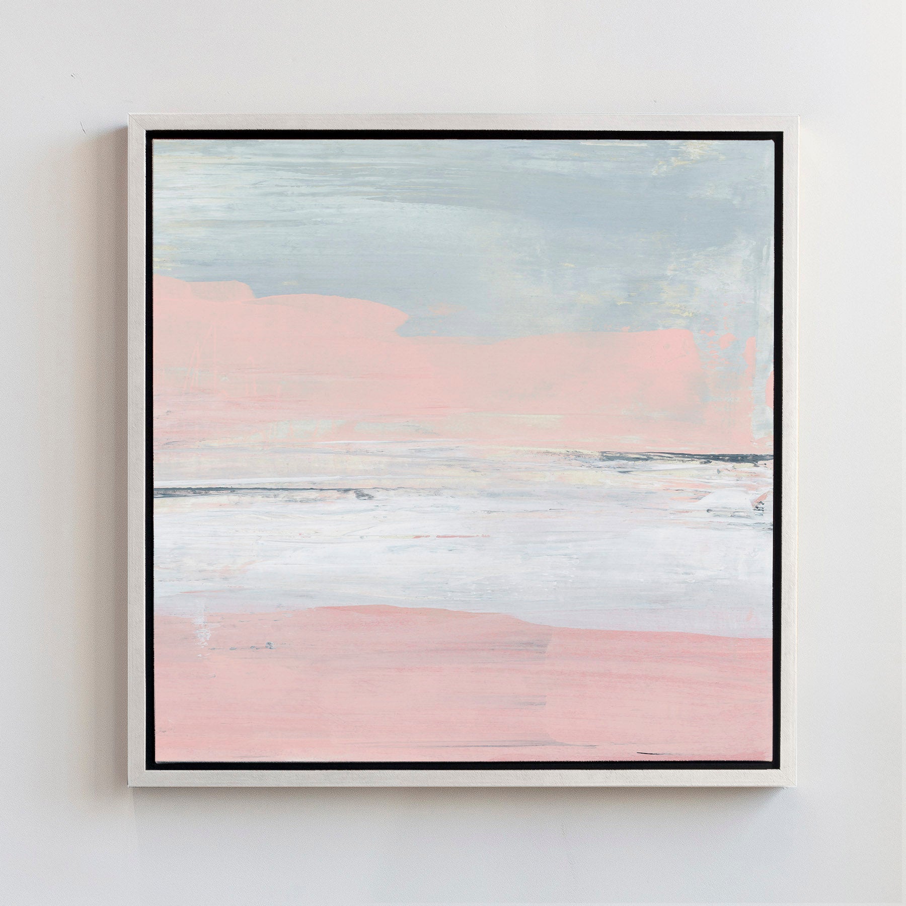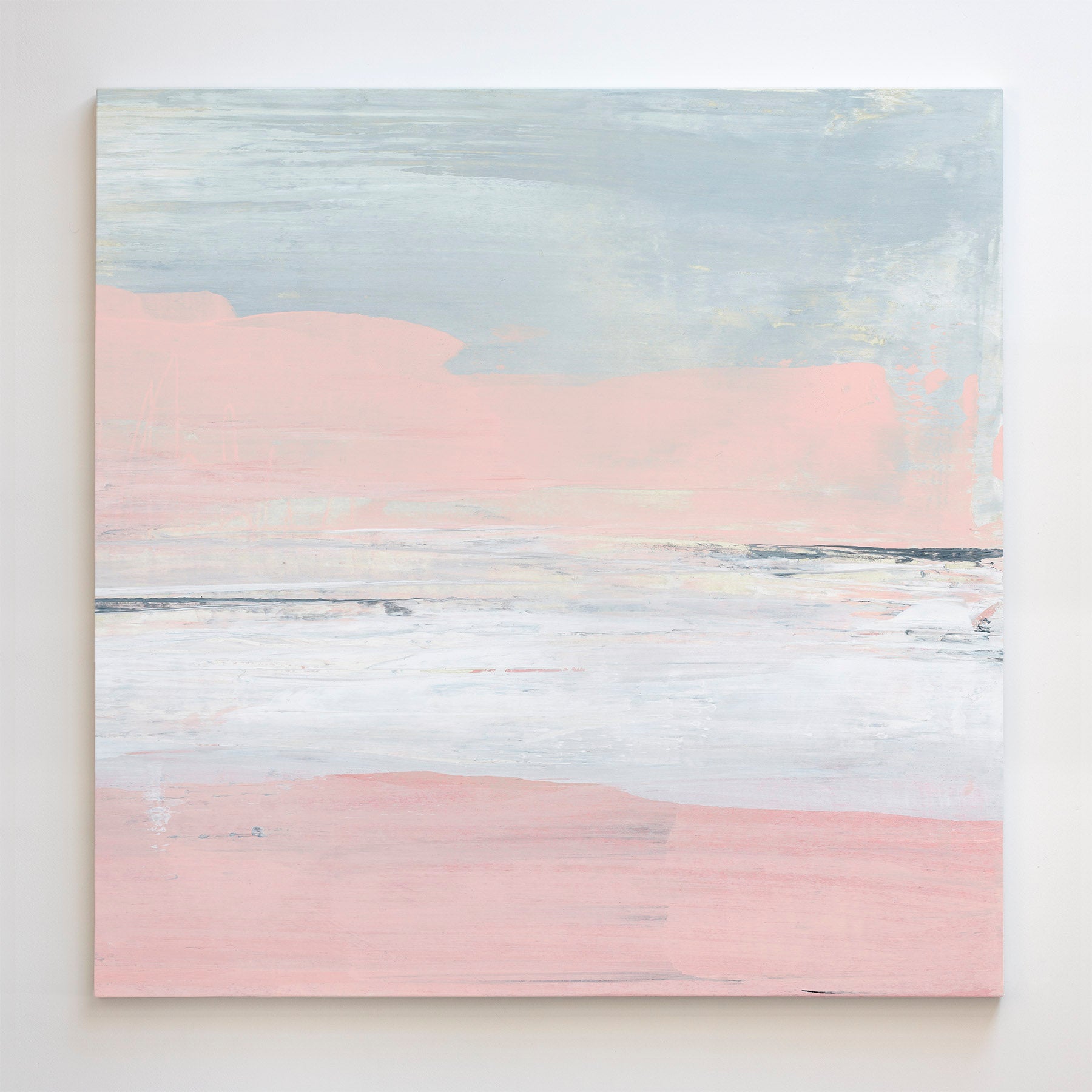 Pause for a moment. Imagine the coast, maybe a view just off the the bluffs. This is your escape into Silence, an abstracted landscape with softcolortones of pink,blush, gray and white.