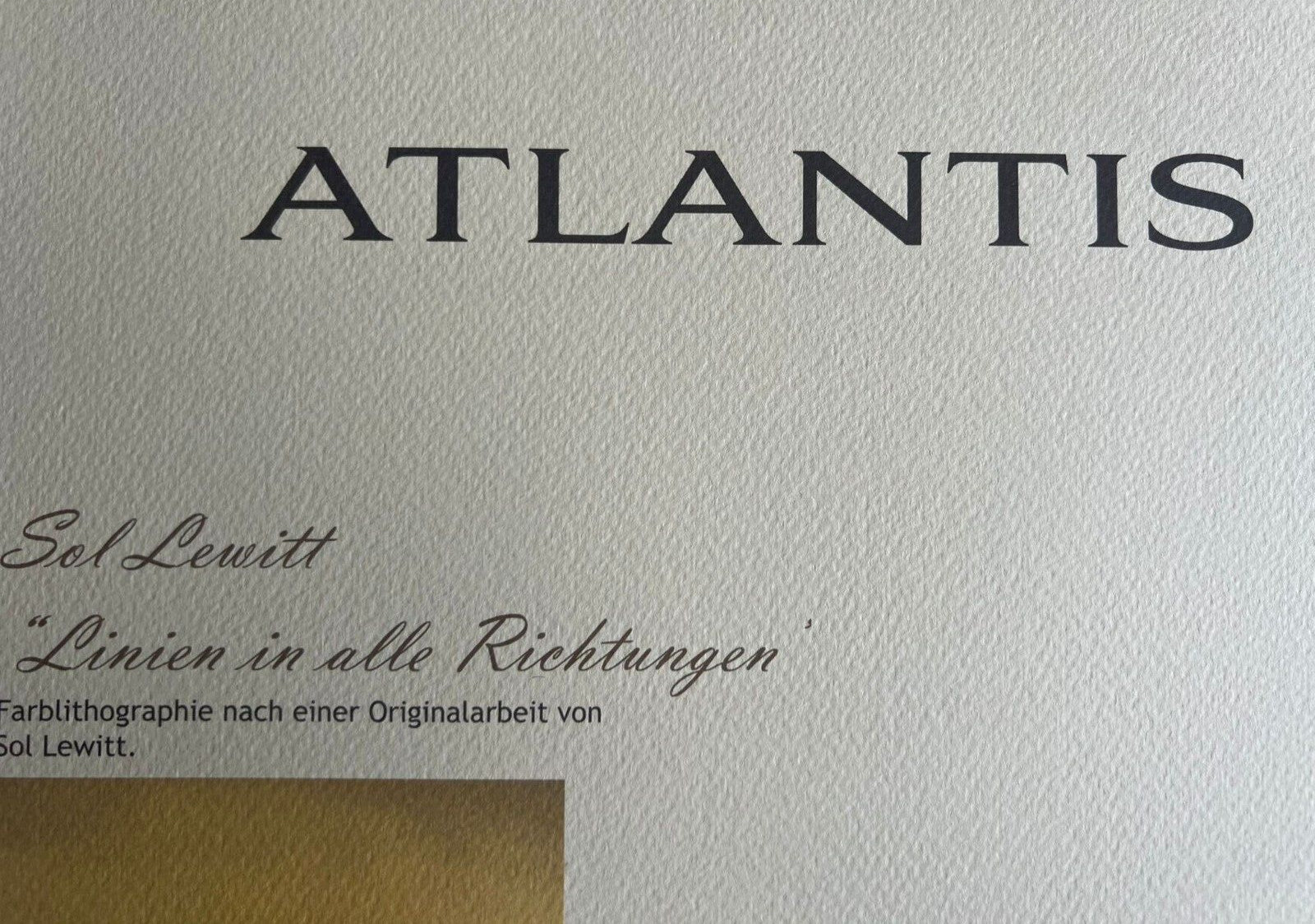 Sol Lewitt Lithograph COA Hand Numbered Signed O.P. Stamp Sol Lewitt "THE Ineem in all directions Chromolithography printed in 1998 in 180 specimens by Atlantis Verlag, Freiburg 32 x 32 cm Signature Sol Lewitt on the slab Dry and authentic stamp of the publishing house Atlantis Kunst Verlag Freiburg Sol Lewitt "THEIneem in all directions Chromolithography printed in 1998 in 180 specimens by Atlantis Verlag, Freiburg 32 x 32 cm Signature Sol Lewitt on the slab Dry and authentic stamp of the publishing house Atlantis Kunst Verlag Freiburg