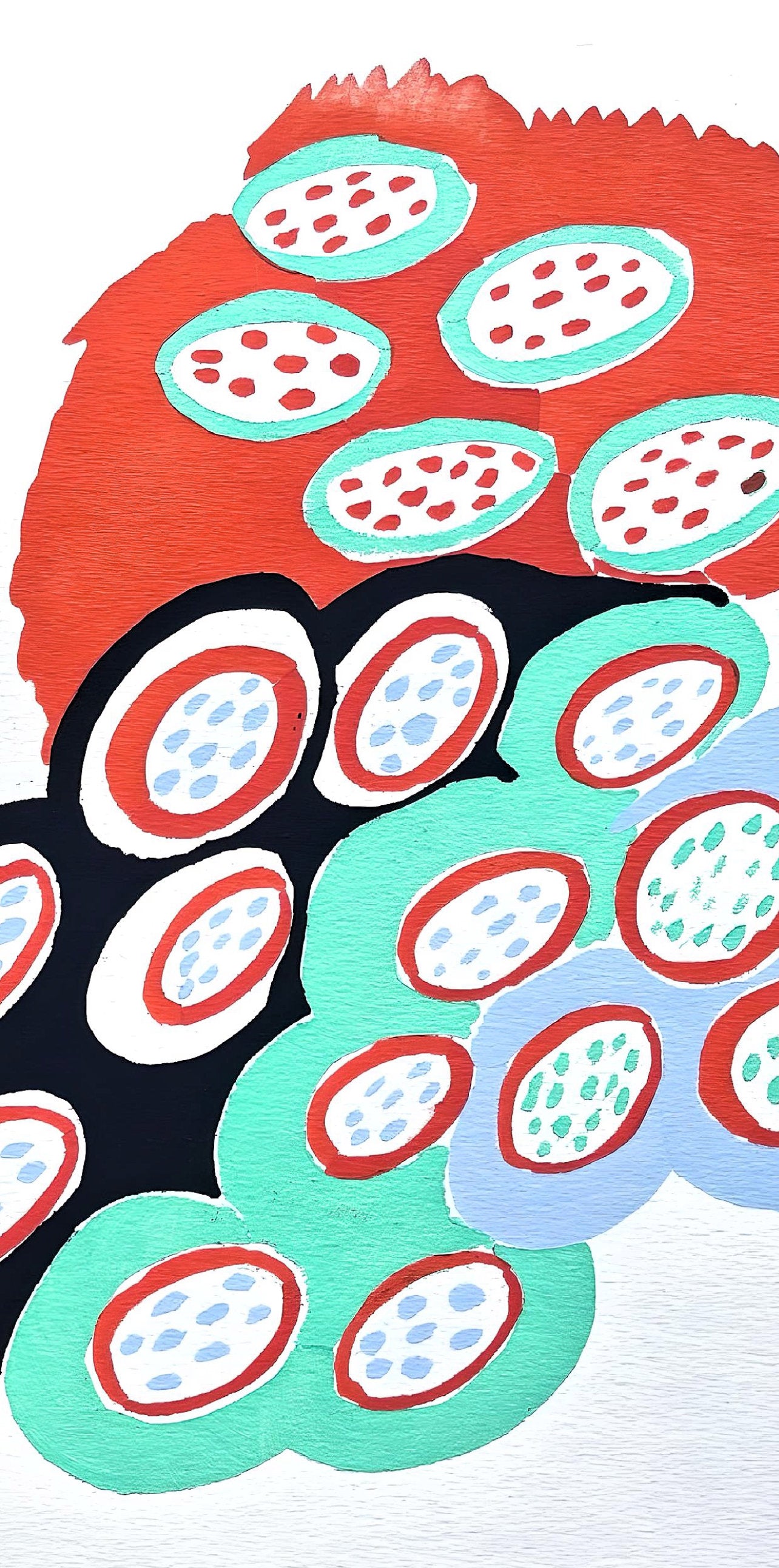 Colour stencil with dense gouache inks on vlin paper.