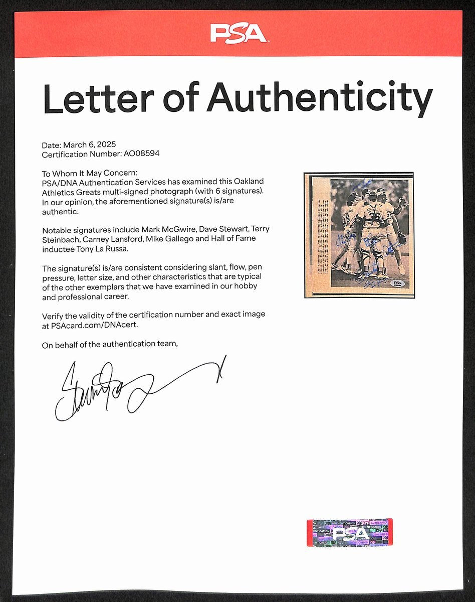 Stewart No Hitter Multi Signed (6) 1990 6X8 Wire Photo A'S Mcgwire Psa 196034
