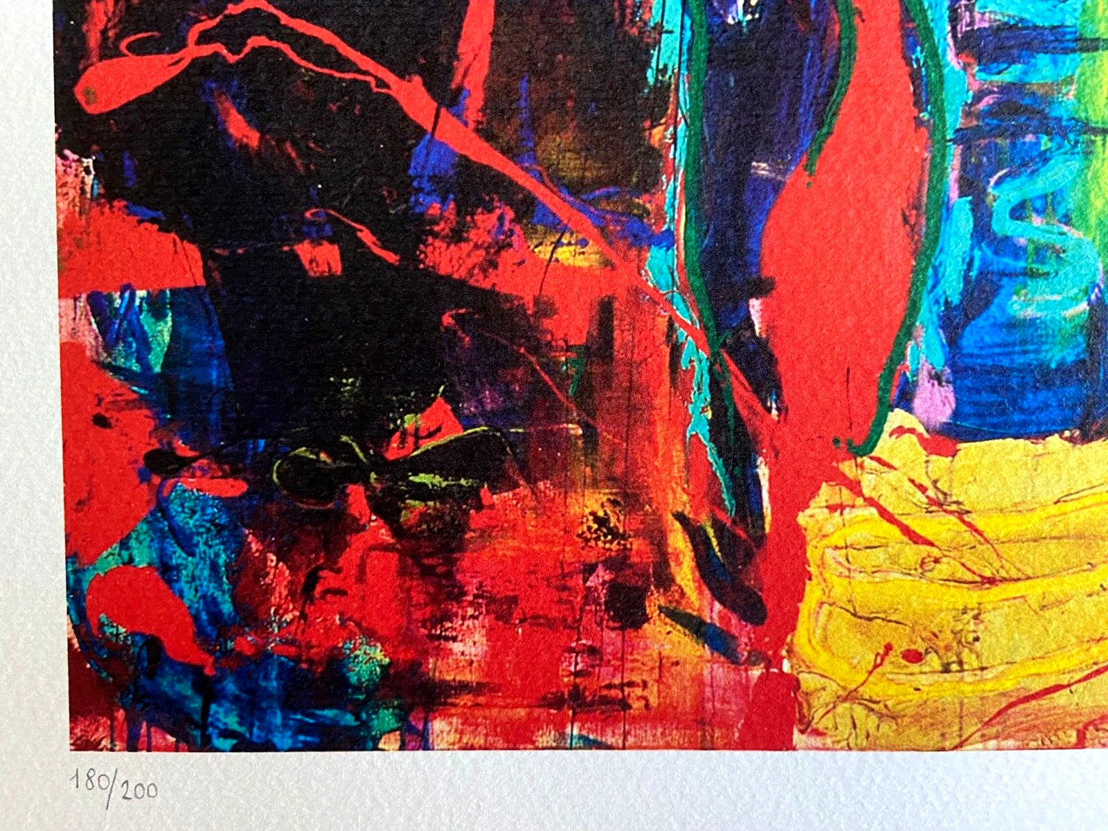 Sylvester Stallone 'Michael Jackson' Lithograph (Pierce Brosnan Johnny Depp) Sylvester Stallone '' Michael JACKSON " Lithograph of an work by Sylvester Stallone Signature Sylvester Stallone on the slab. The work measures 32 x 38 cm 200 hand numbered specimens The progressive number could be different from the published one. Private Collection Courtesy of the Artist Before playing Rocky Balboa, Sylvester Stallone painted him : The macho, the tough, the man who is not......