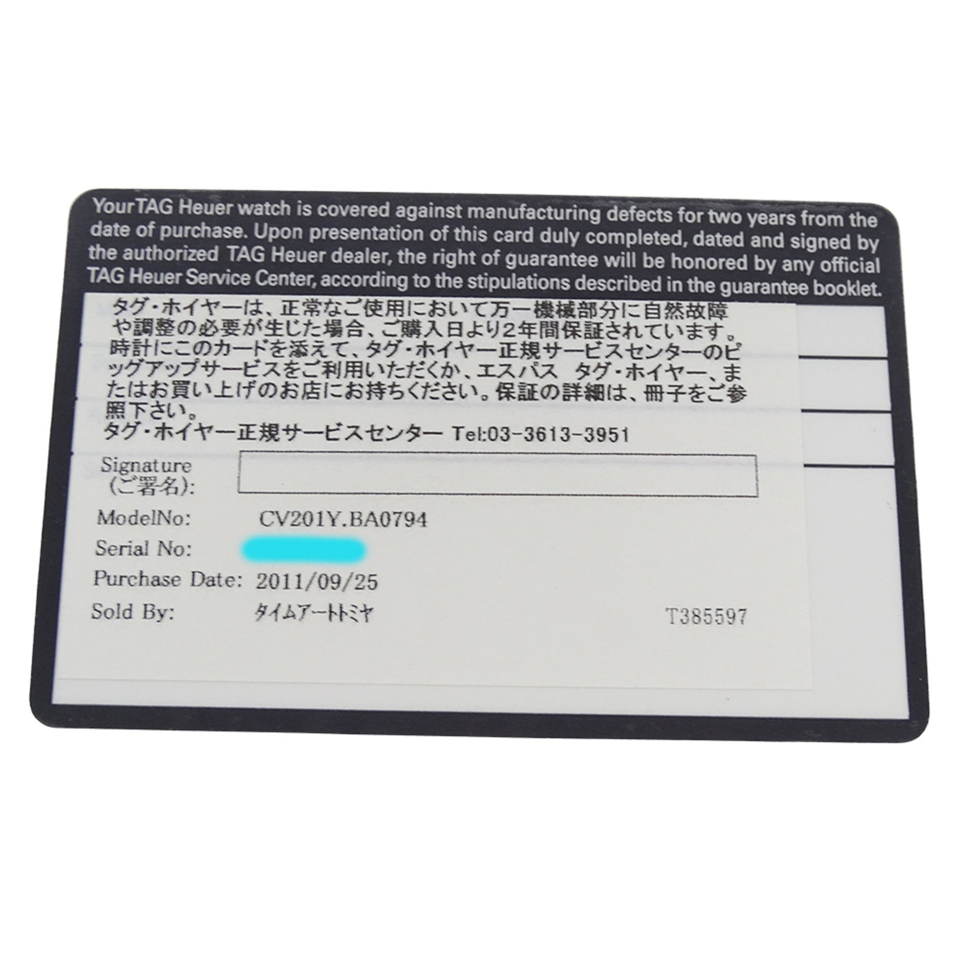 Tag Heuer Carrera Cv201Y Ba0794 Men'S Watch