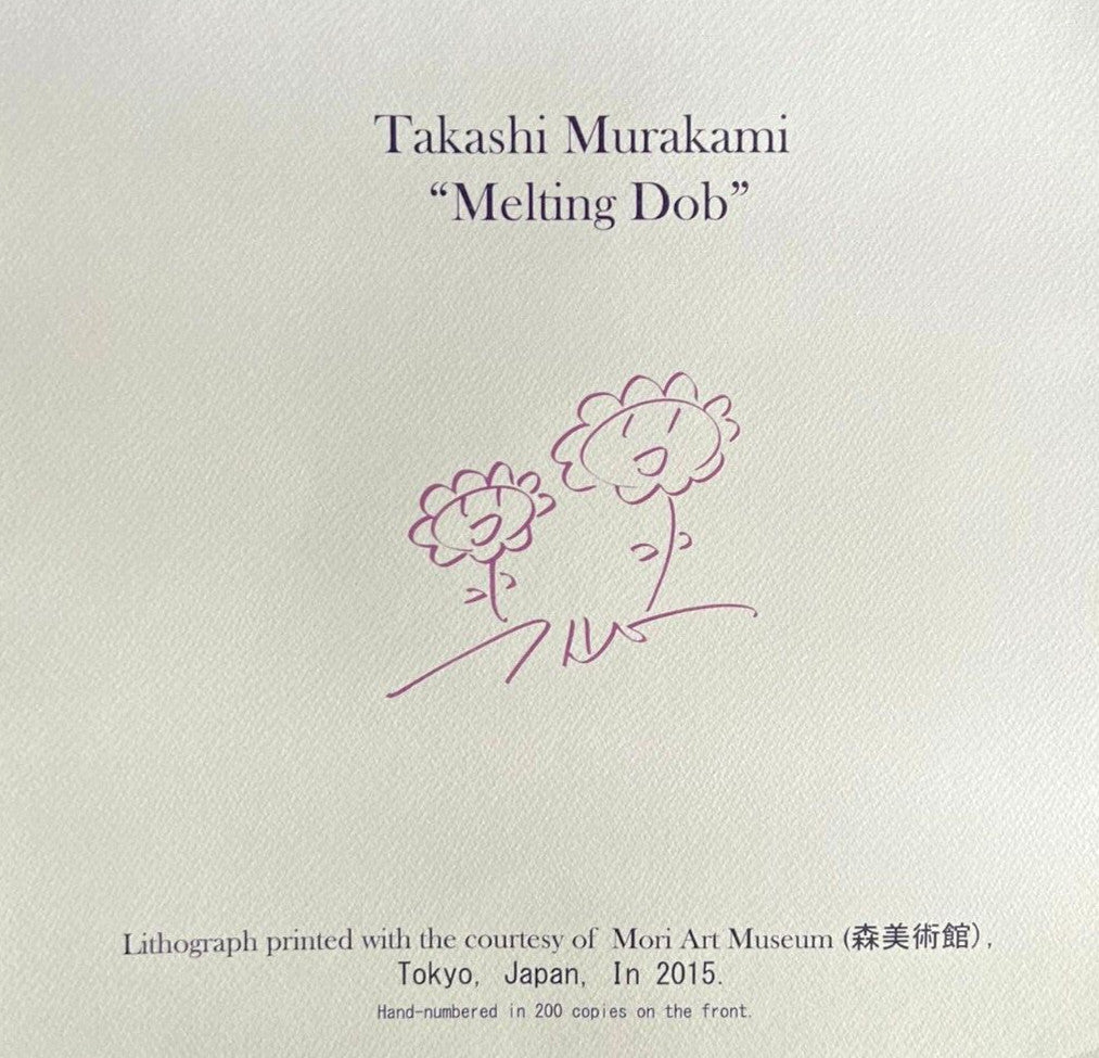 Takashi Murakami Lithograph Mori Art Museum COA Numbered Limited= Takashi Murakami "Melting Dob " The Lithograph was printed in 2015 by the Mori Art Museum in 200 numbered copies by hand. The work measures 33 x 33 cm Mori Art Museum, Tokyo, Japan. Takashi Murakami "Melting Dob" The Lithograph was printed in 2015 by the Mori Art Museum in 200 numbered copies by hand. The work measures 33 x 33 cm Mori Art Museum, Tokyo, Japan. Recommended products Provided by Takashi......