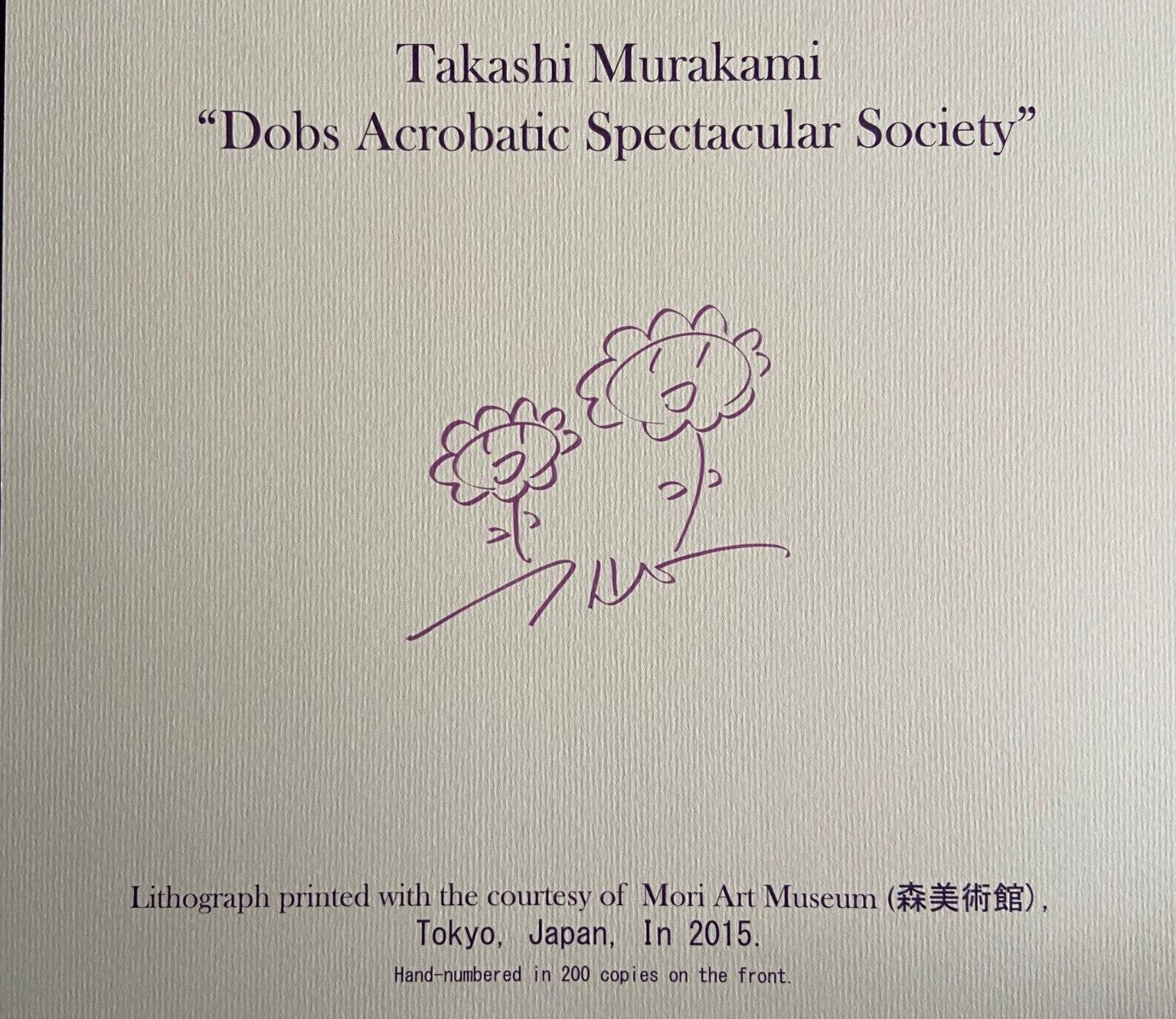 Takashi Murakami " Dobs Acrobatic Spectacular Company " The lithograph was printed in 2015 by the Mori Art Museum in 200 hand numbered copies. The work measures 30x30 cm Mori Art Museum, Tokyo, Japan. Takashi Murakami "Dobs Acrobatic Spectacular Company" The lithograph was printed in 2015 by the Mori Art Museum in 200 hand numbered copies. The work measures 30x30 cm Mori Art Museum, Tokyo, Japan. Takashi Murakami "Dobs Acrobatic Spectacular Company" The lithograph was printed in 2015 by the Mori Art Museum in 200 hand numbered copies. The work measures 30x30 cm Mori Art Museum, Tokyo, Japan.