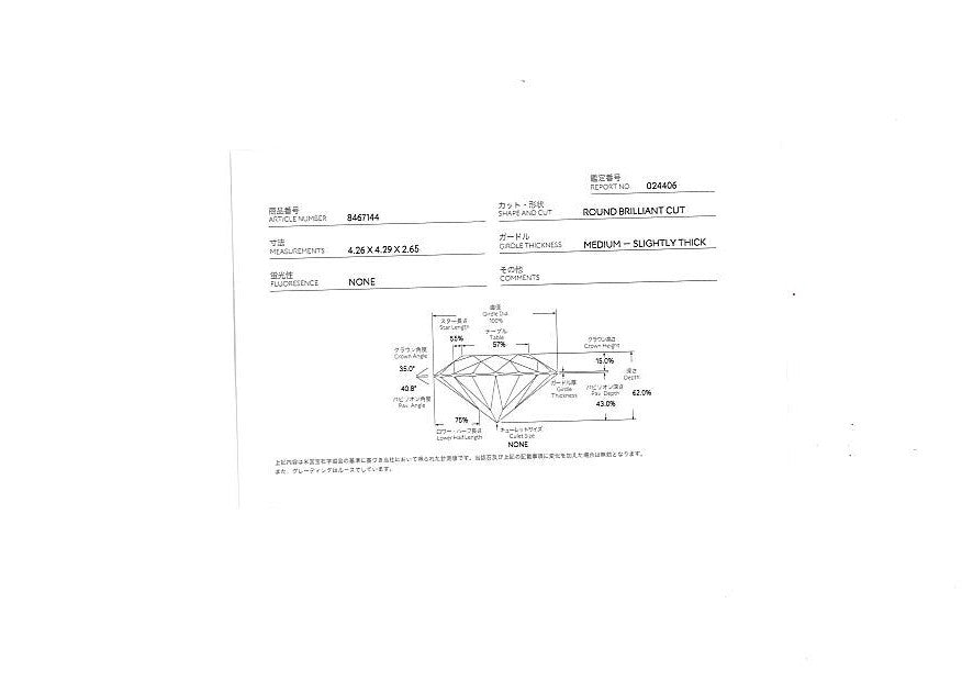 Tasaki Ring Diamond 0.30Ct H Vvs2 3Ex Us5.5-5.75