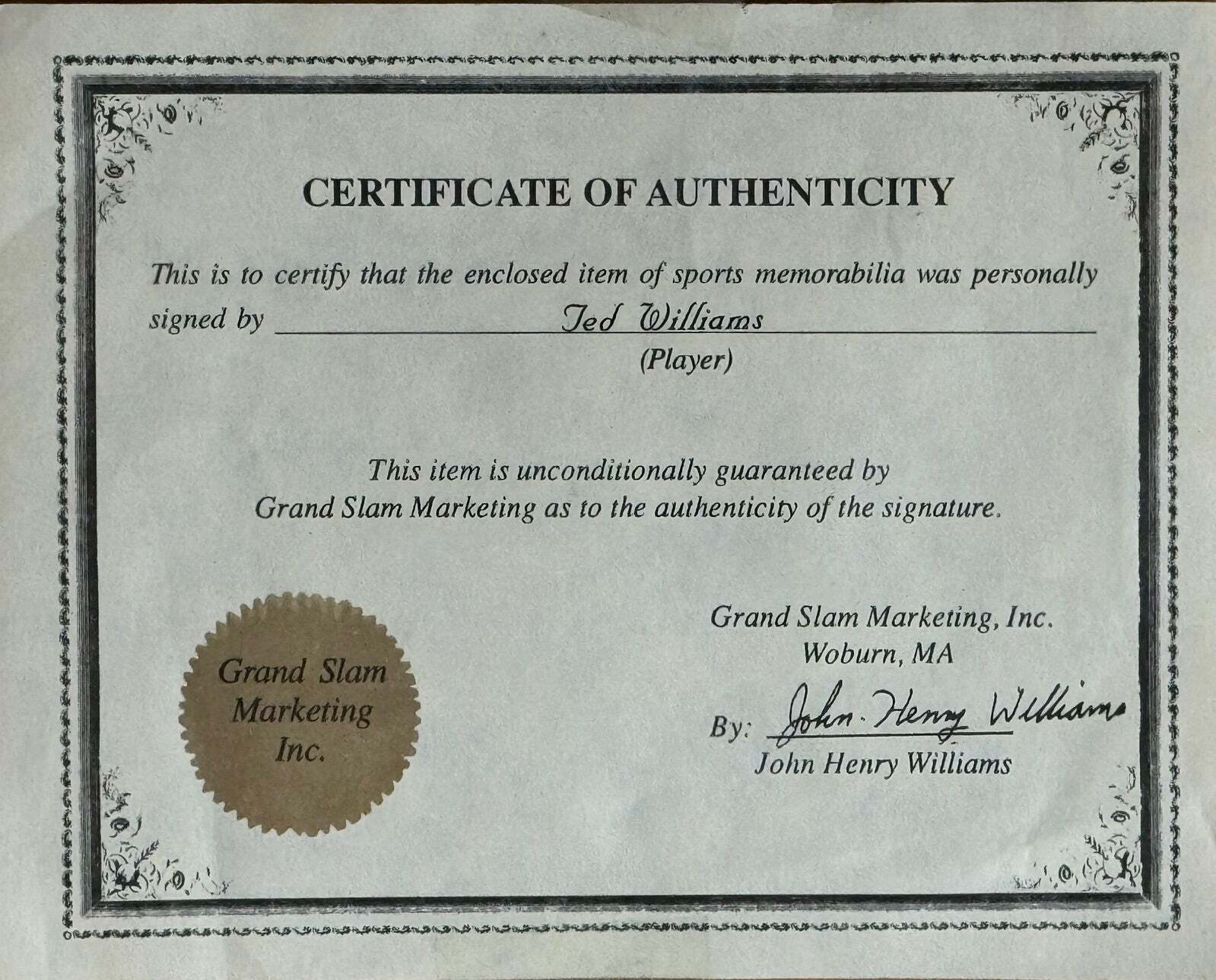 Ted Williams Autographed Framed 16X20 Photo (Grand Slam)