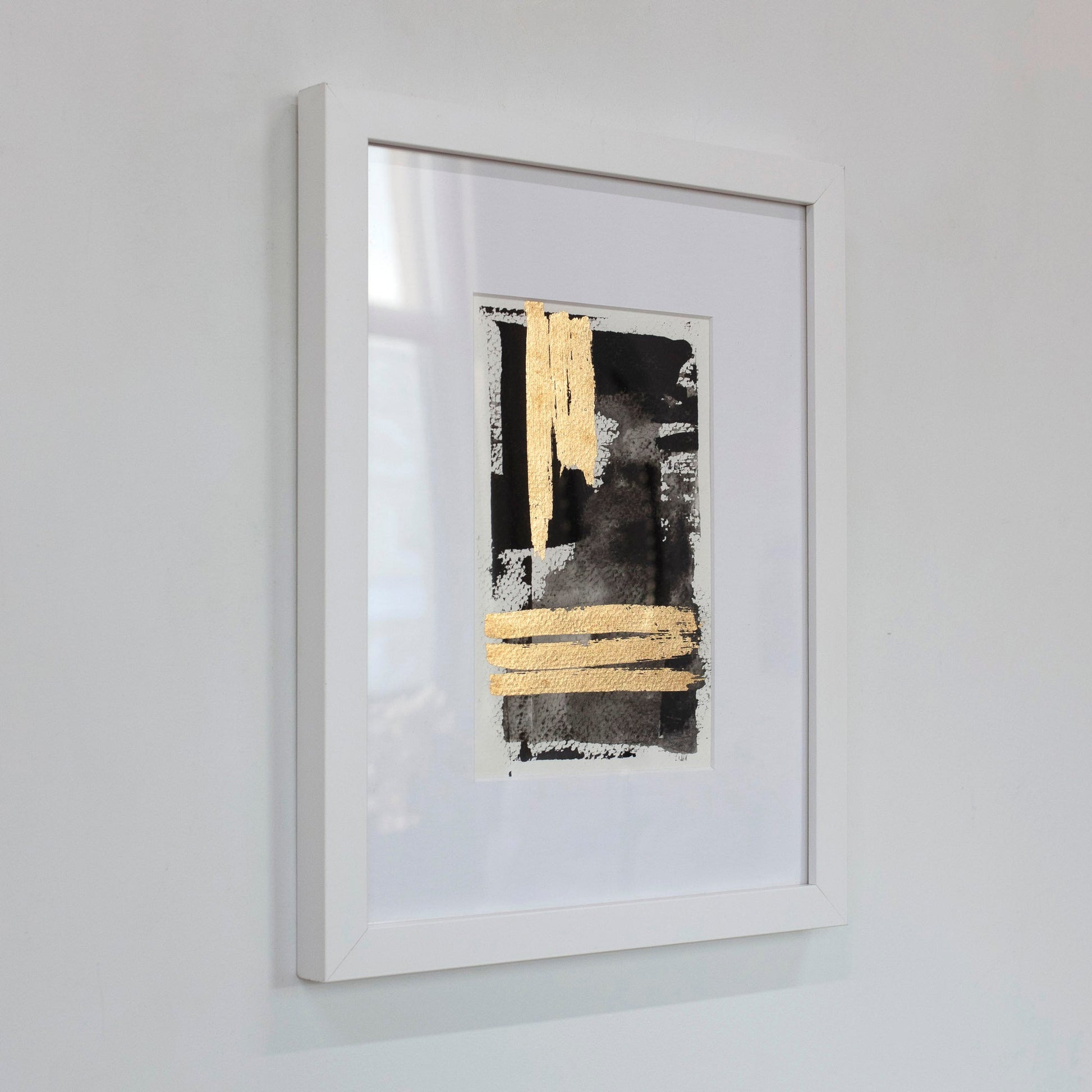 A striking black and gold abstract painting that exudes bold energy and refined elegance. The dynamic composition is created with acrylic and gold leaf, perfect for modern and sophisticated interiors. Let this piece inspire creativity and depth in your space. ???