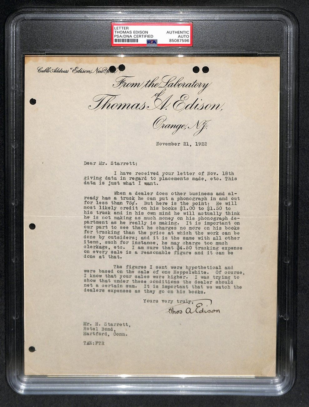 Thomas Edison Auto/Signed Vintage 1922 Tls Letter Psa/Dna 183803