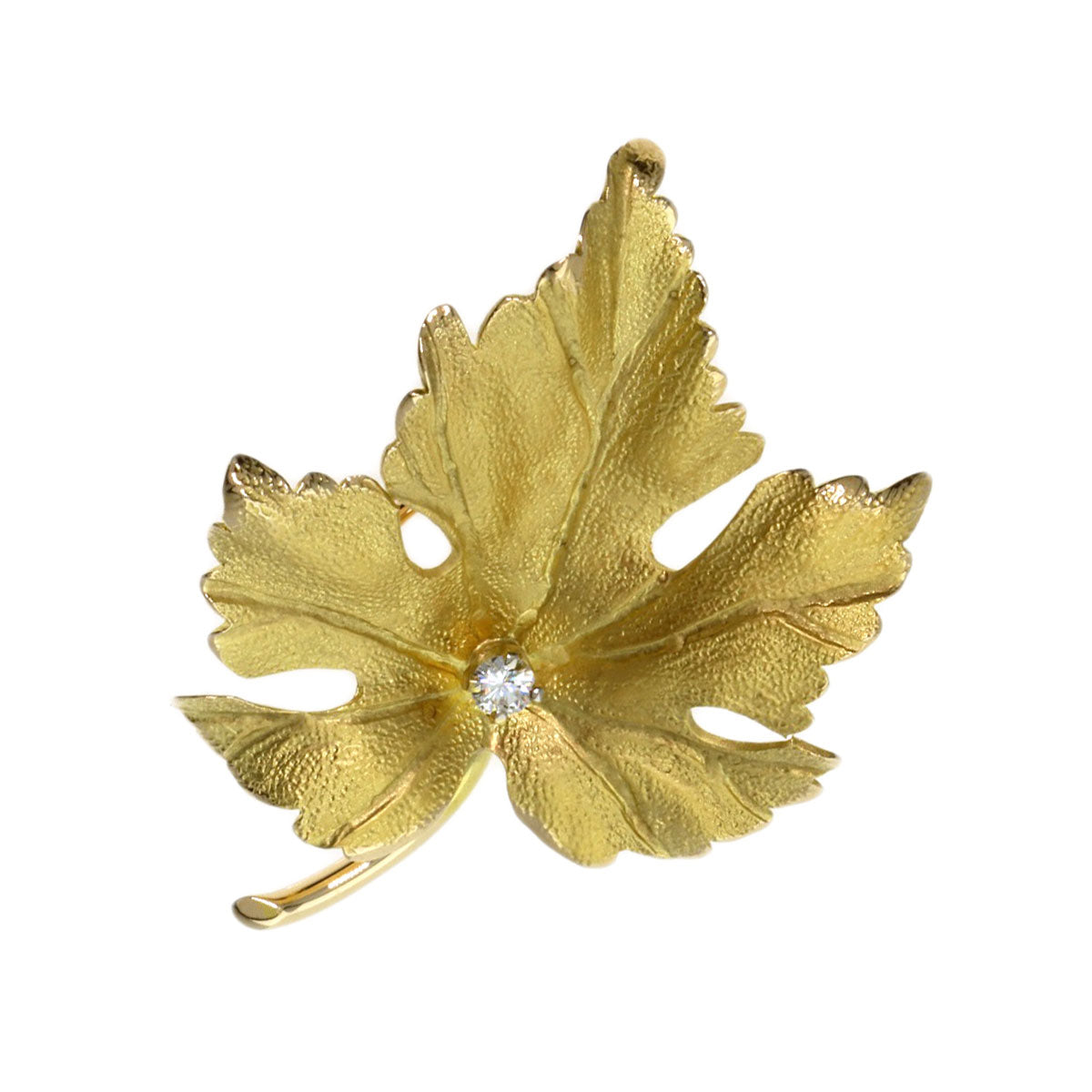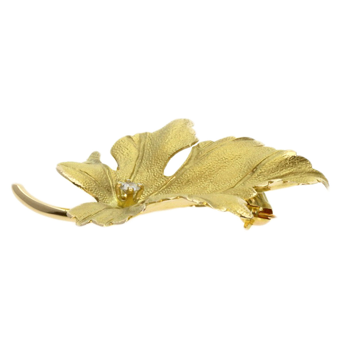 Tiffany&Co. Brooch K14Yg Gold Leaf Diamond Women